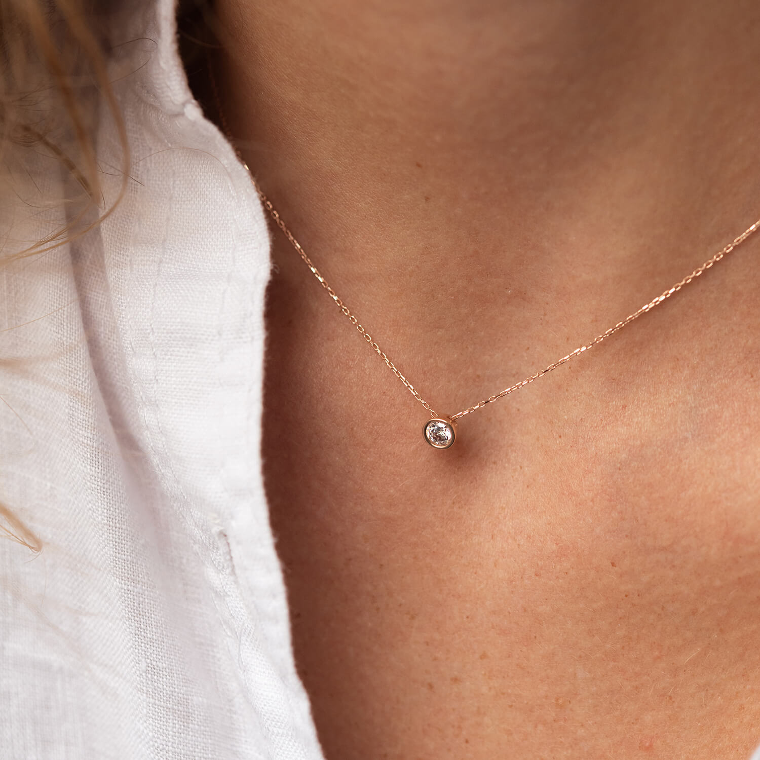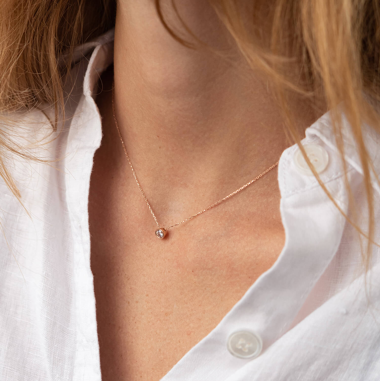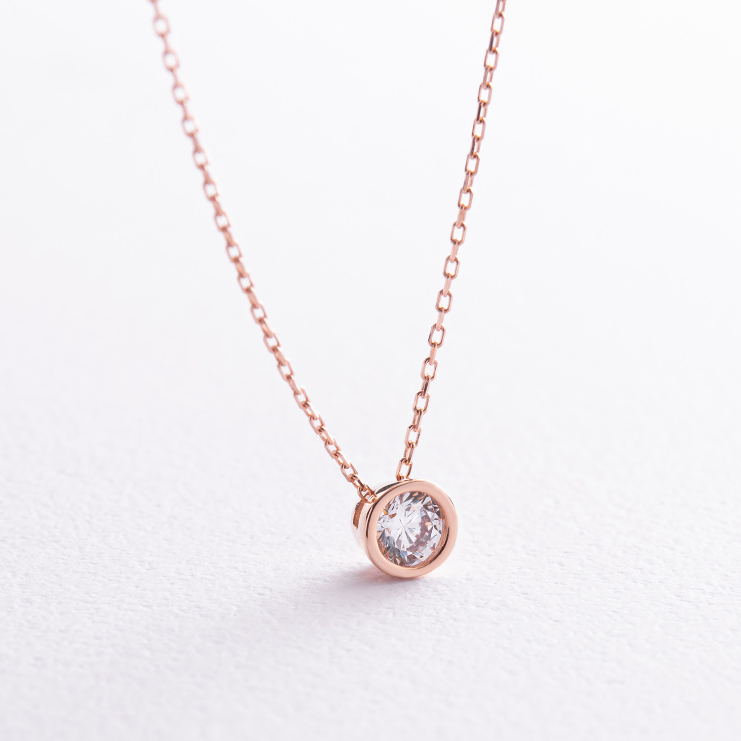Кольє з одним фіанітом (червоне золото) кол02276