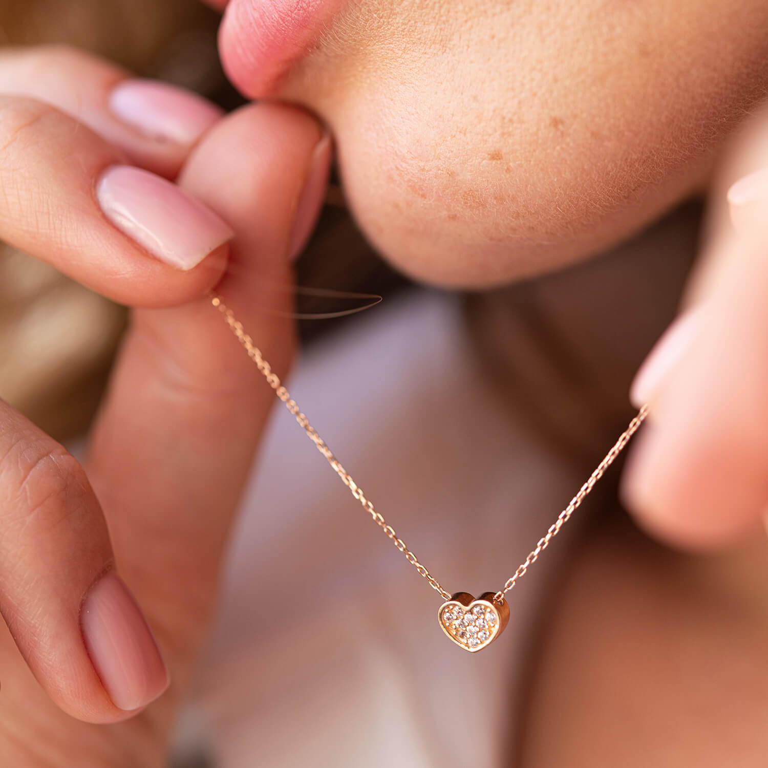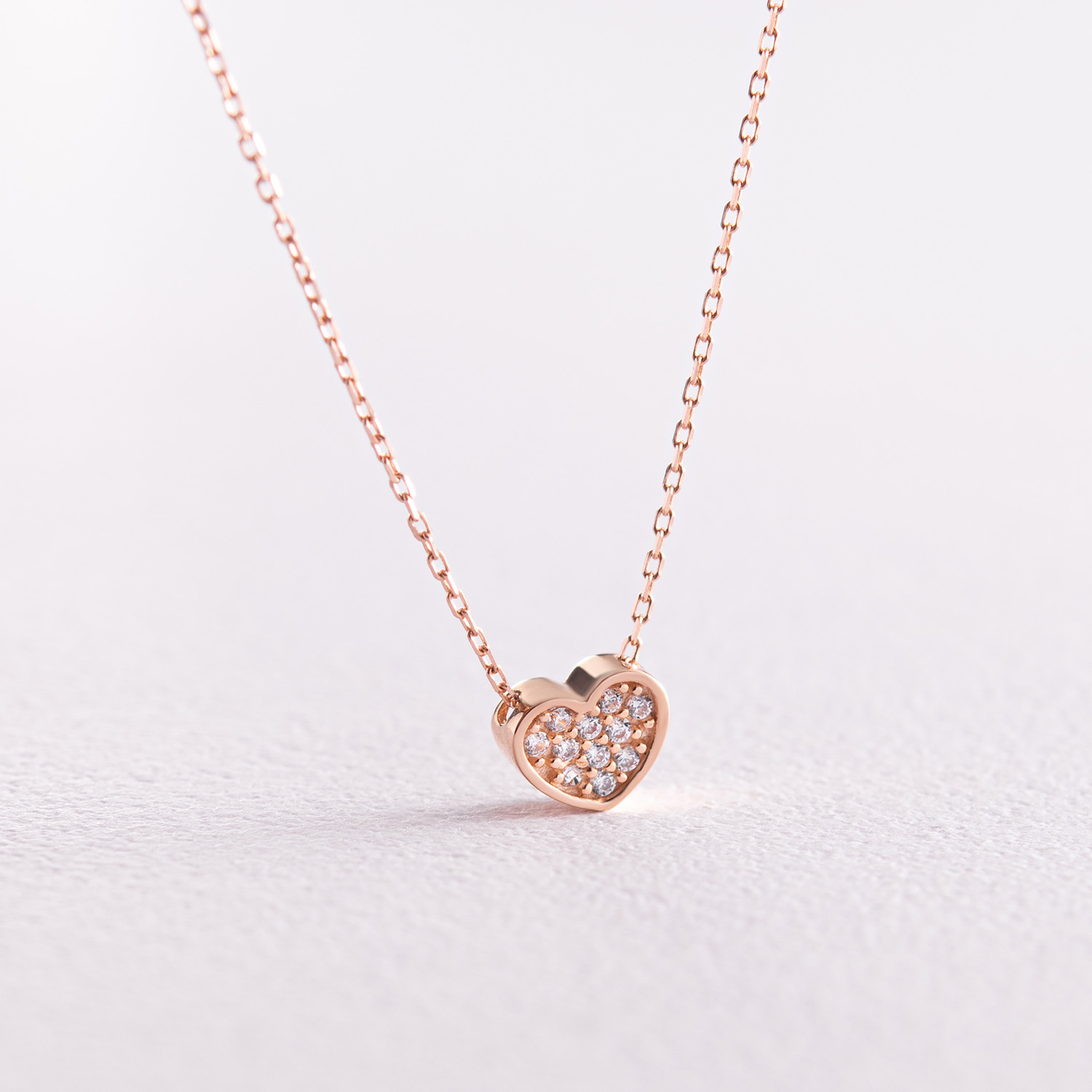 Кольє "Сердечко" з фіанітами (червоне золото) кол02295
