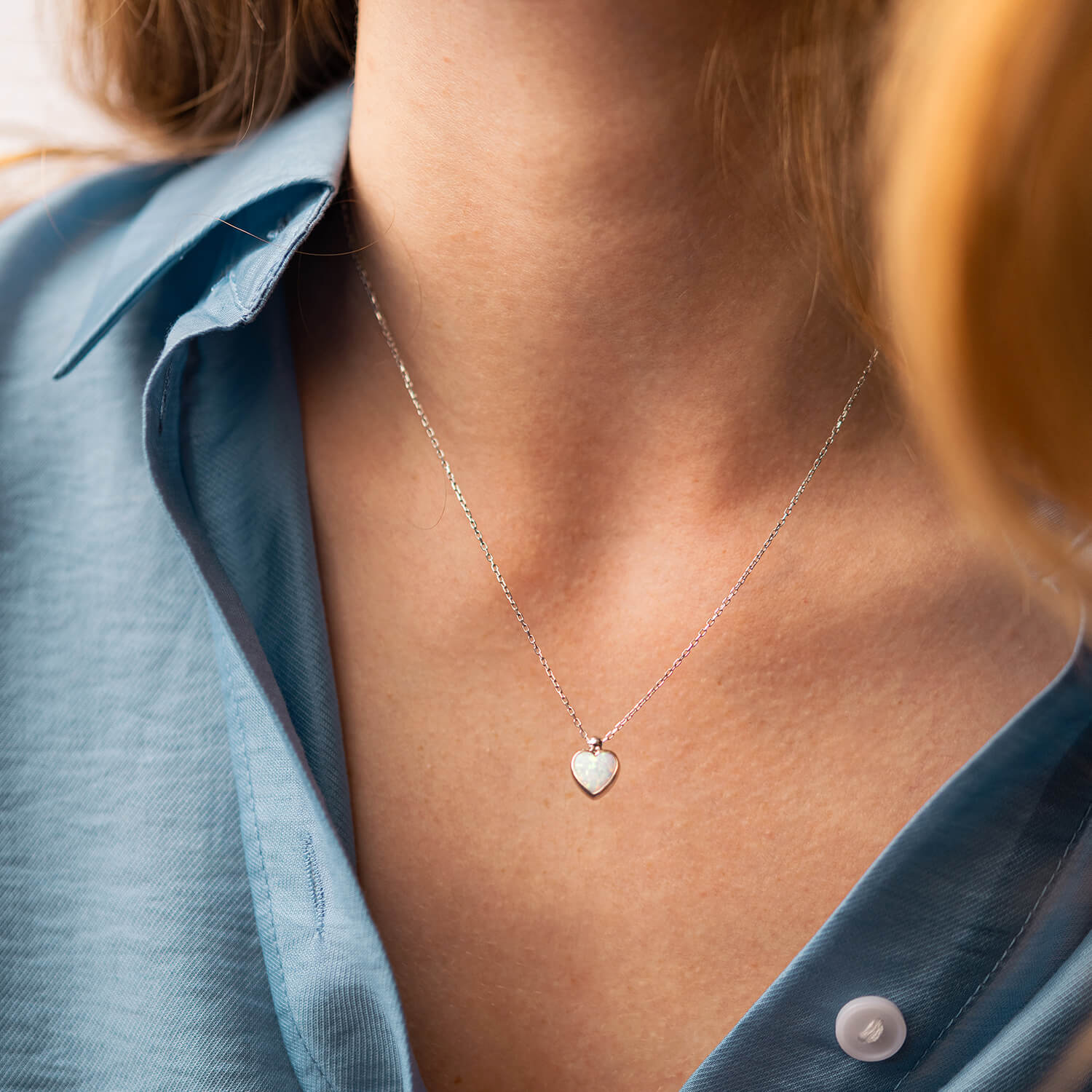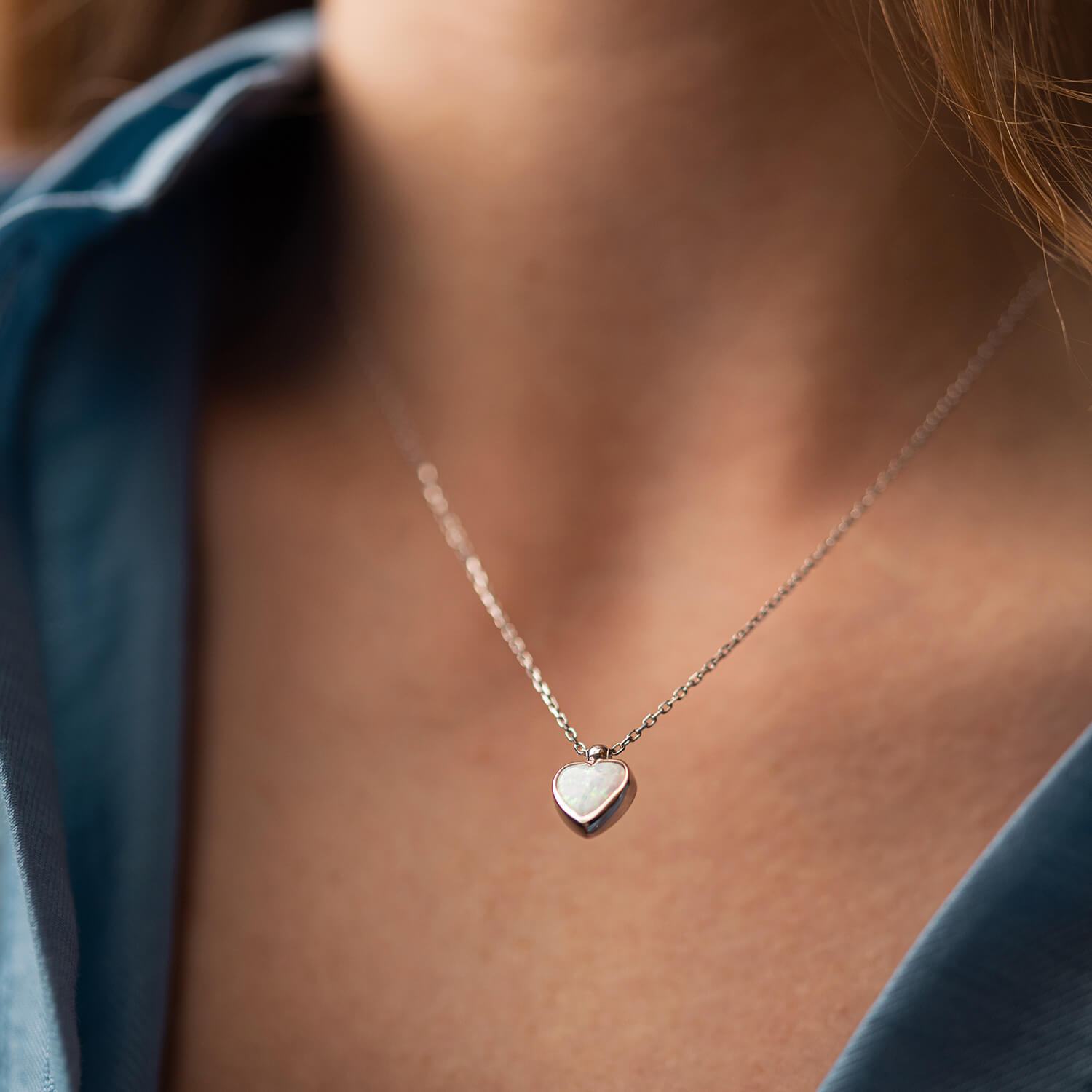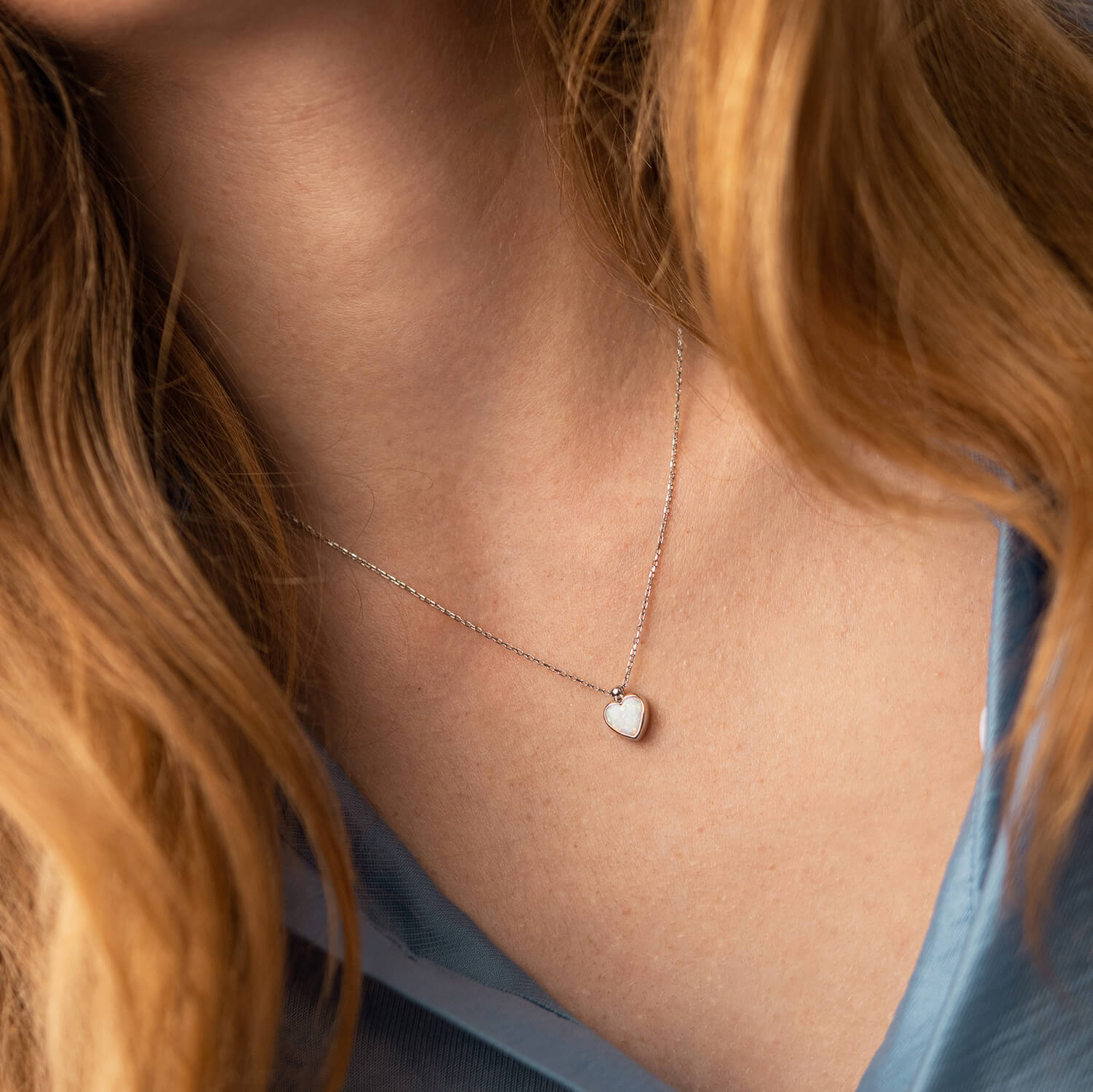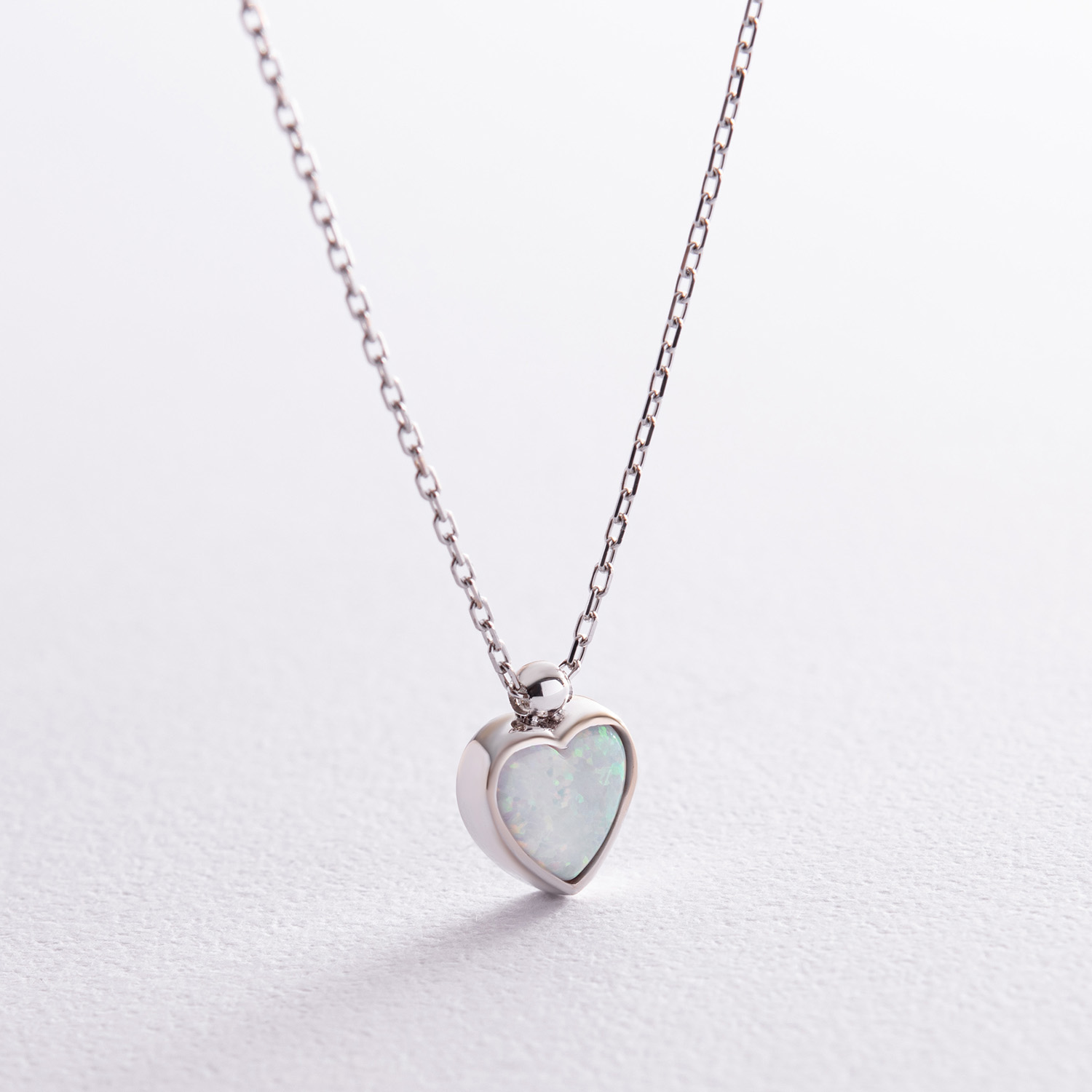 Кольє "Сердечко" з опалом (біле золото) кол02411