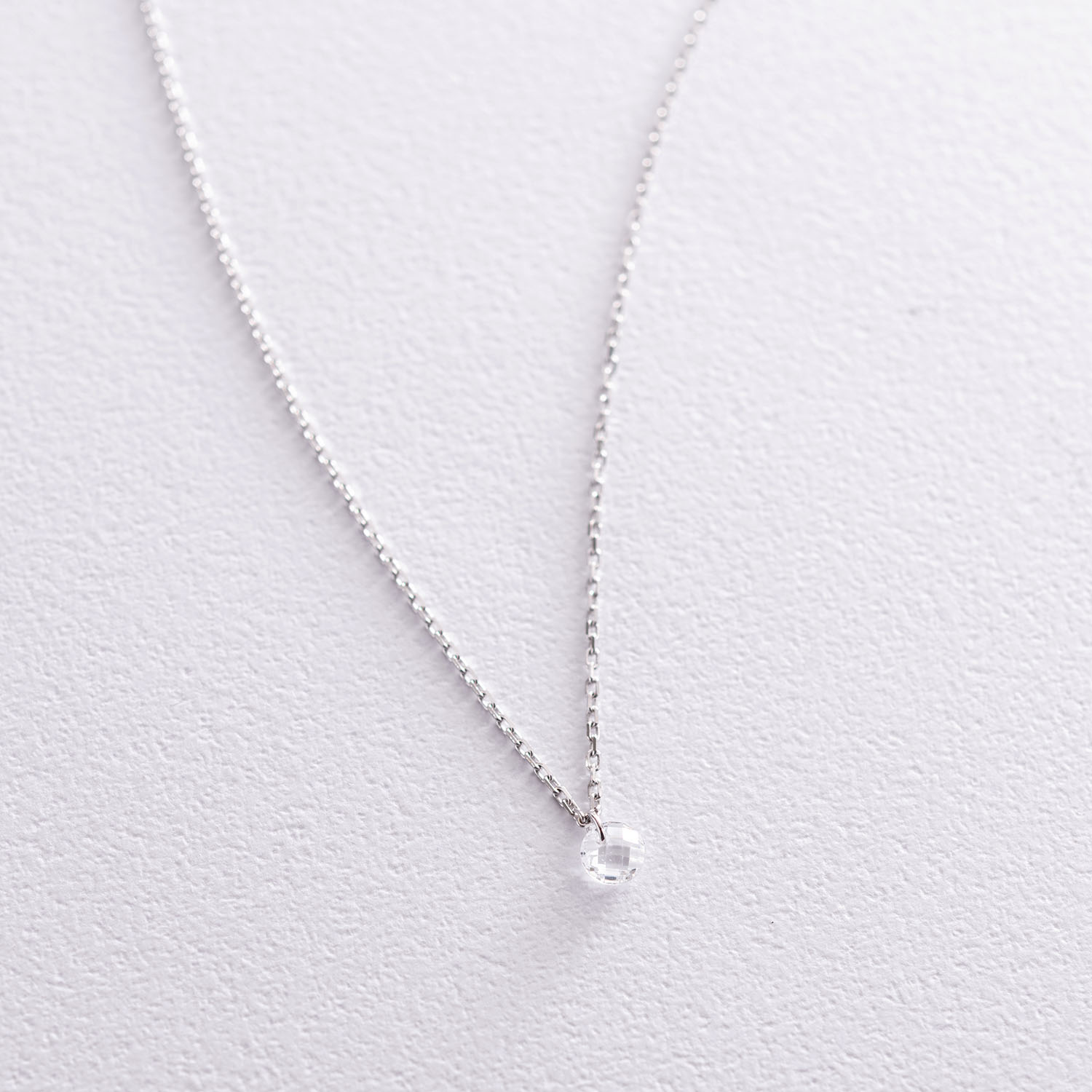 Кольє в білому золоті з одним фіанітом кол01814