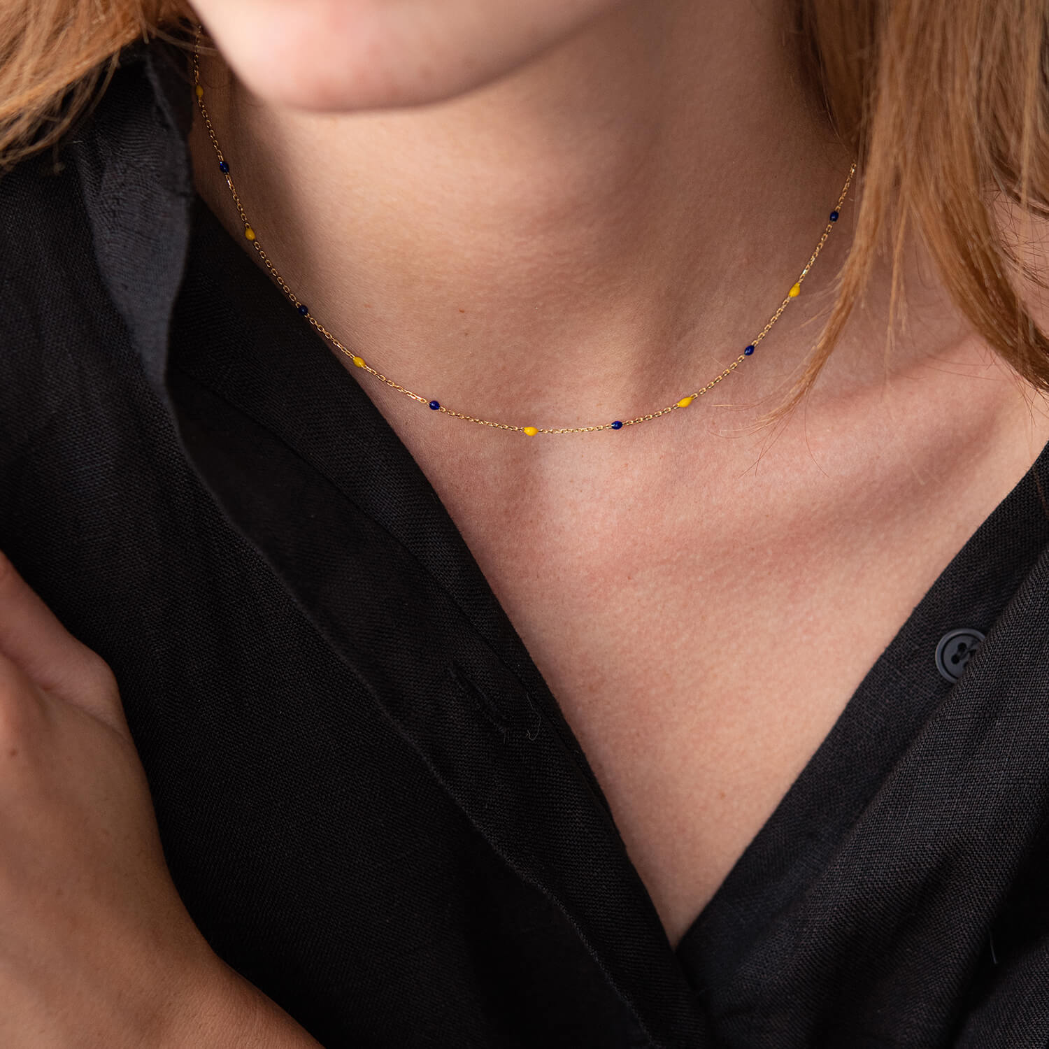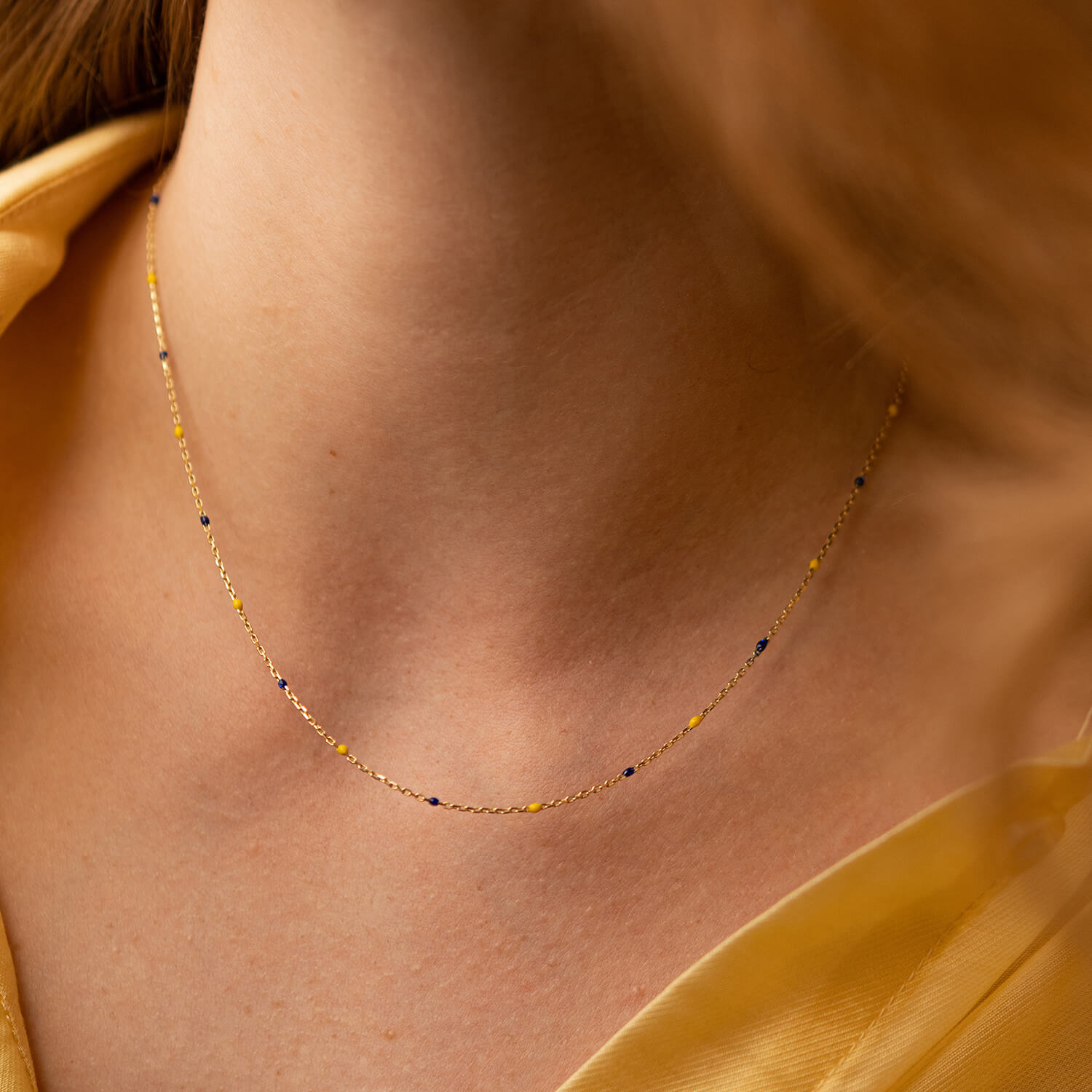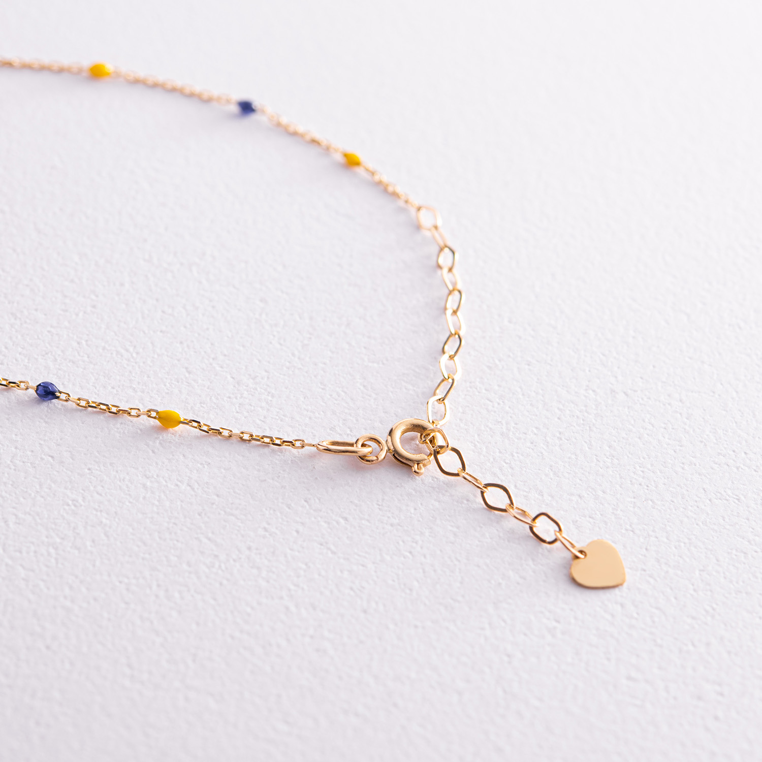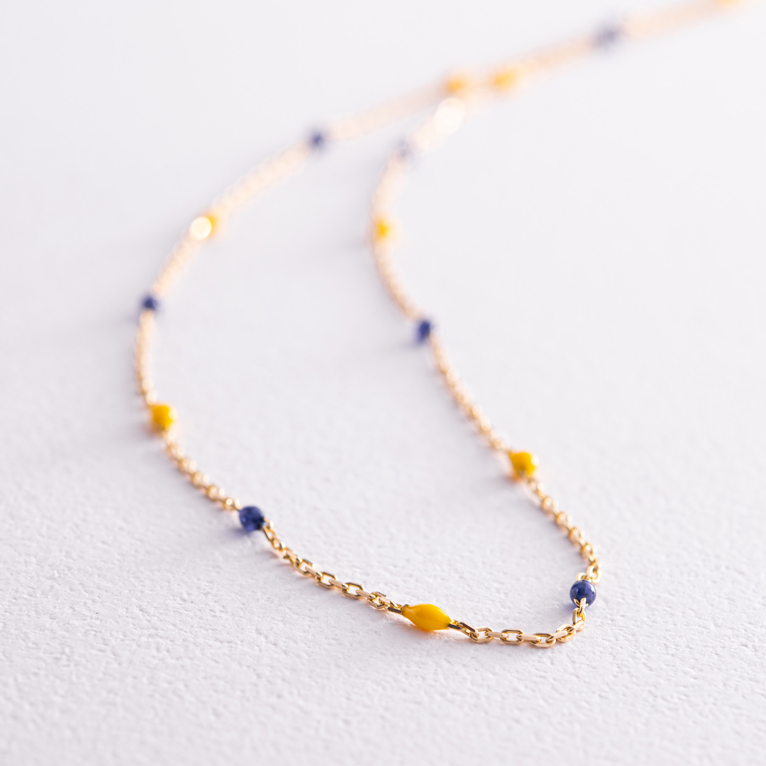 Кольє в жовтому золоті (синя та жовта емаль) кол02536