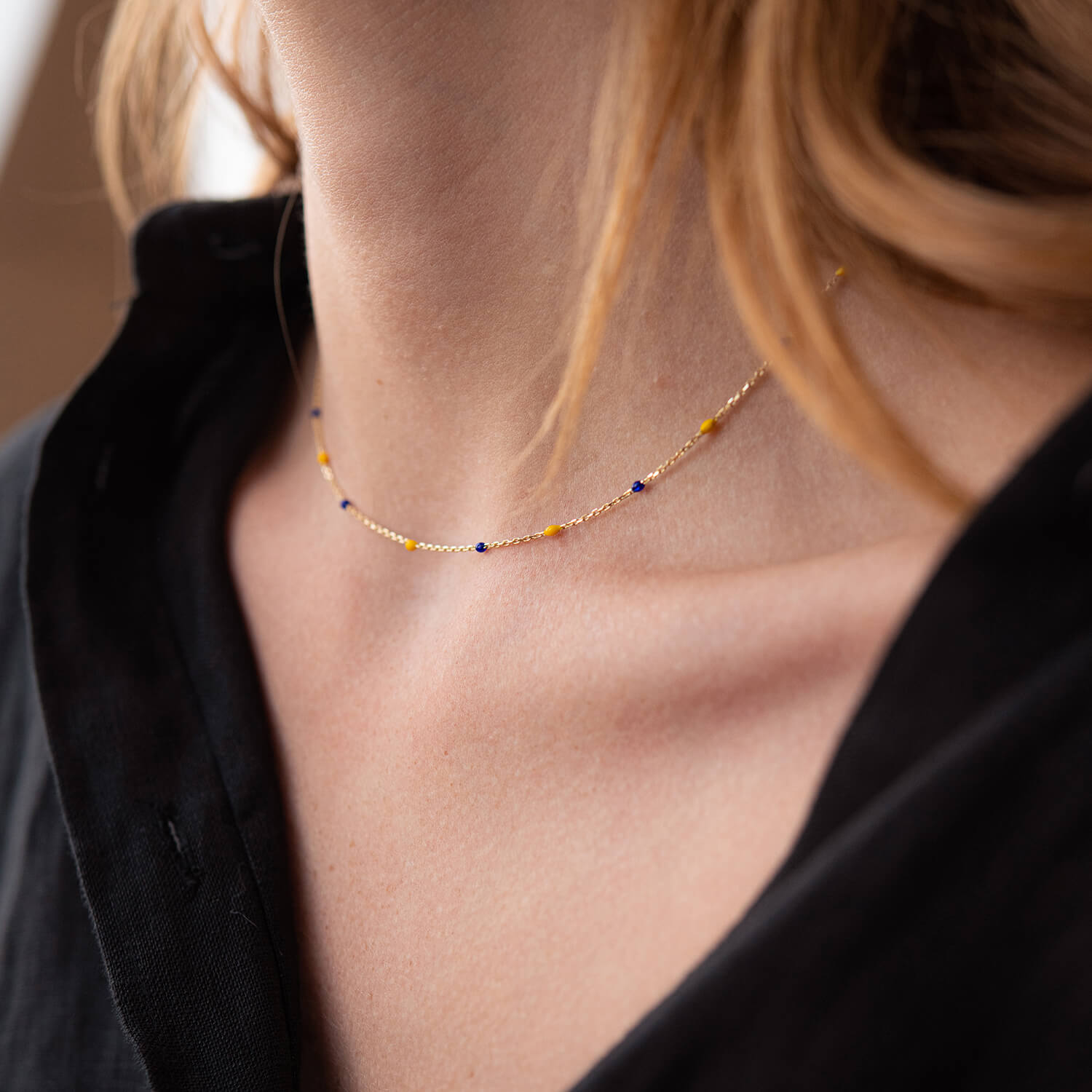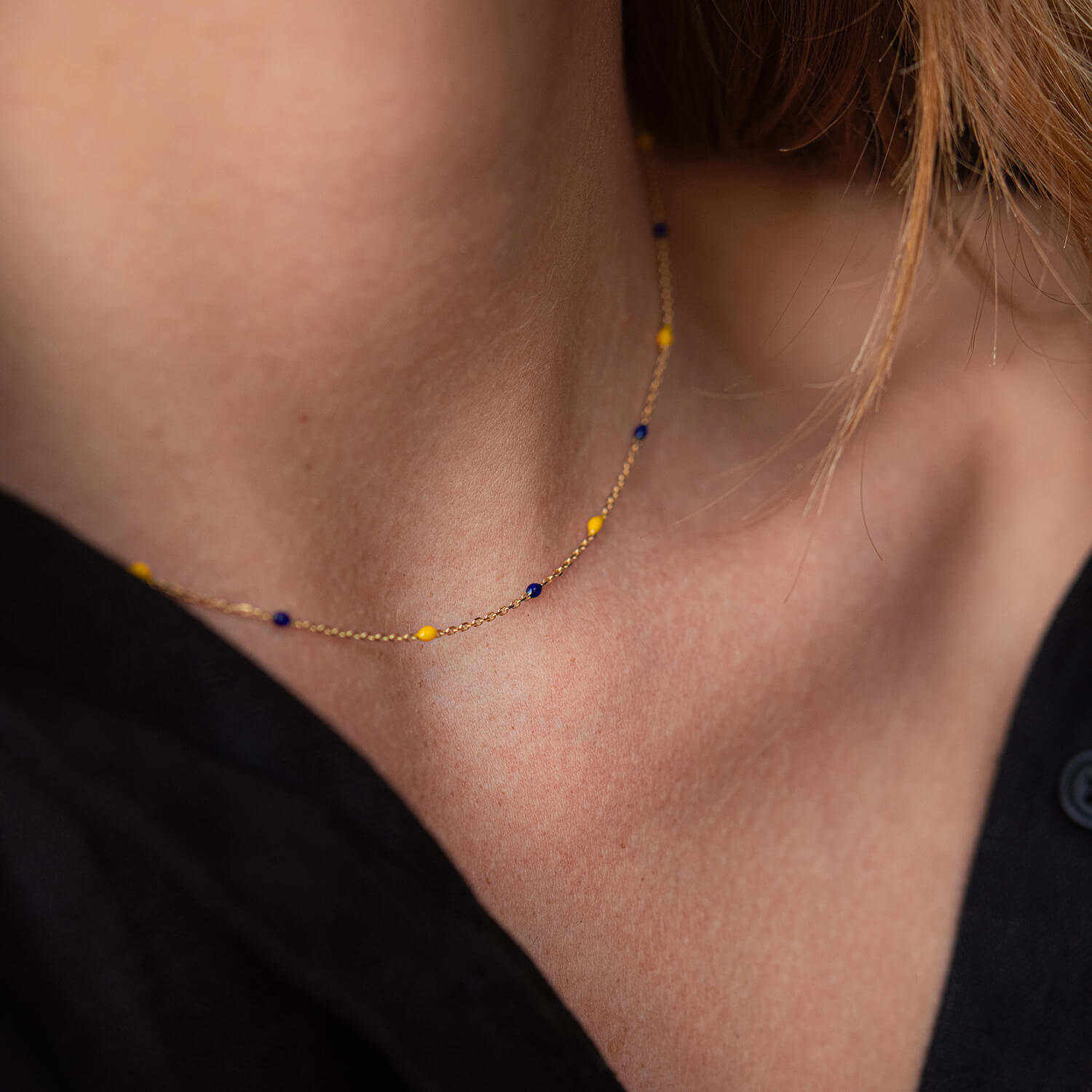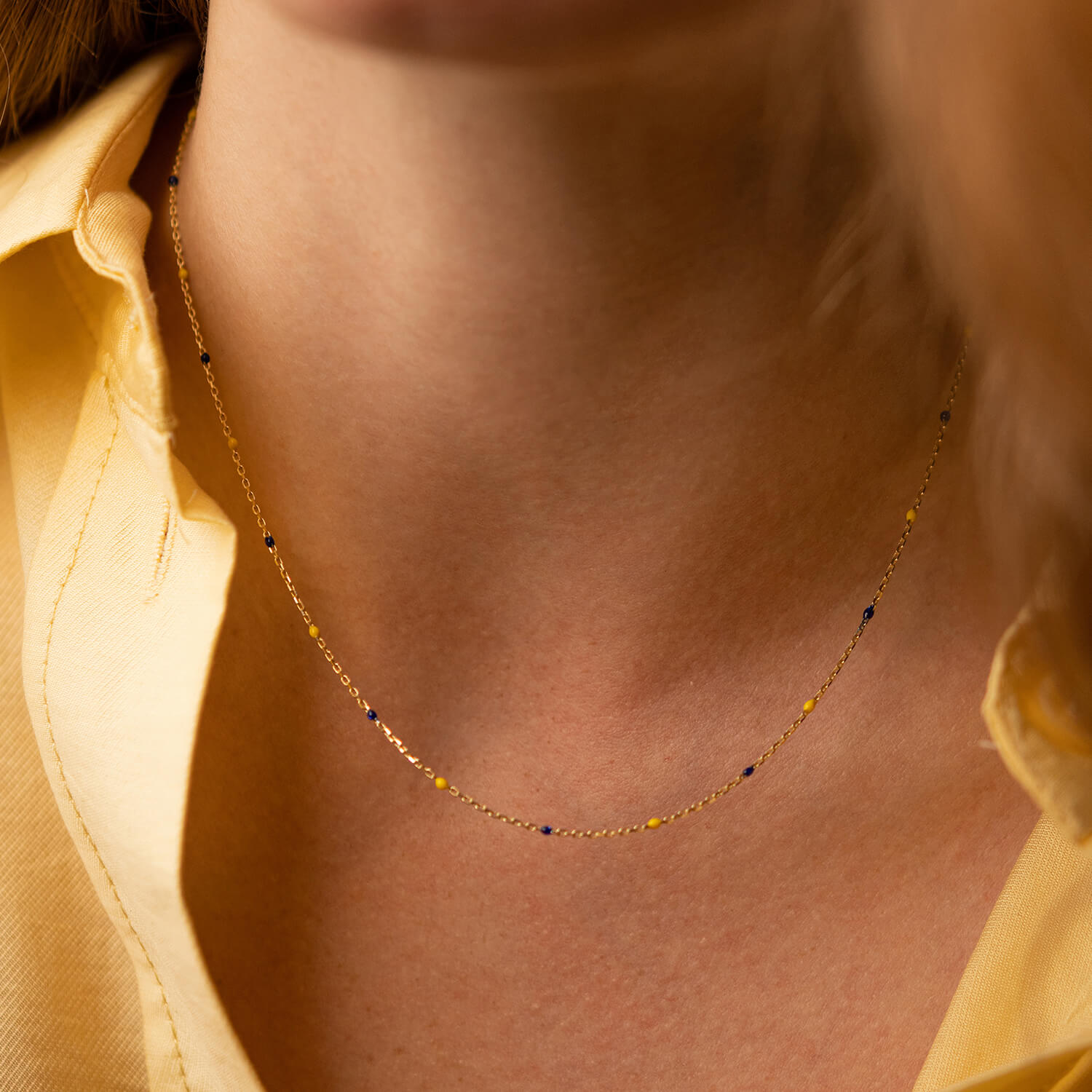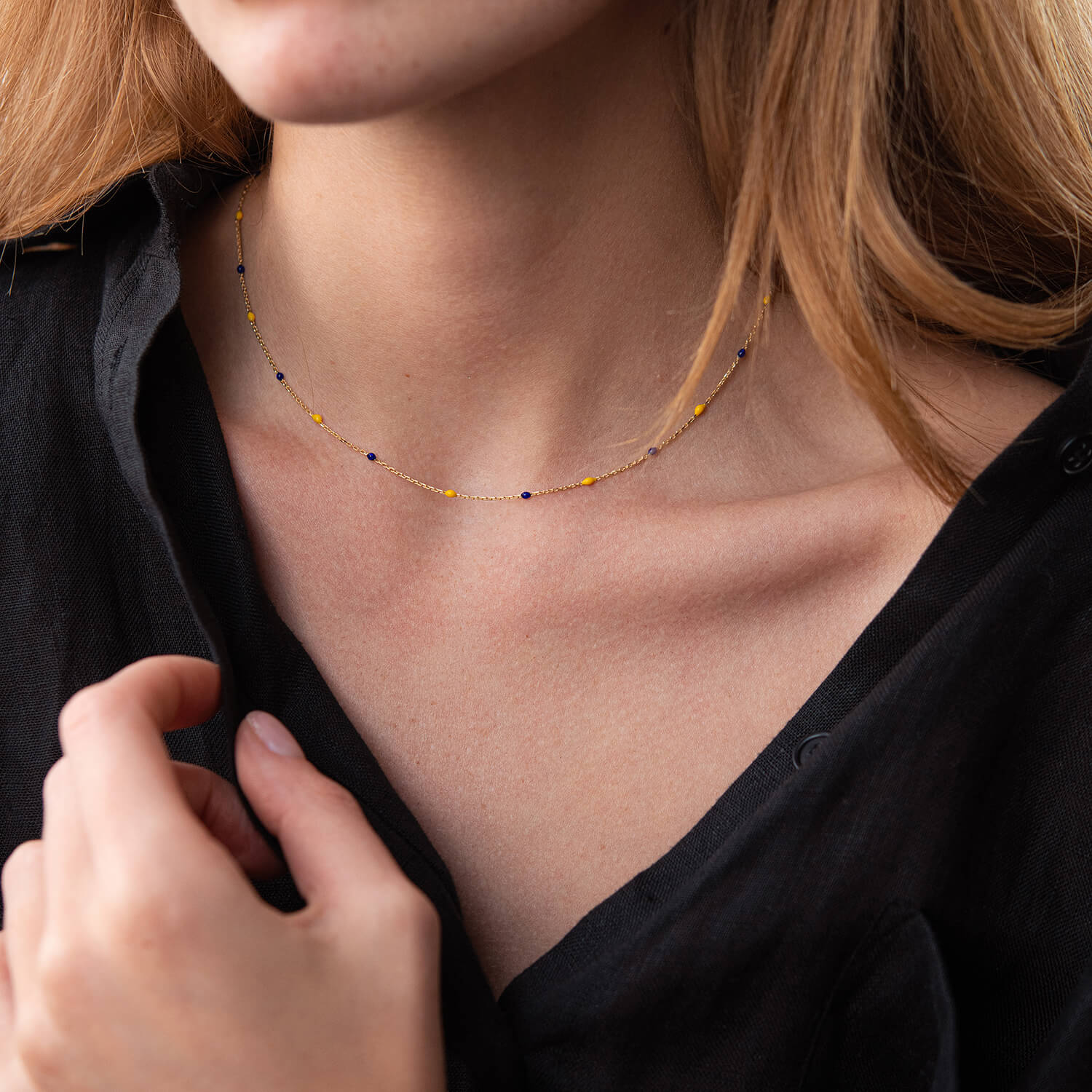 Кольє в жовтому золоті (синя та жовта емаль) кол02536