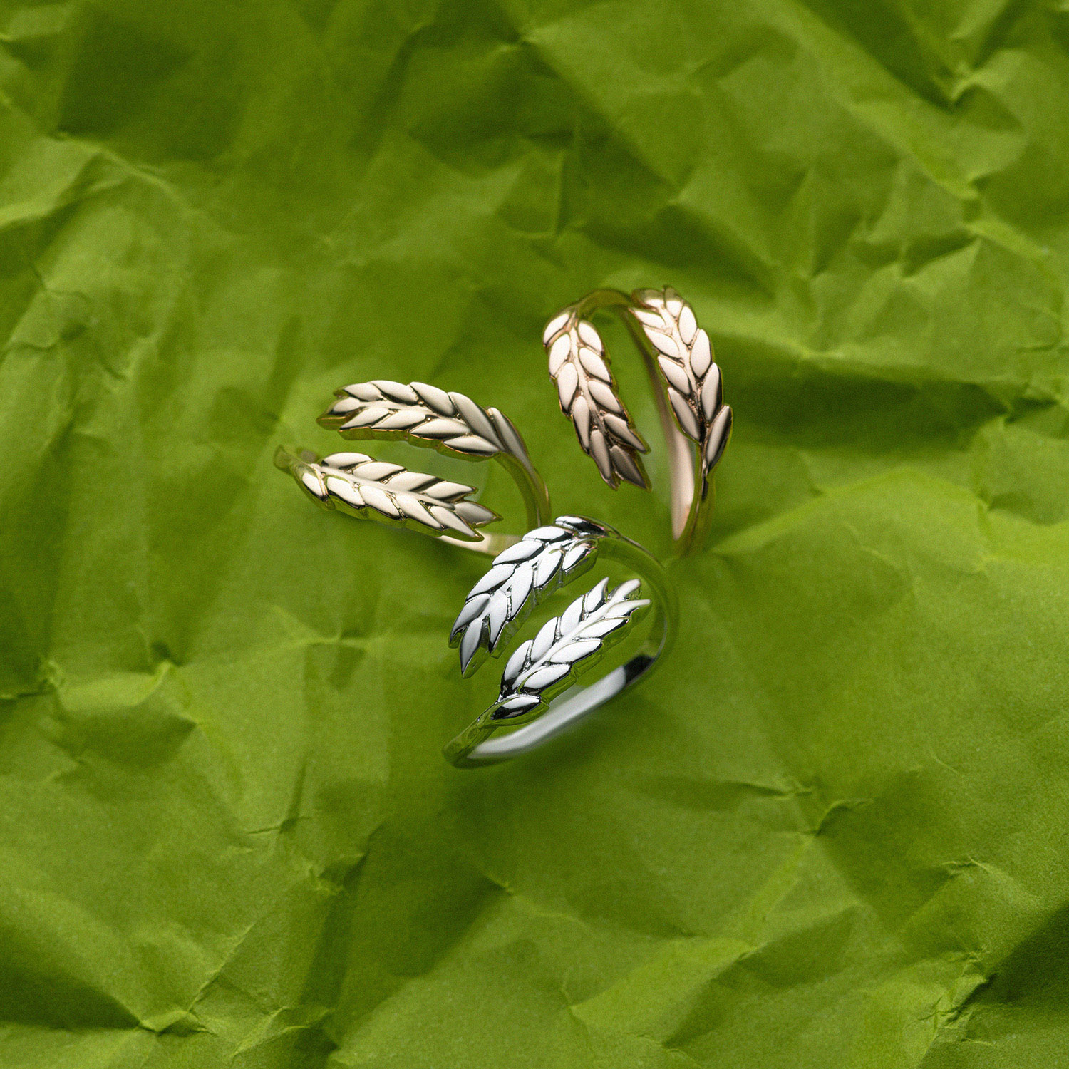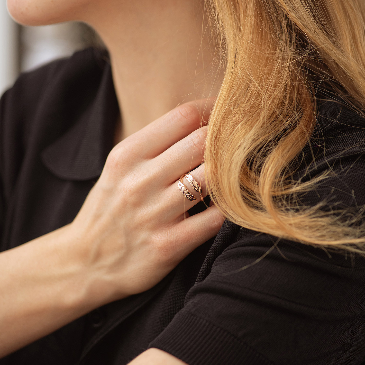 Каблучка "Колоски пшениці" у червоному золоті к08047
