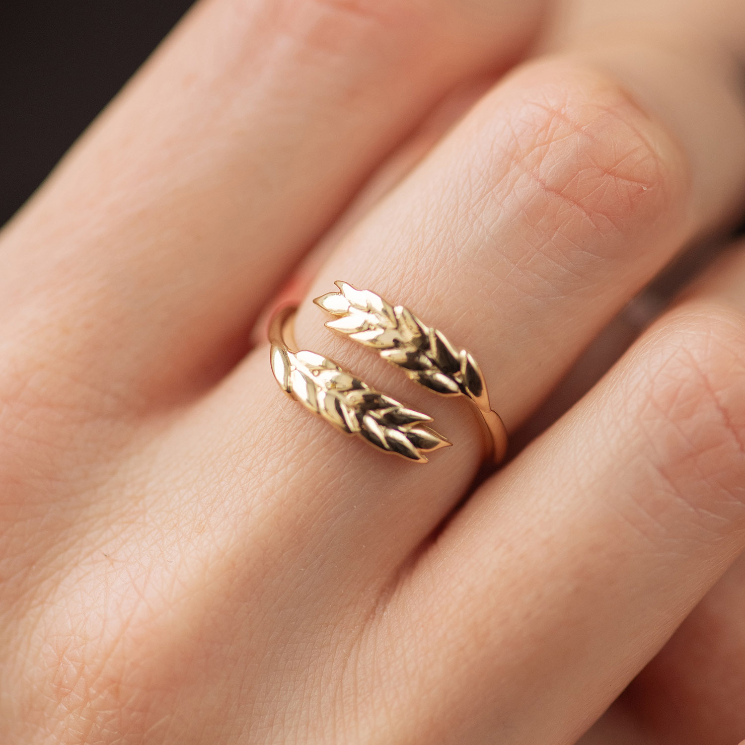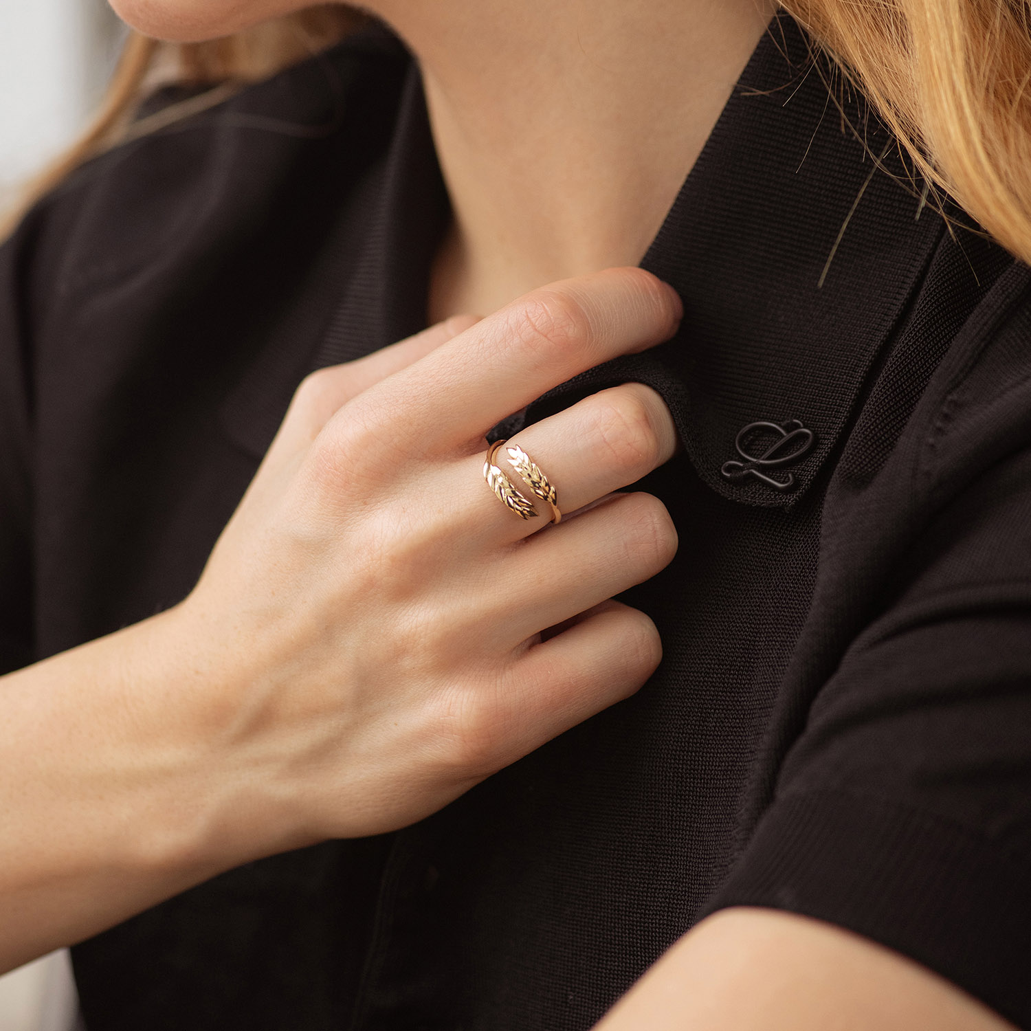 Каблучка "Колоски пшениці" у жовтому золоті к08048
