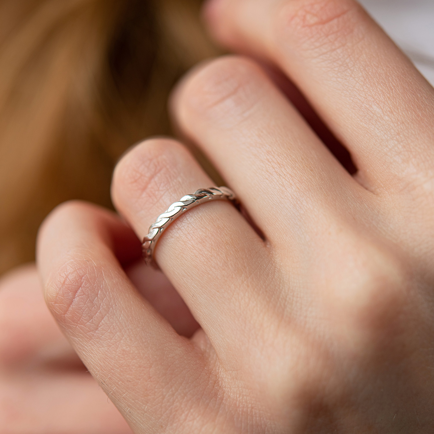 Каблучка "Косичка" в білому золоті к07417