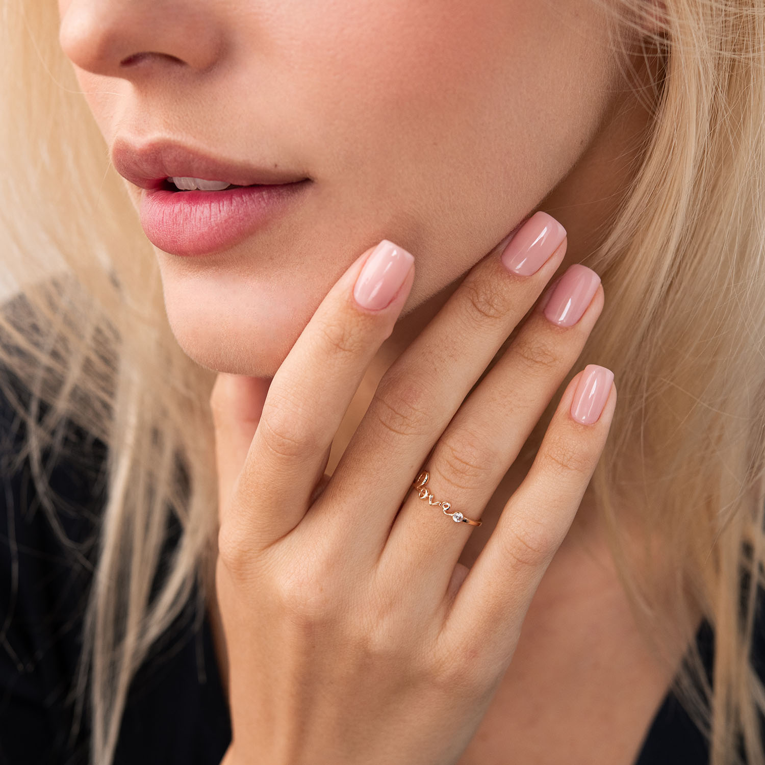 Каблучка "Love" в червоному золоті з фіанітом к06797