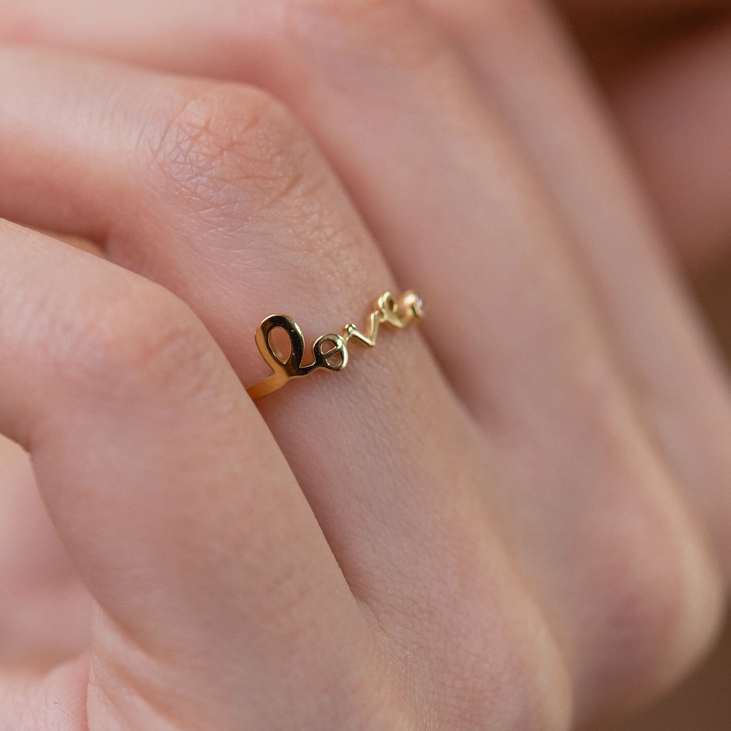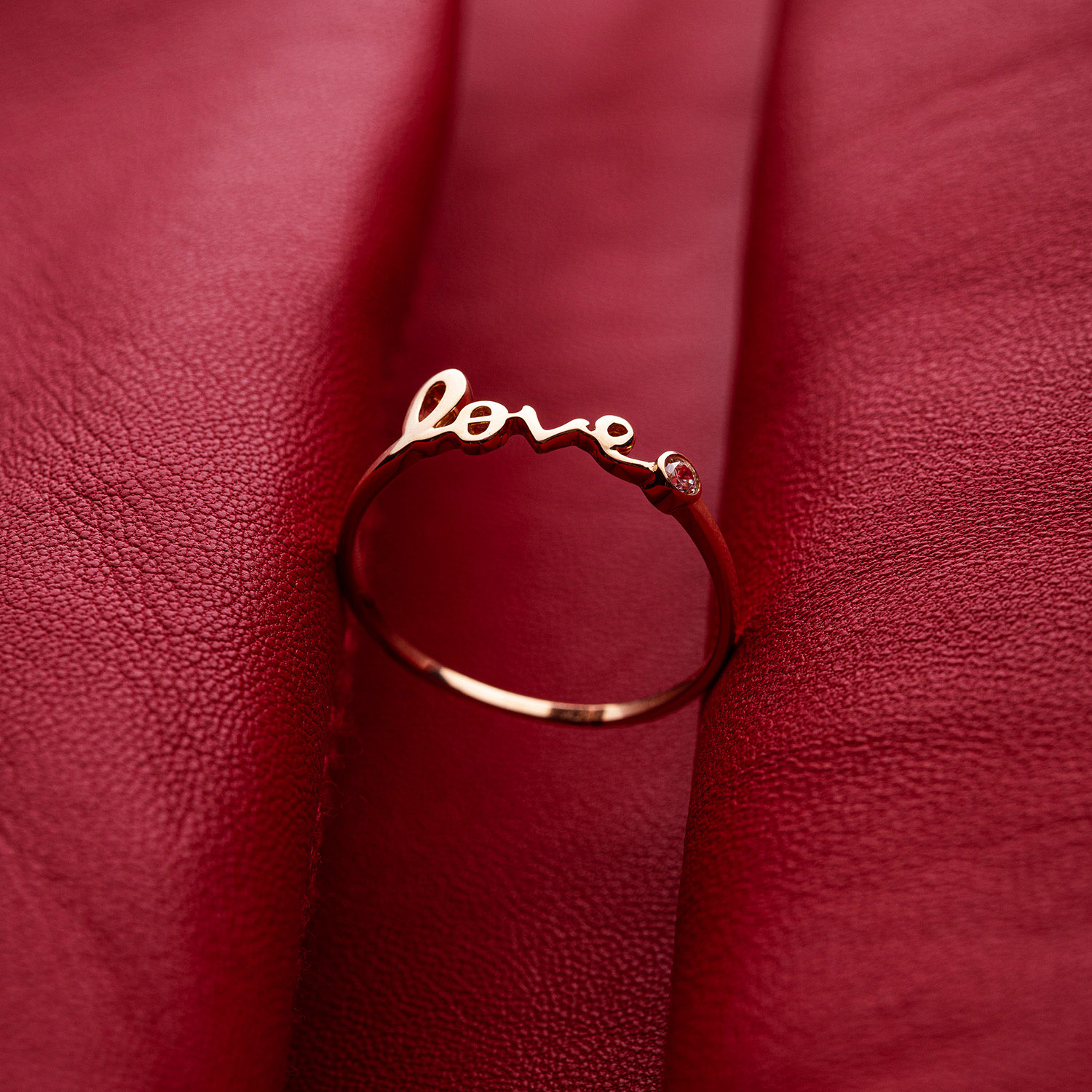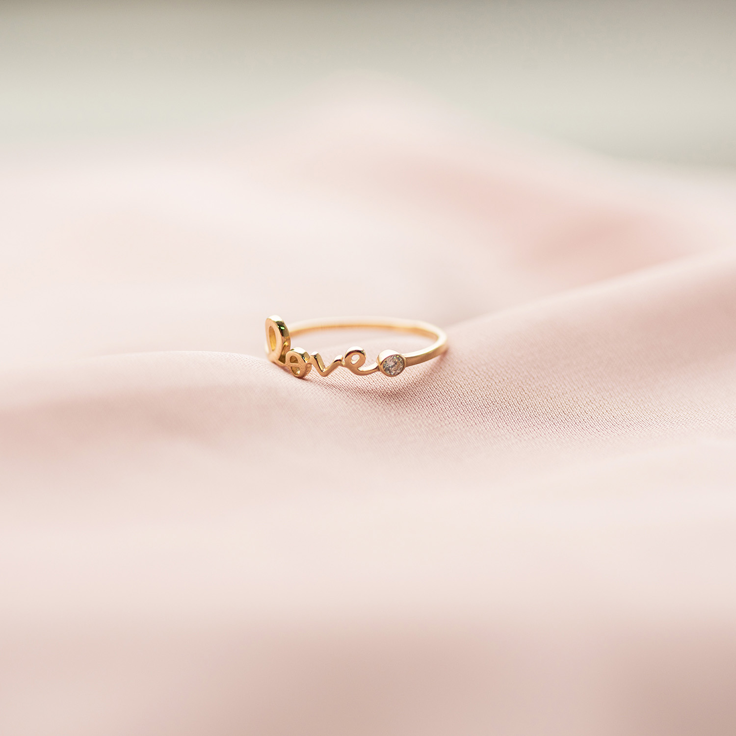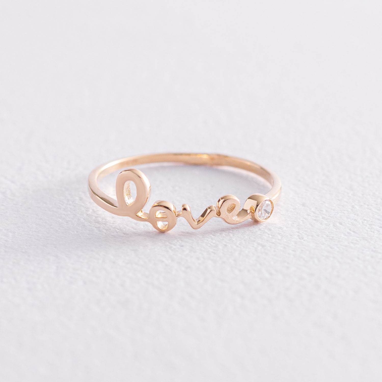 Каблучка "Love" в жовтому золоті з фіанітом к06762