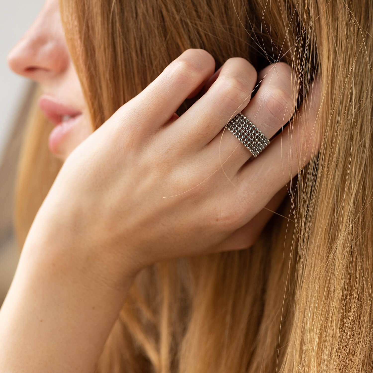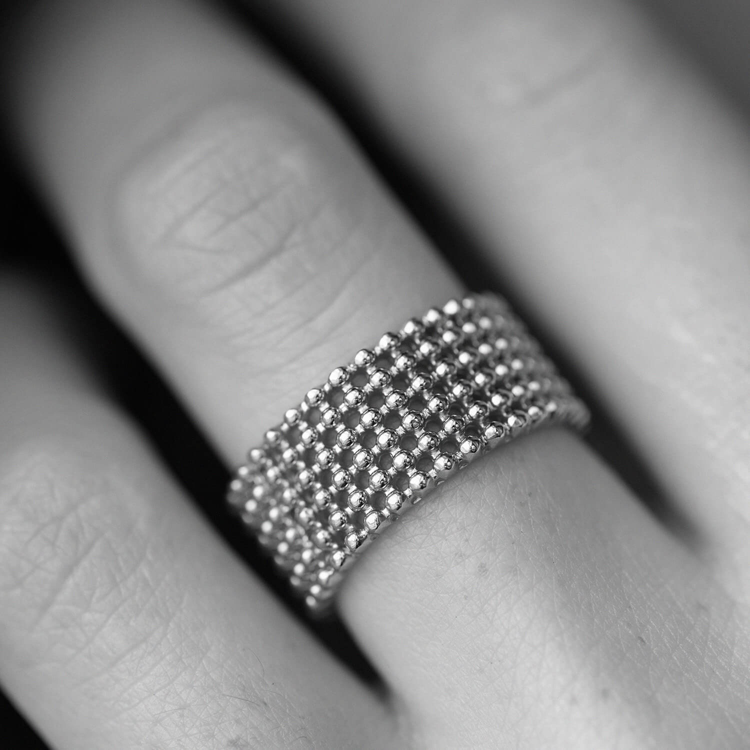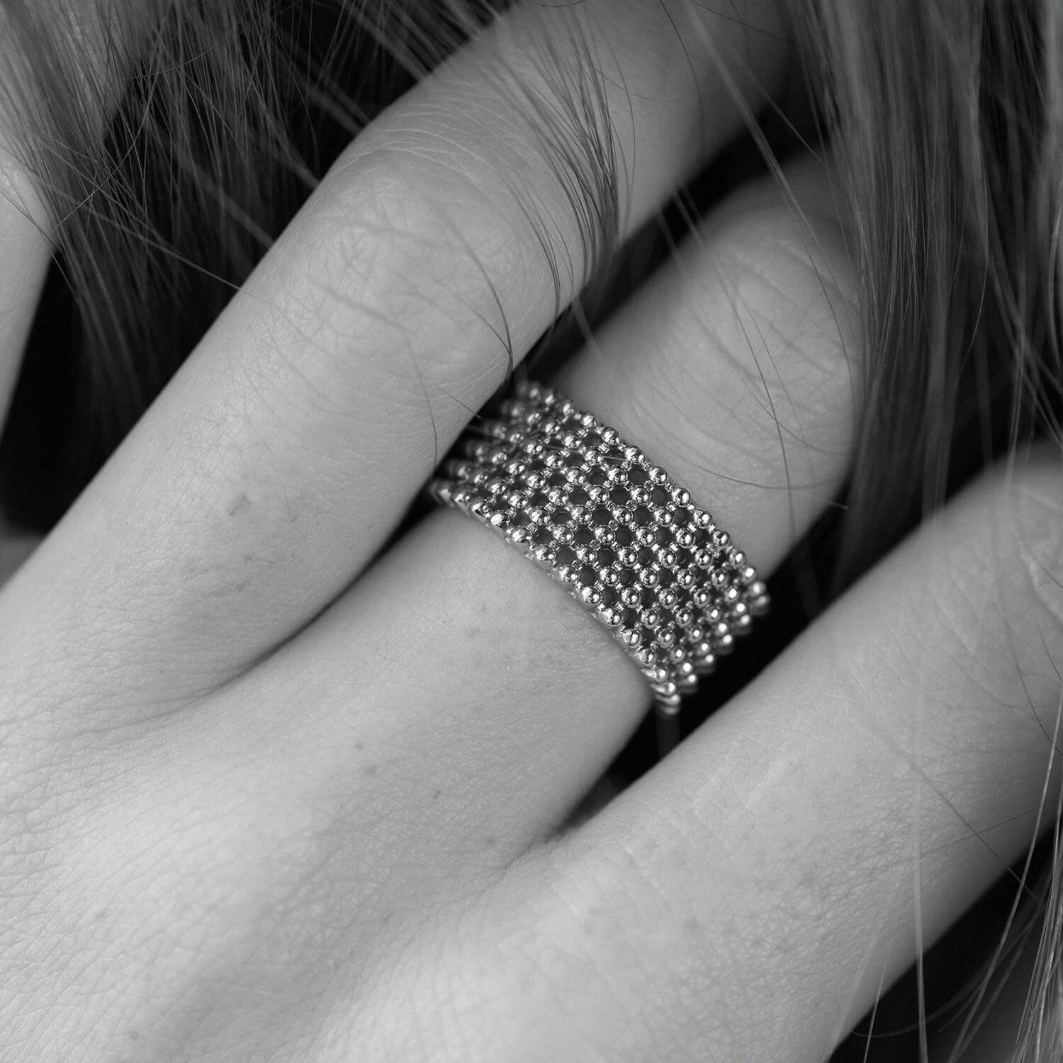 Каблучка "Рейчел" з кульками (біле золото) к07356