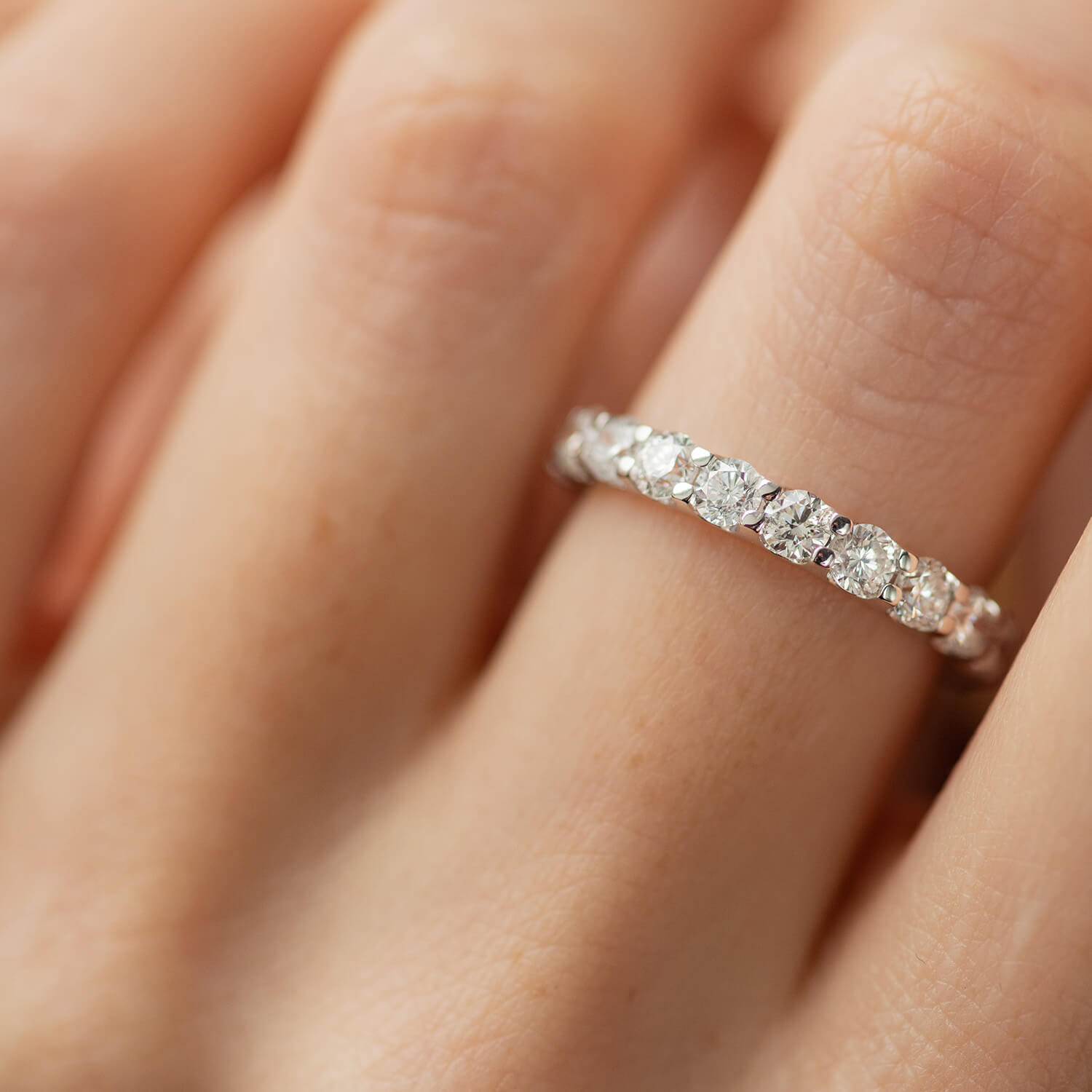 Каблучка з доріжкою діамантів (біле золото) 222001121