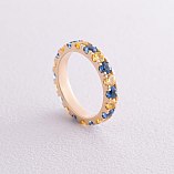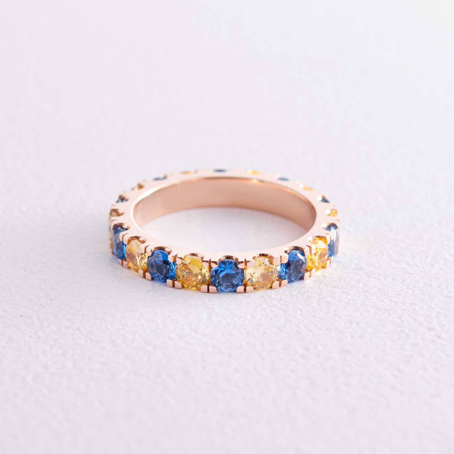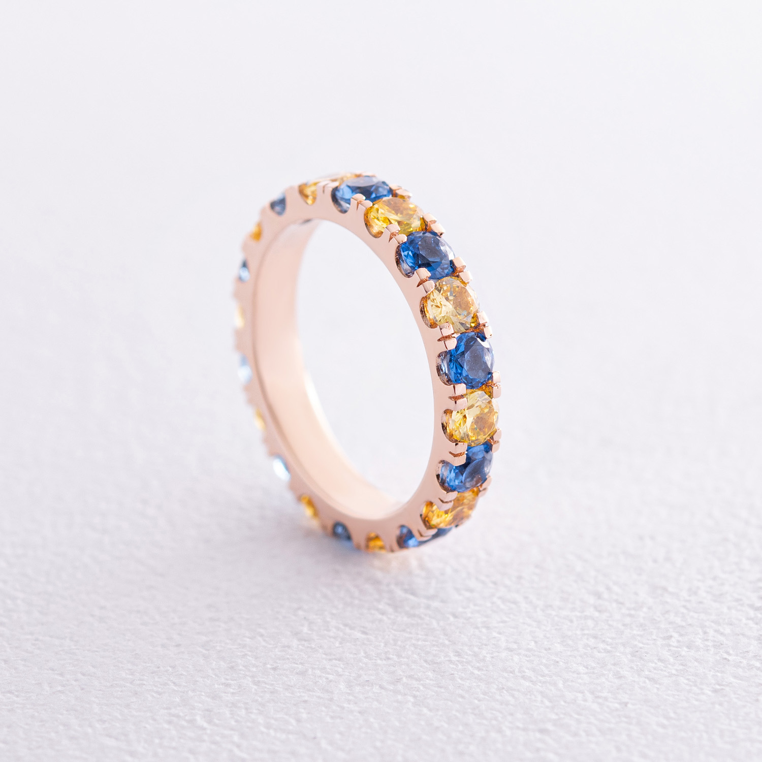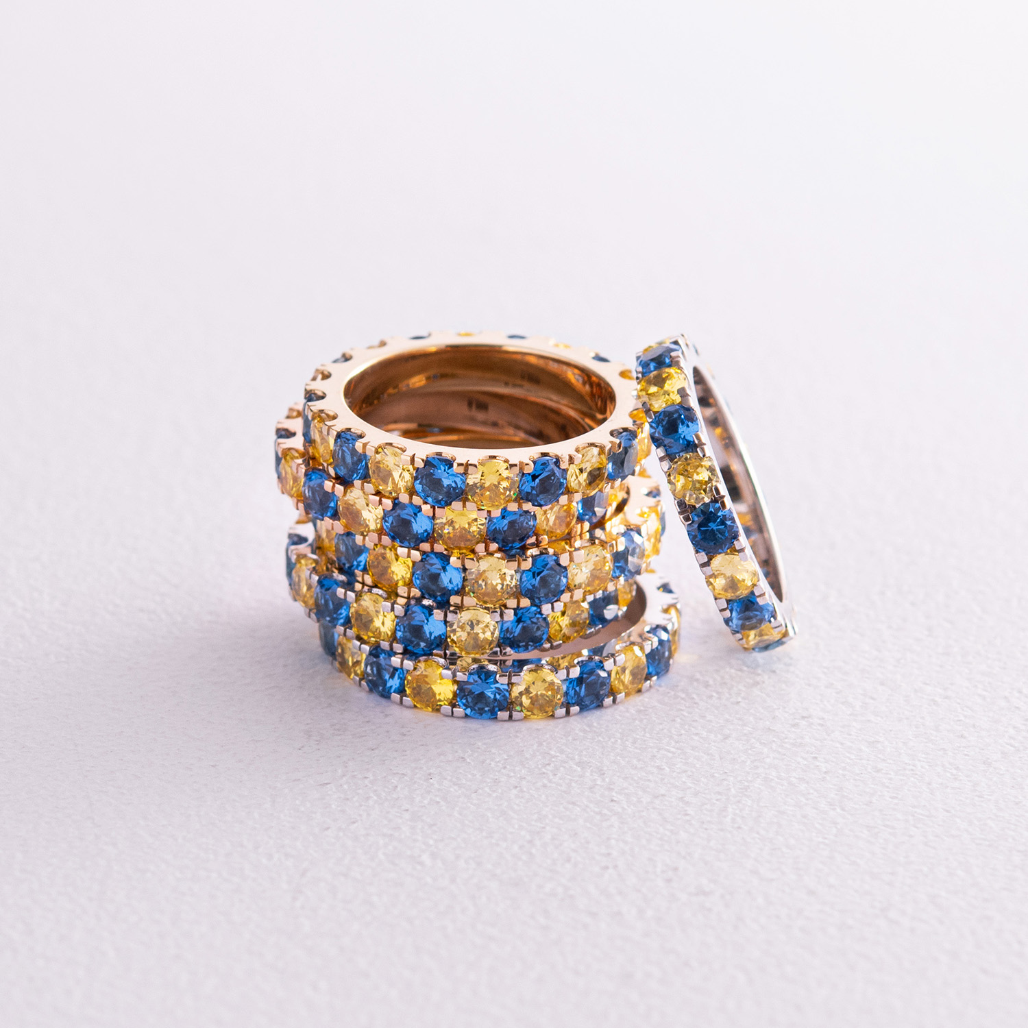 Каблучка з доріжкою блакитних та жовтих каменів (червоне золото) к07107