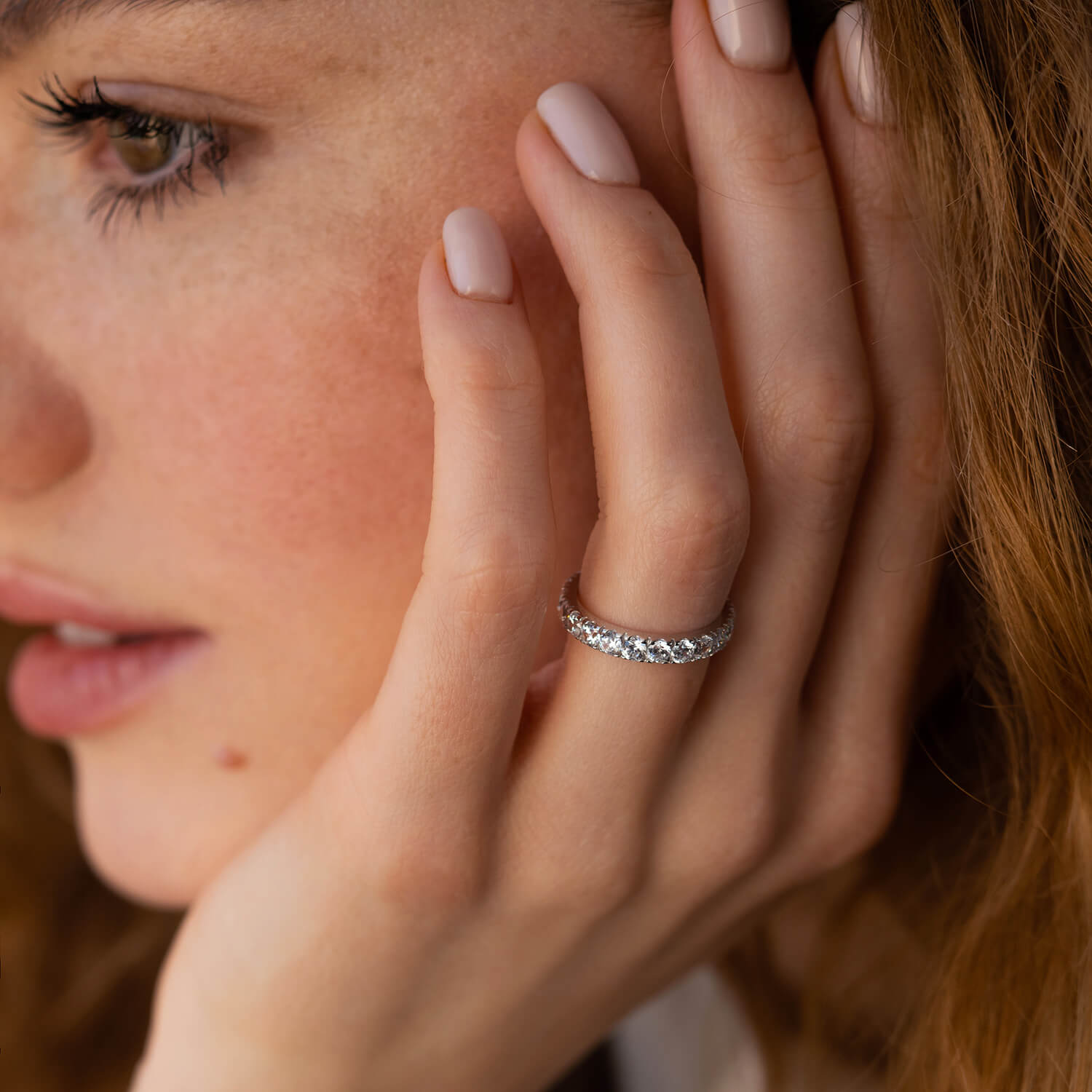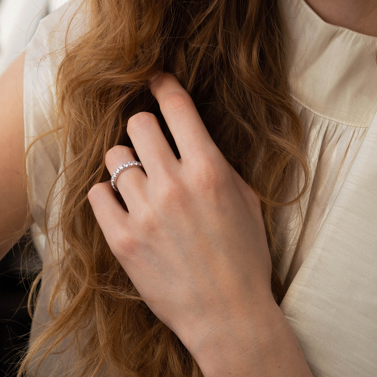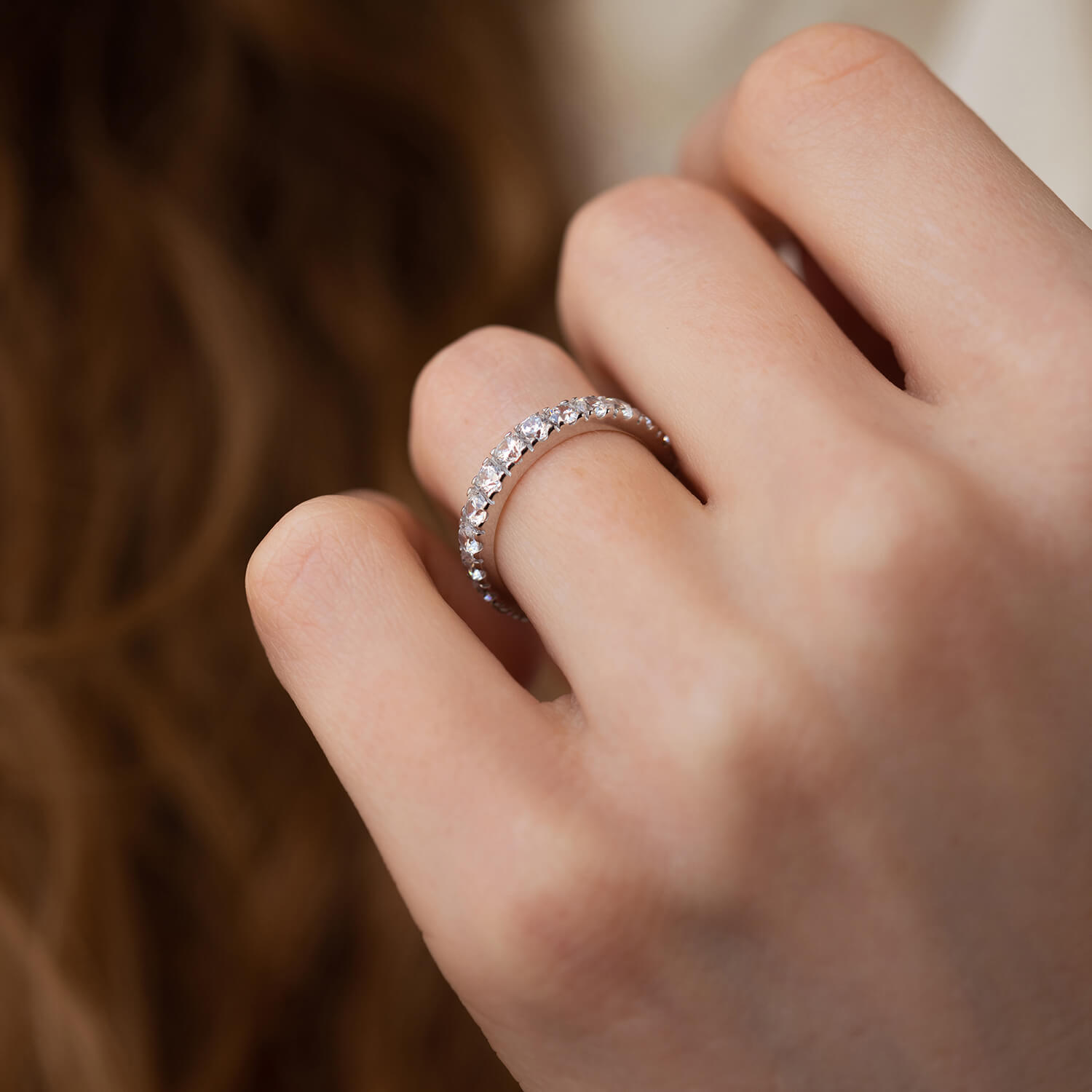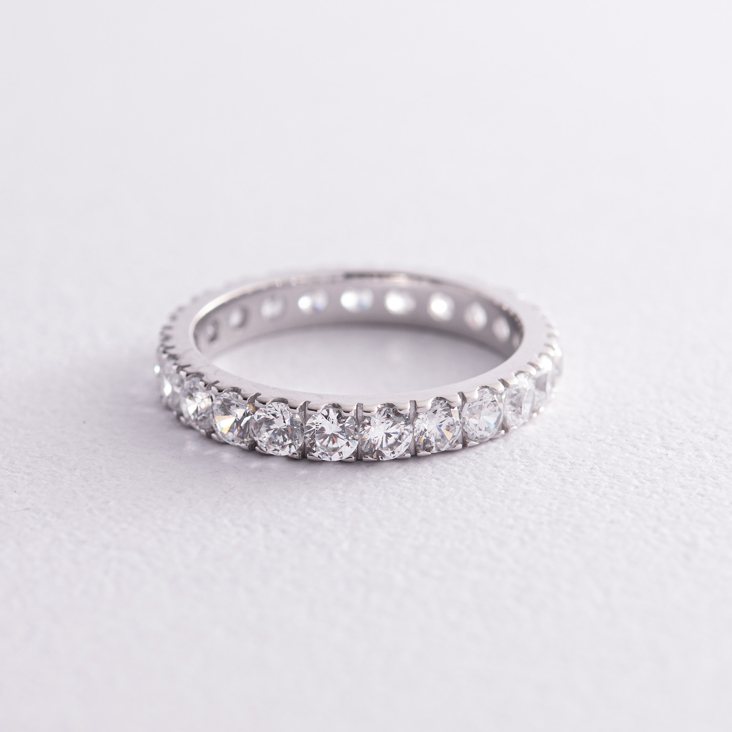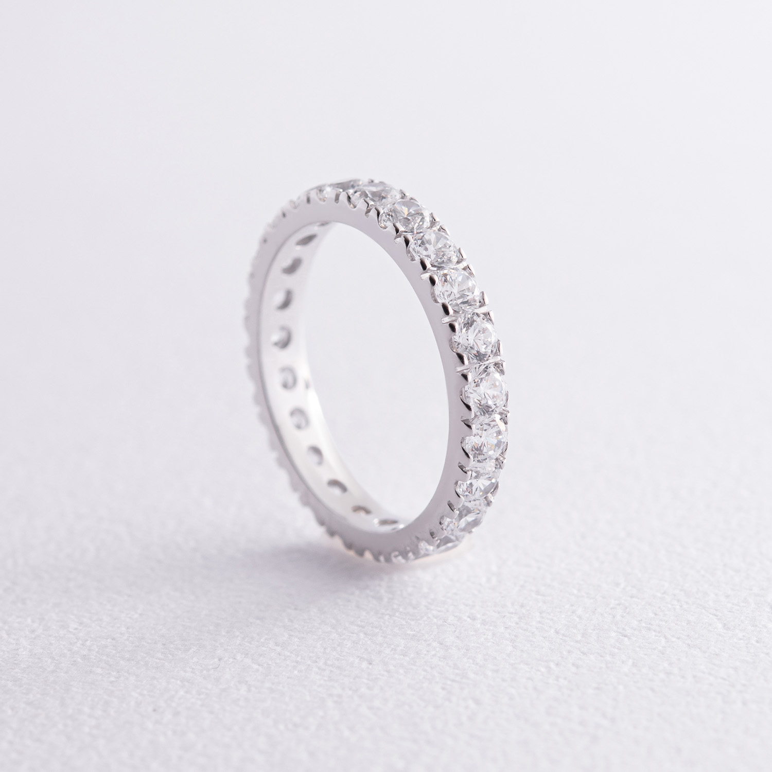Каблучка з доріжкою каменів в білому золоті (фіаніти) к07390