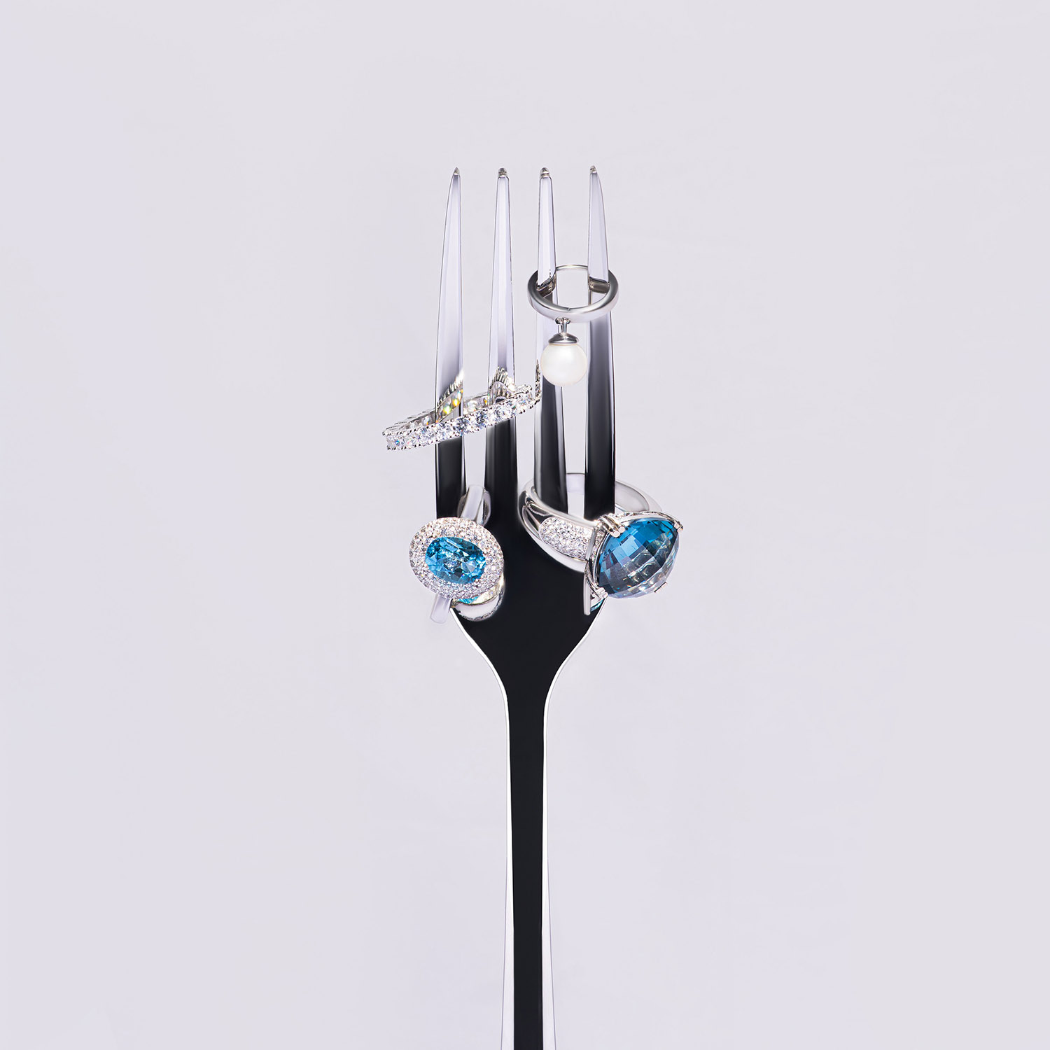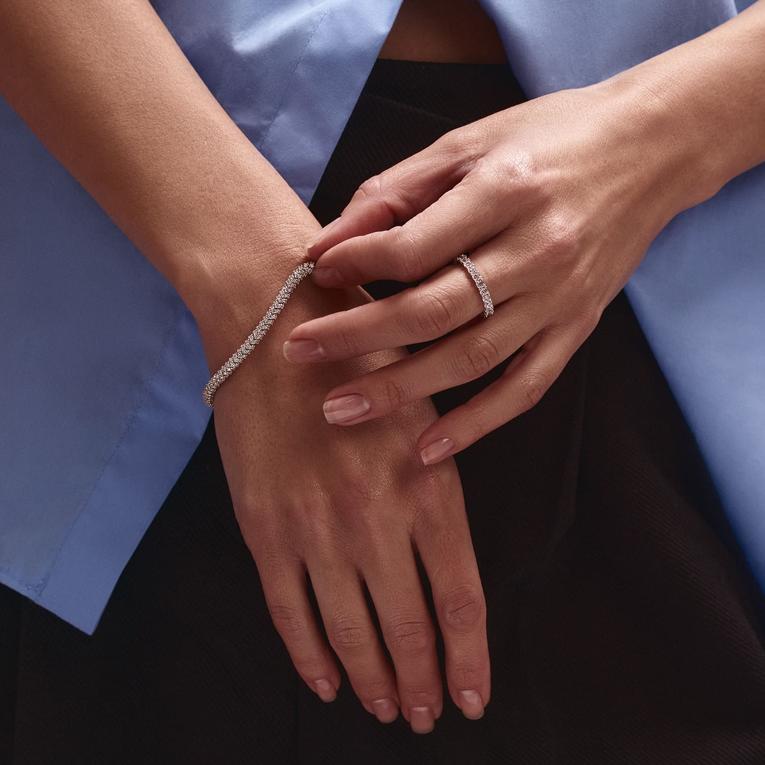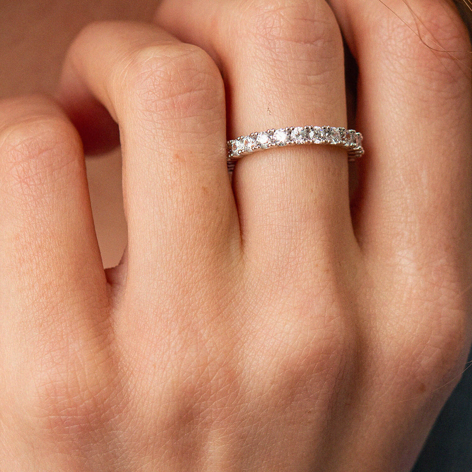 Каблучка "Paris" з доріжкою каменів в білому золоті к07202