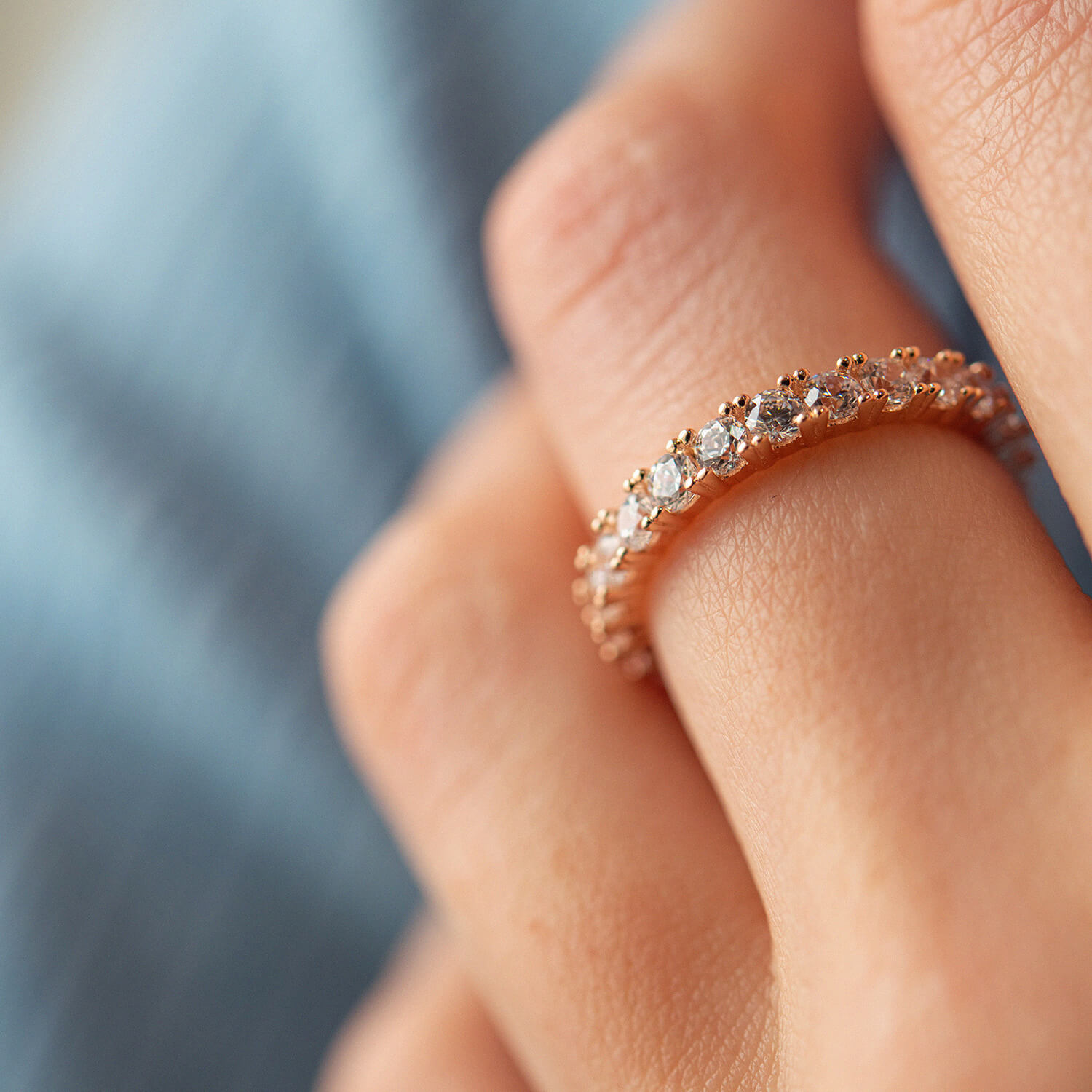 Каблучка "Paris" з доріжкою каменів у червоному золоті к07200