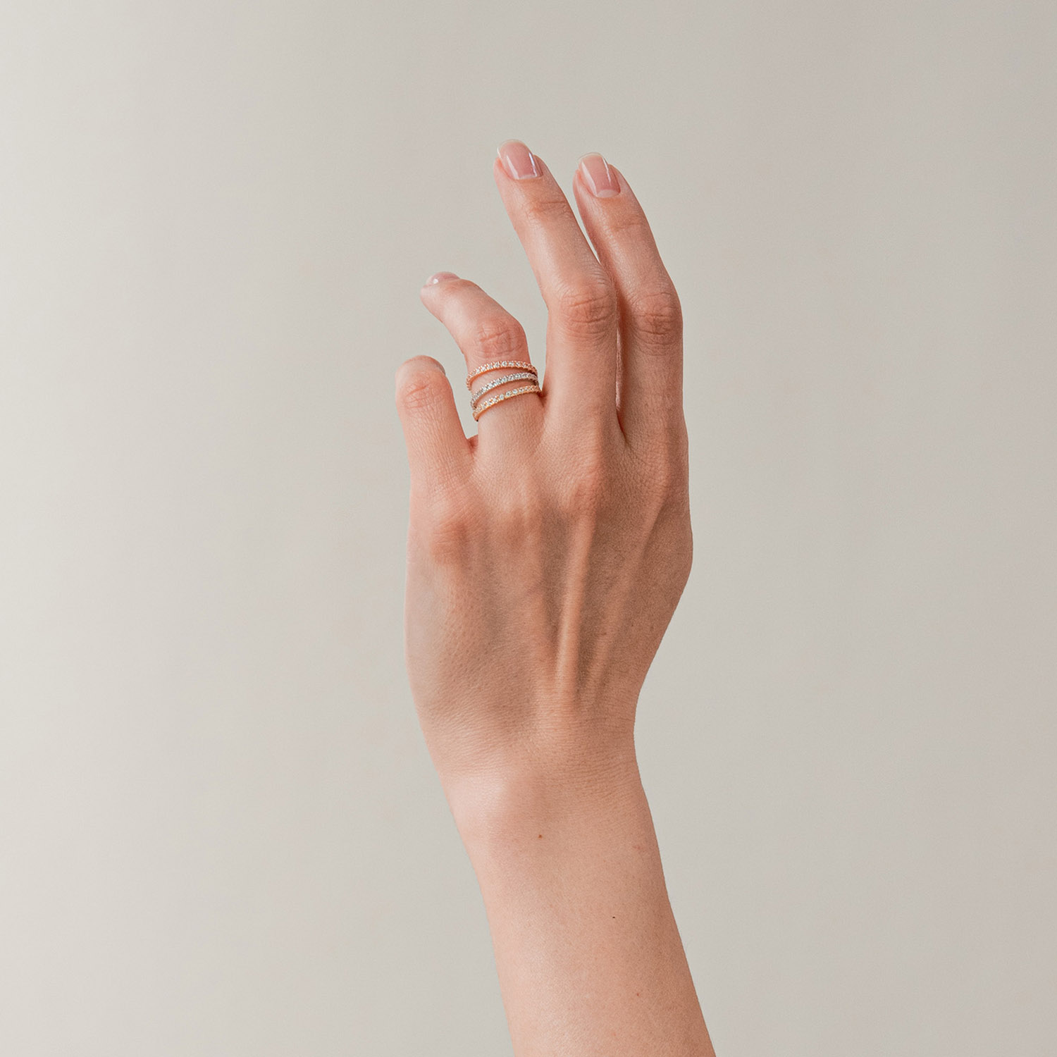 Каблучка з доріжкою каменів в червоному золоті к08277