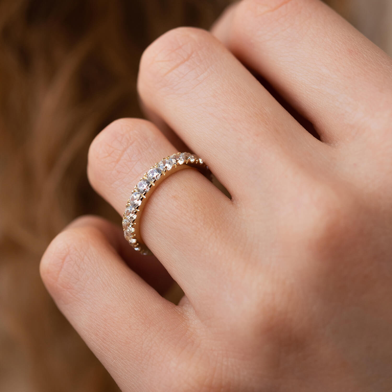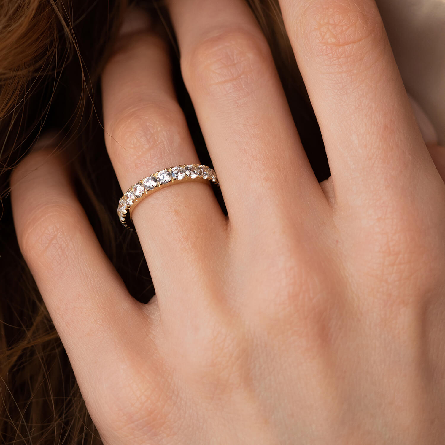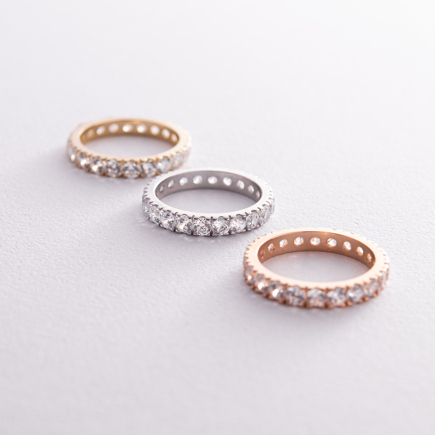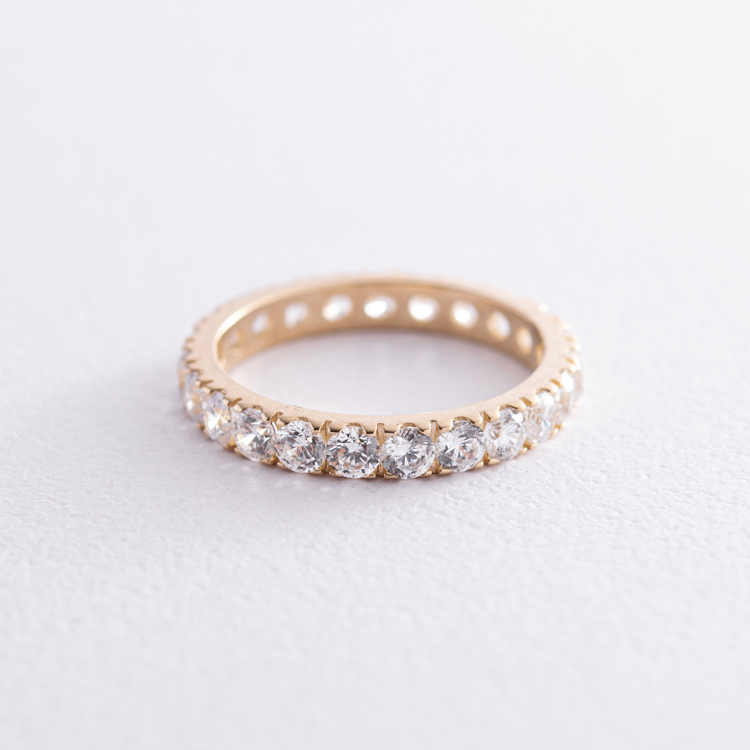 Каблучка з доріжкою каменів в жовтому золоті (фіаніти) к07389