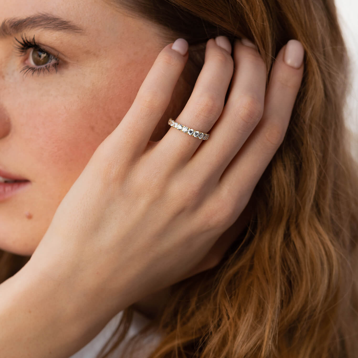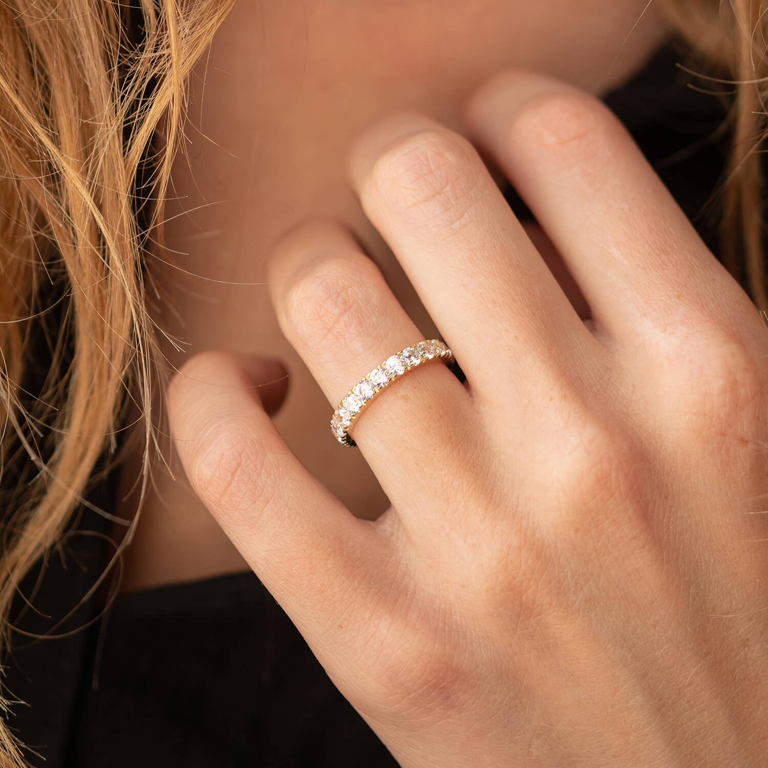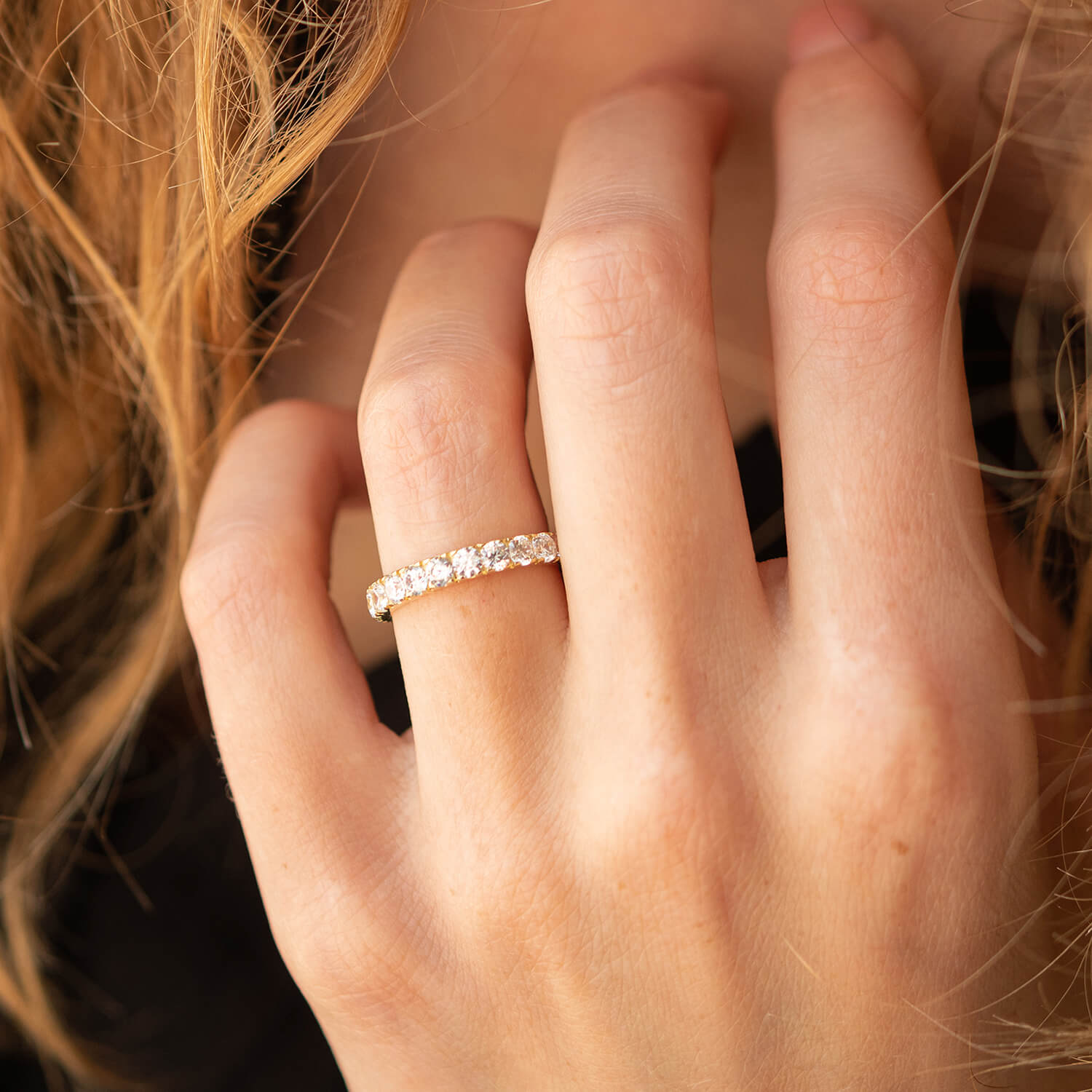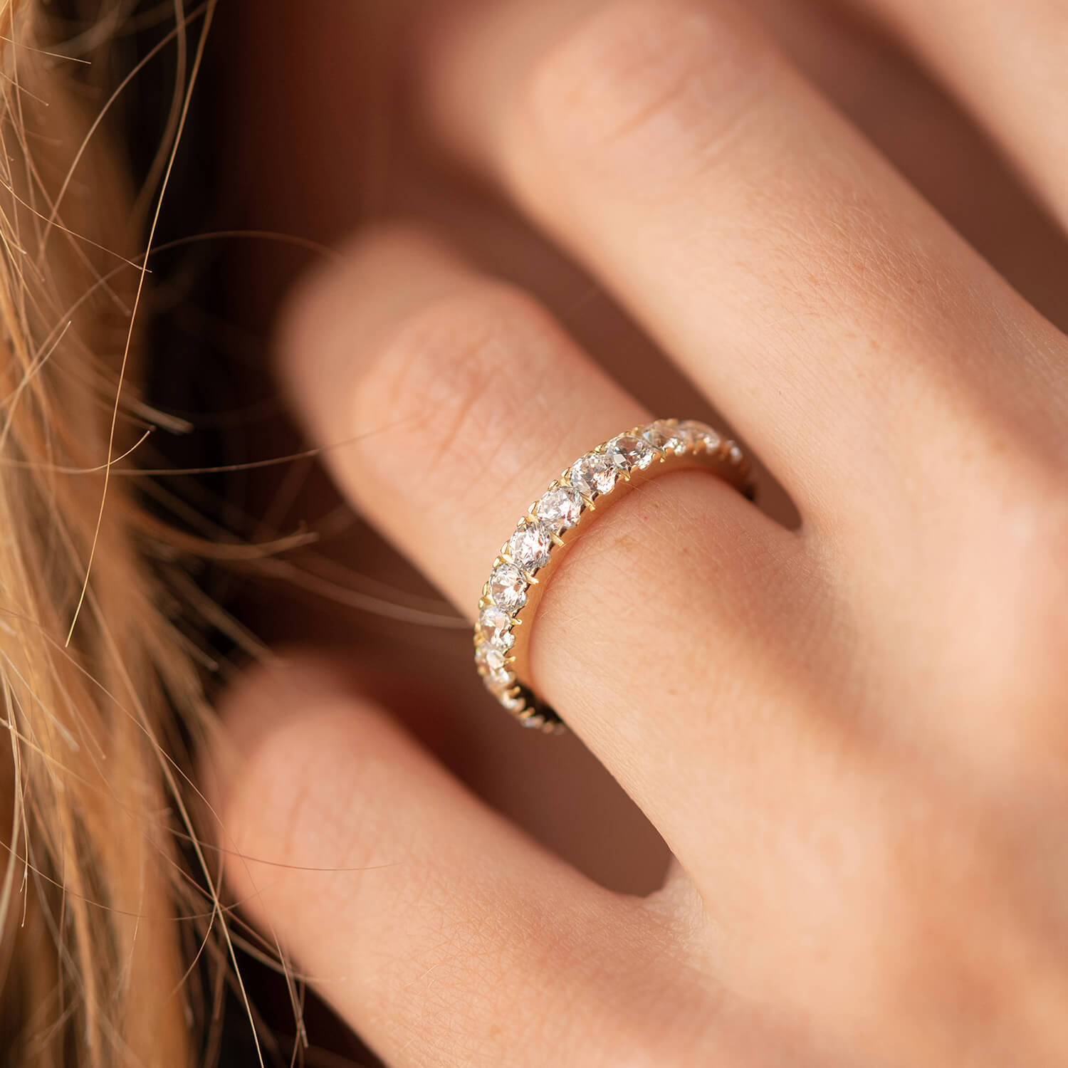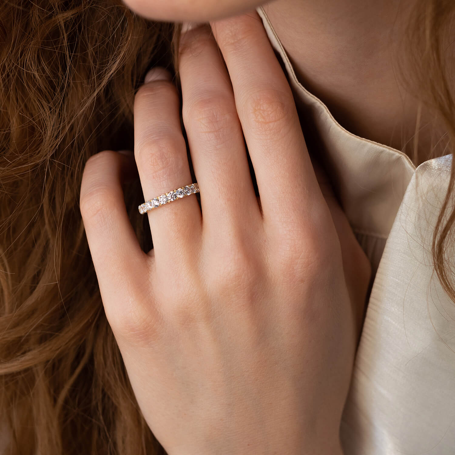 Каблучка з доріжкою каменів в жовтому золоті (фіаніти) к07389
