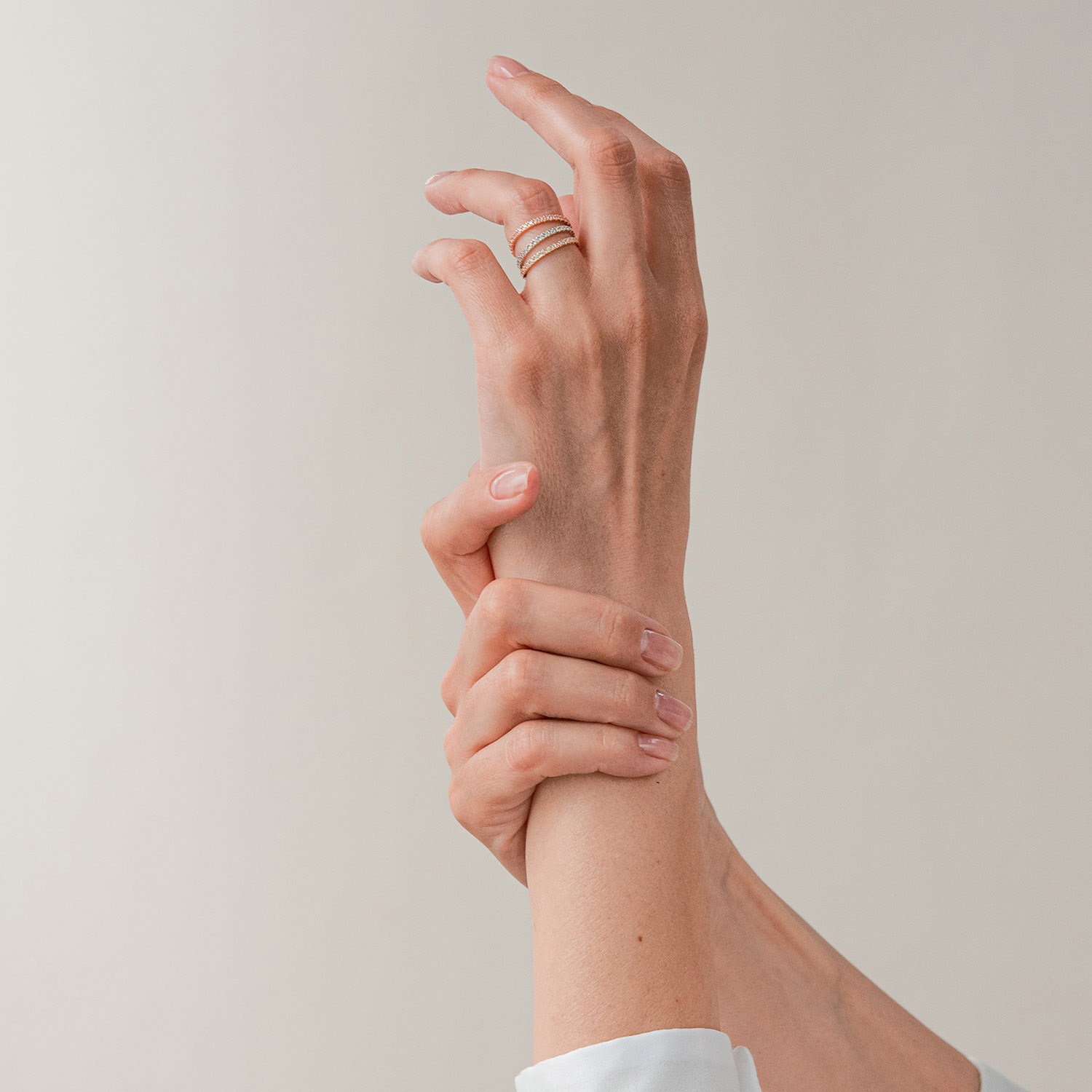 Каблучка з доріжкою каменів у жовтому золоті к08278