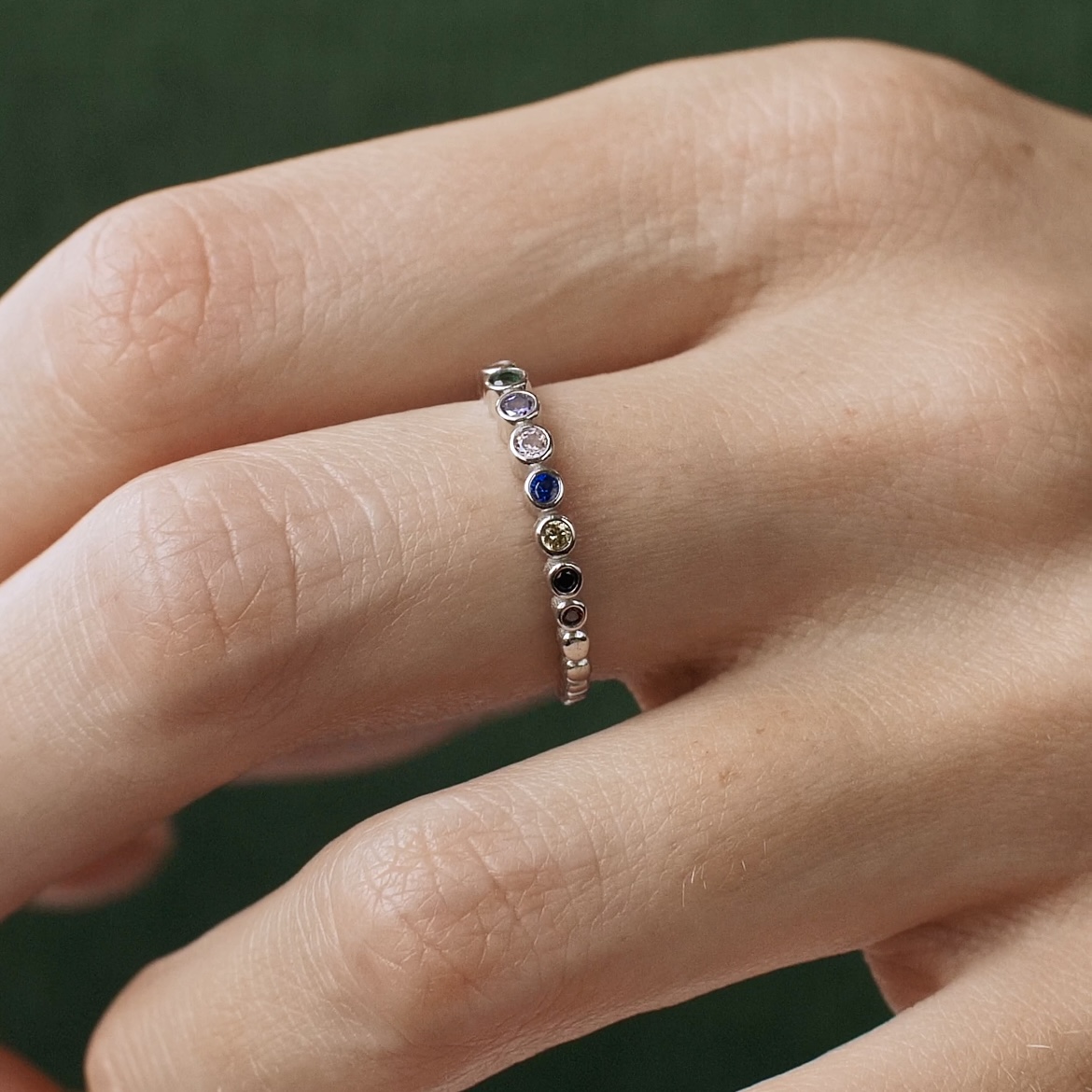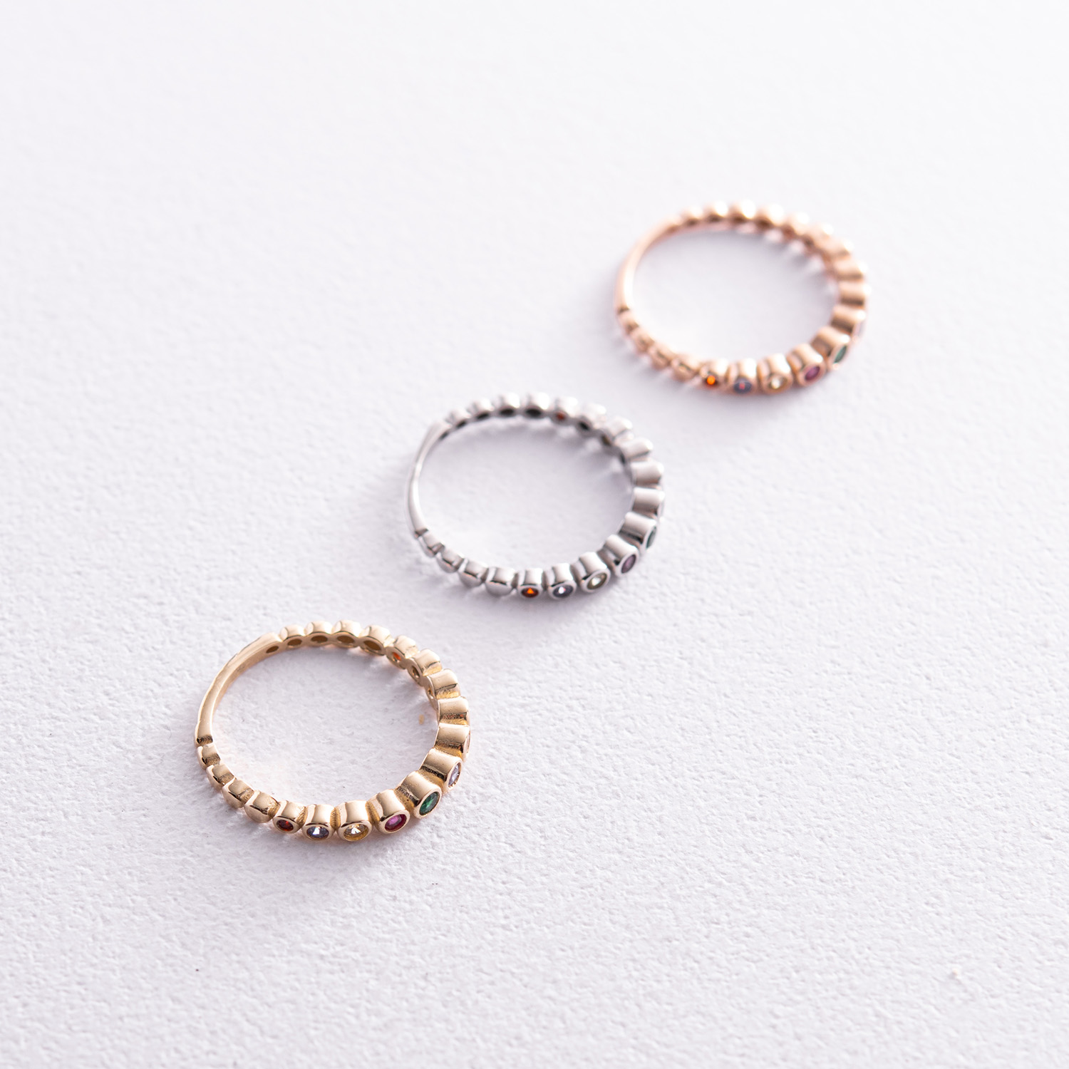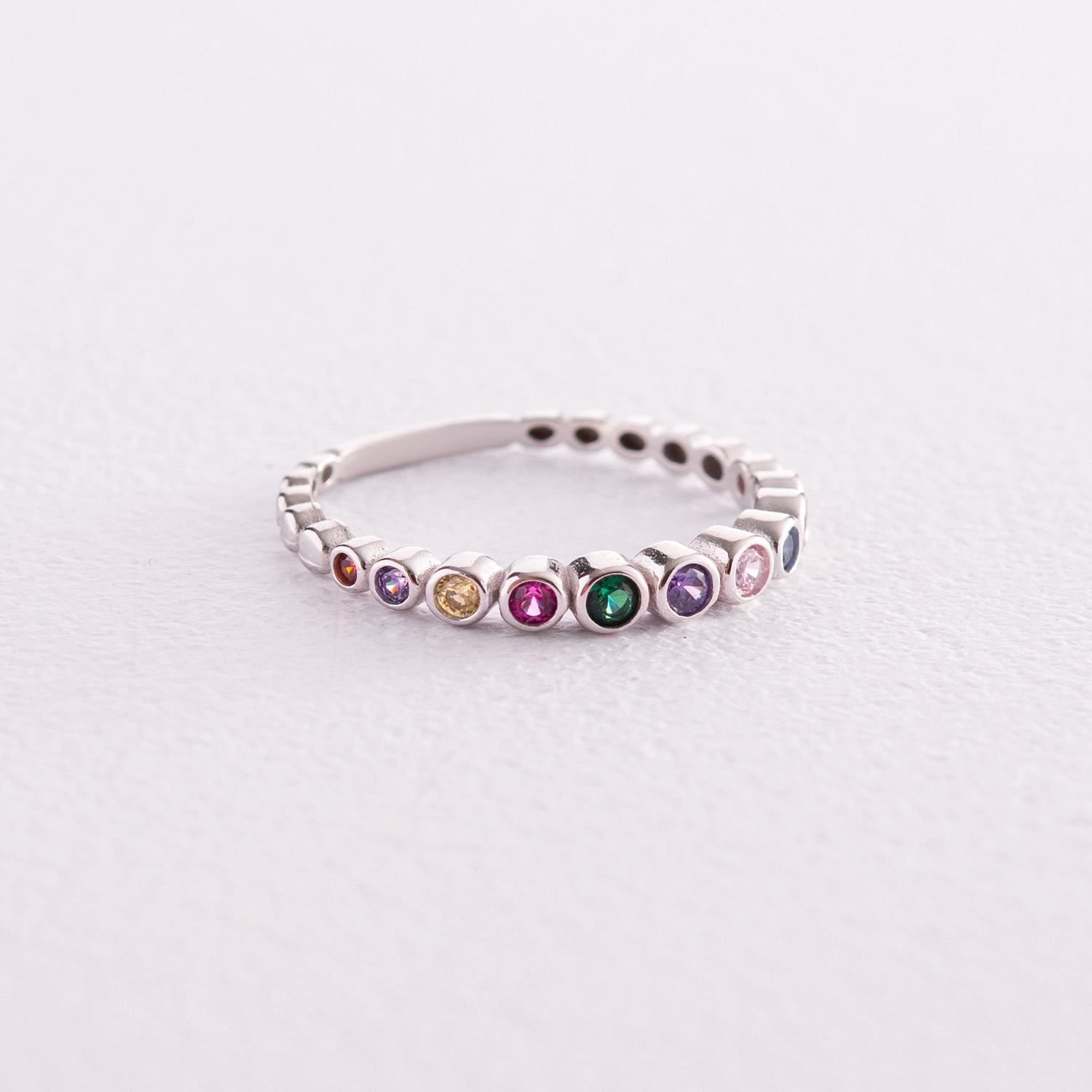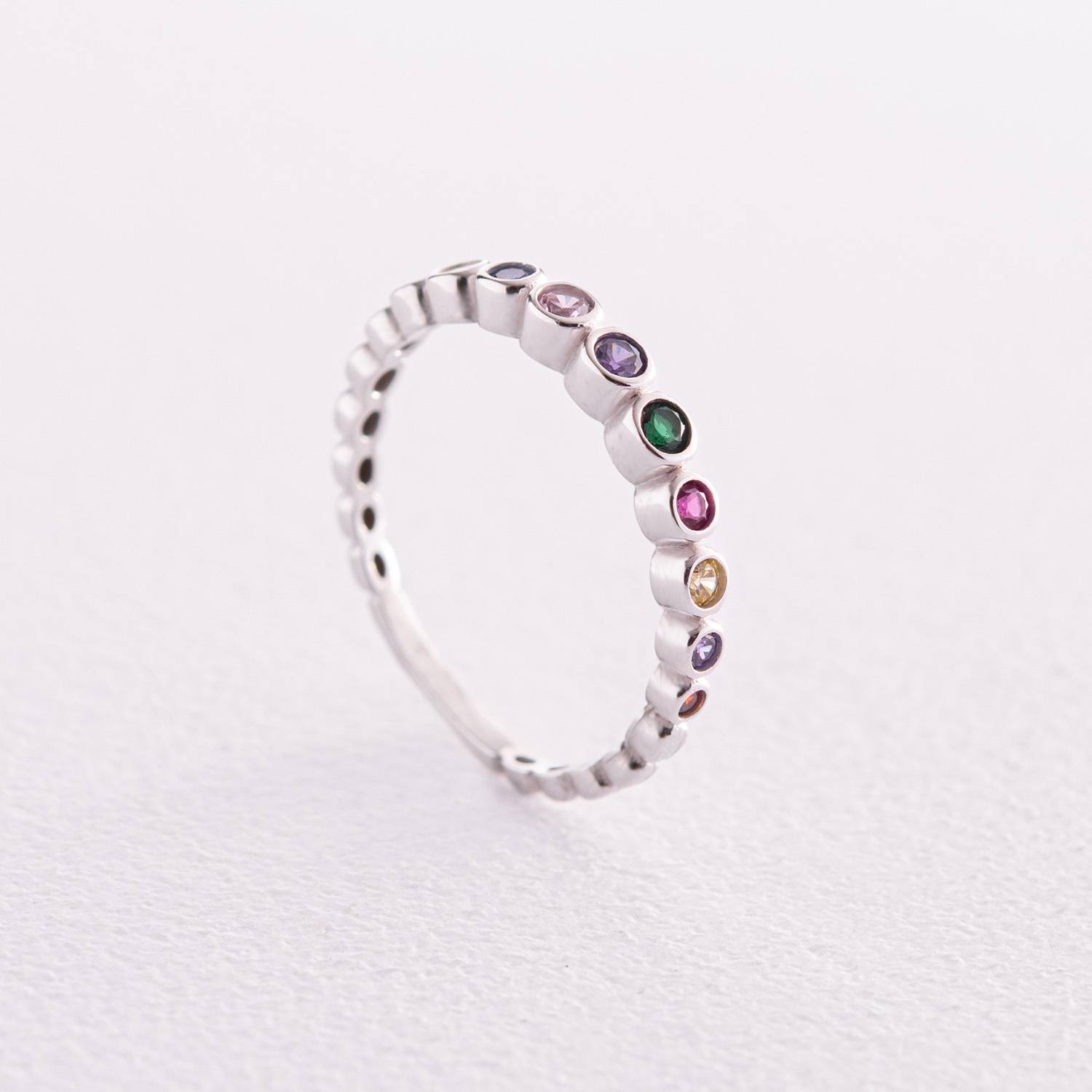Каблучка з різнокольоровими фіанітами (біле золото) к07130