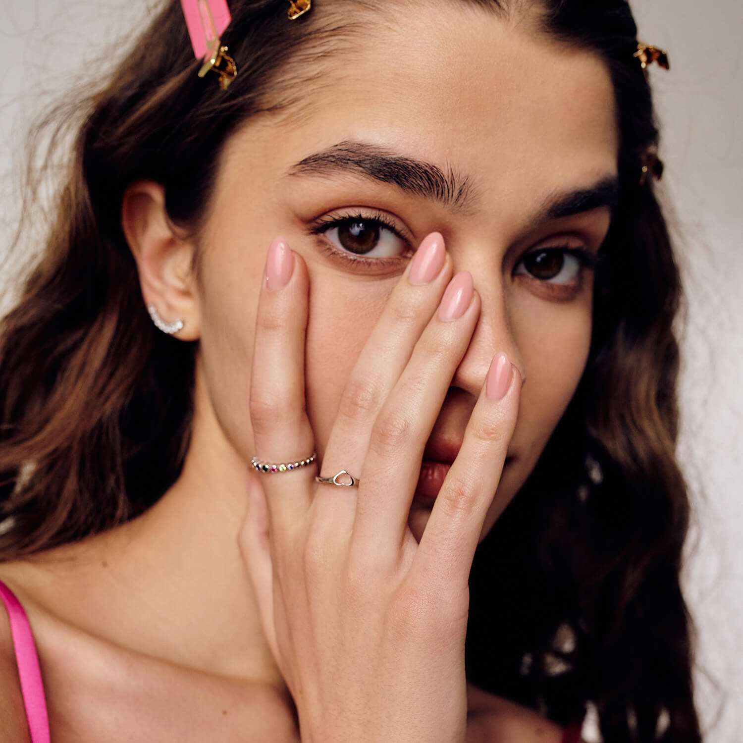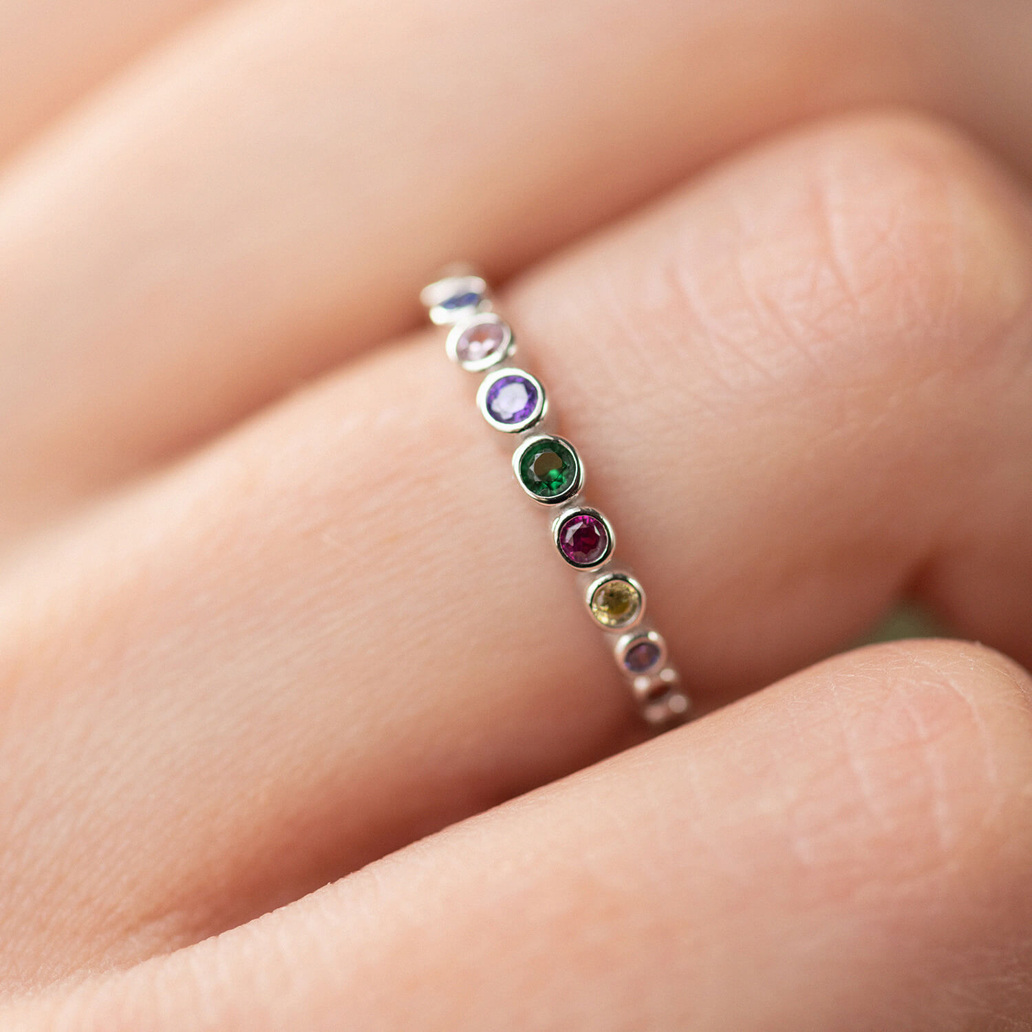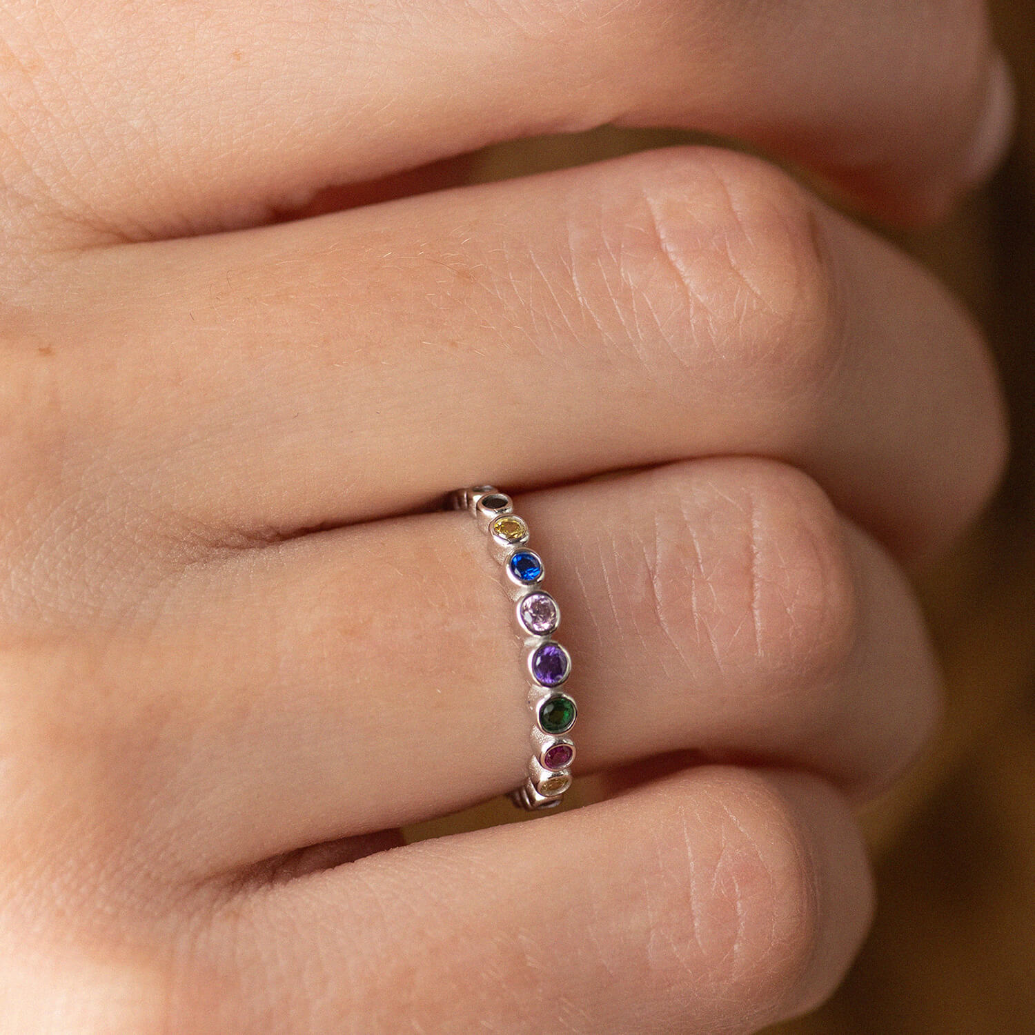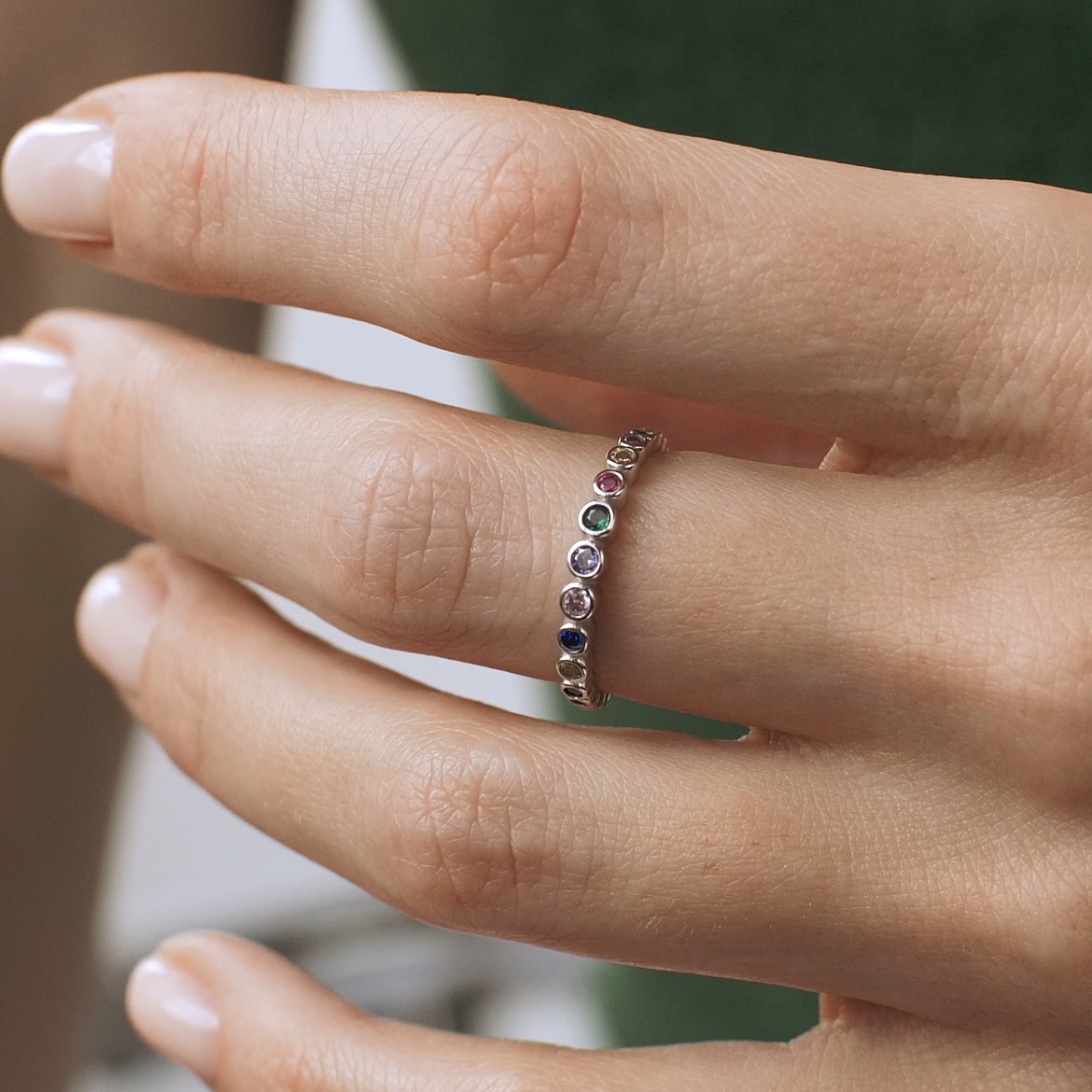 Каблучка з різнокольоровими фіанітами (біле золото) к07130