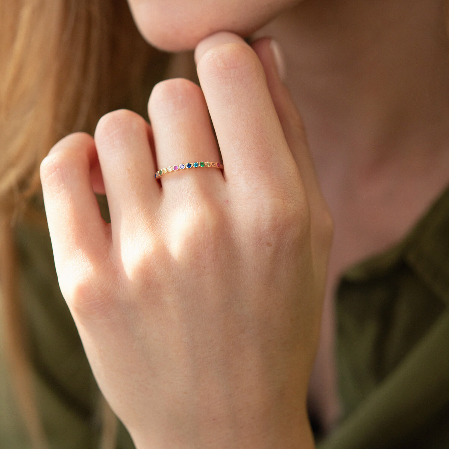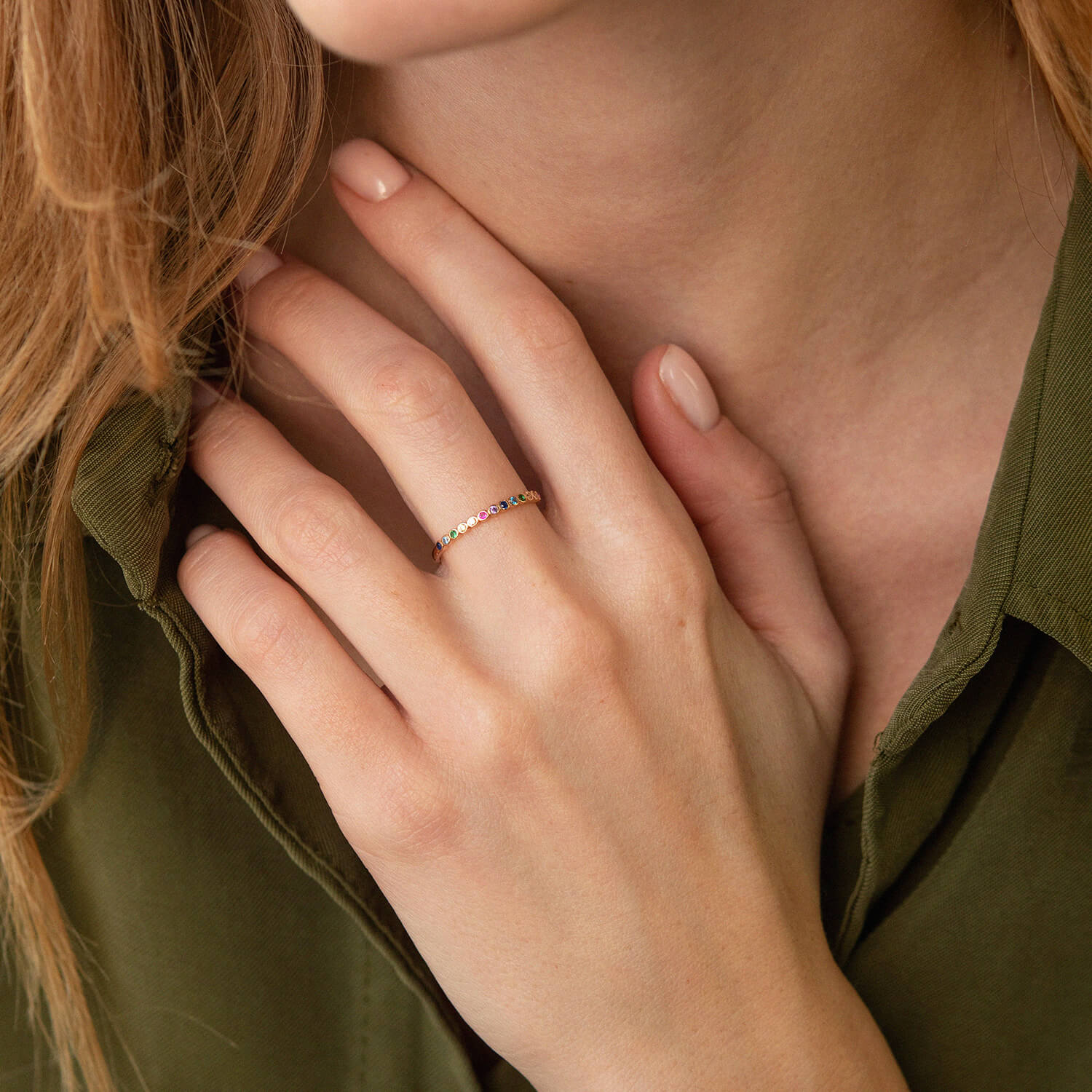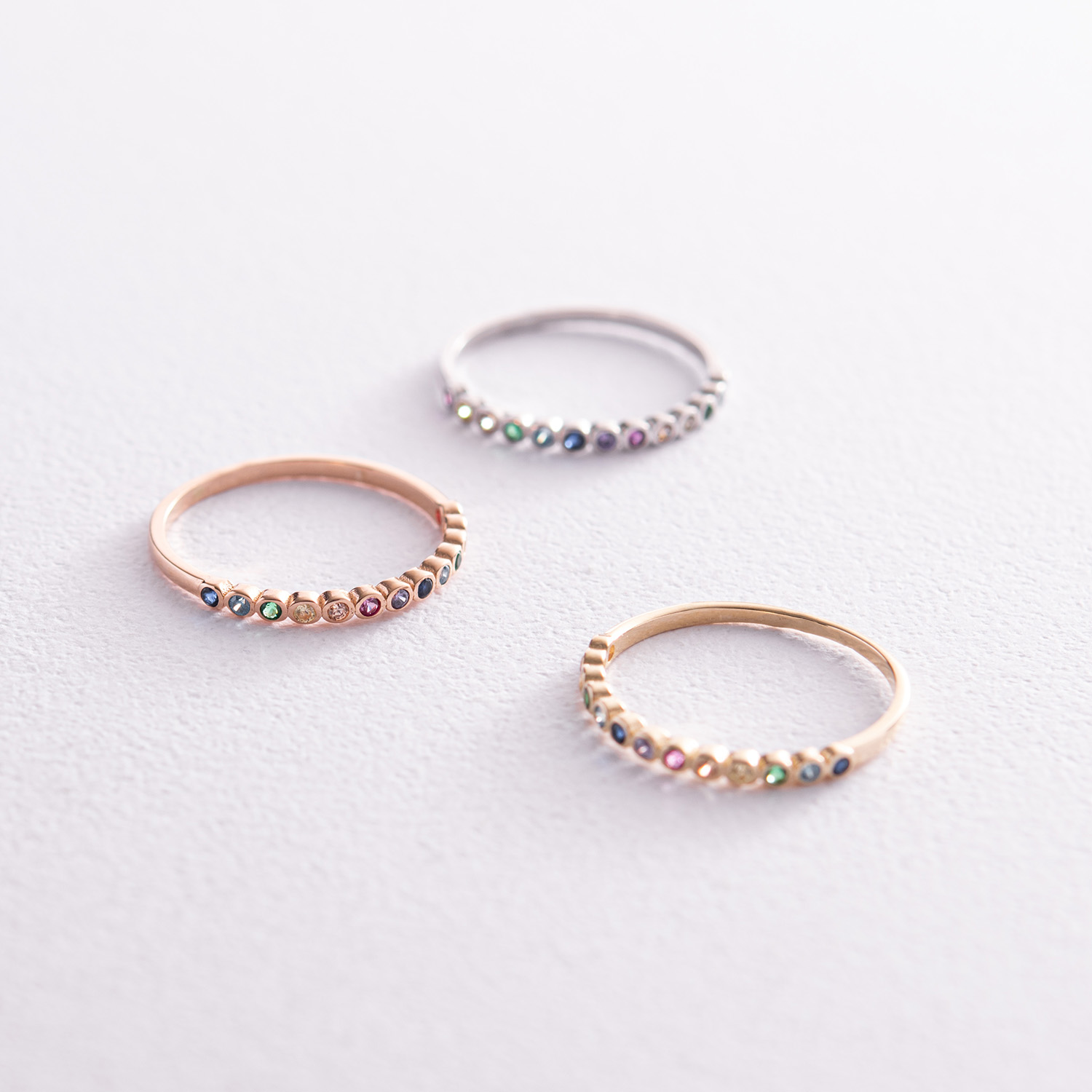 Каблучка з різнокольоровими фіанітами (червоне золото) к07161