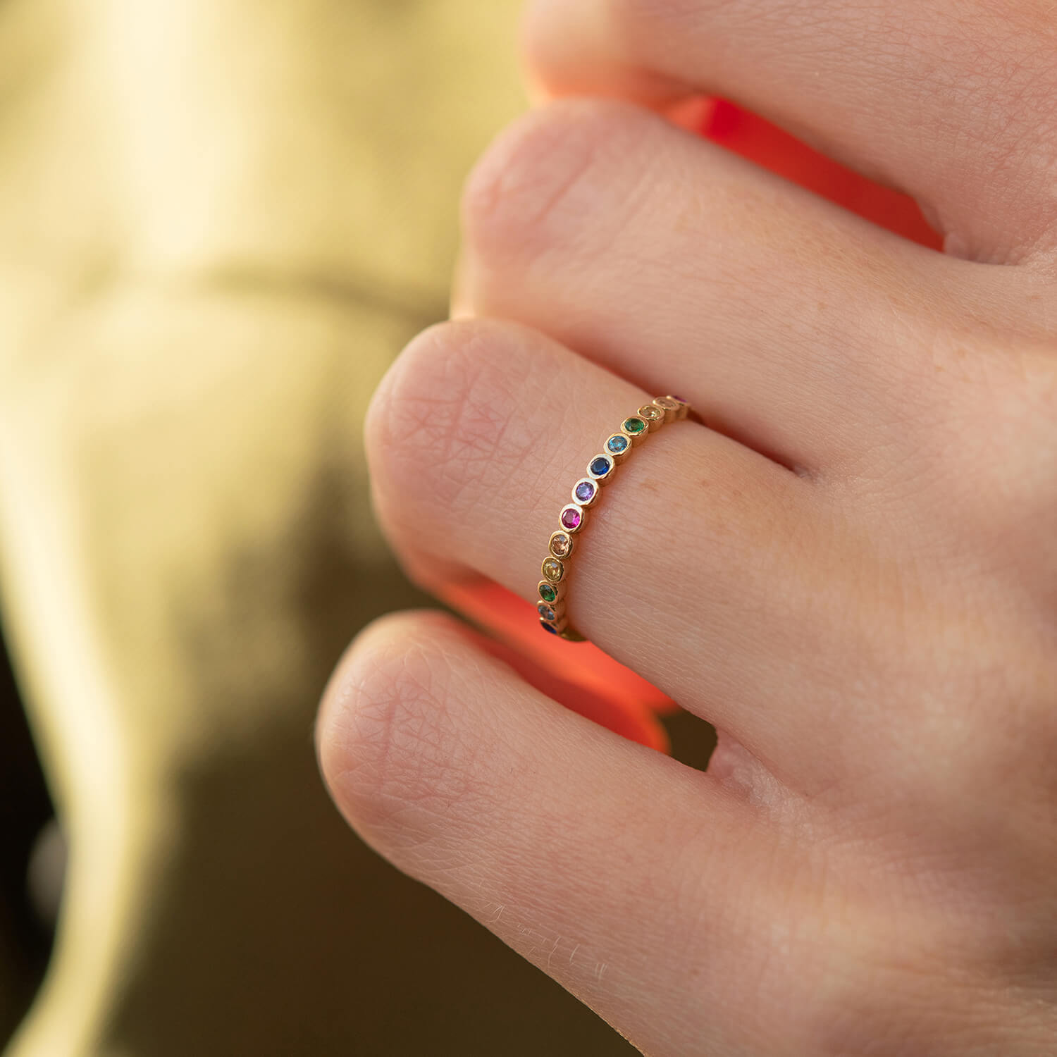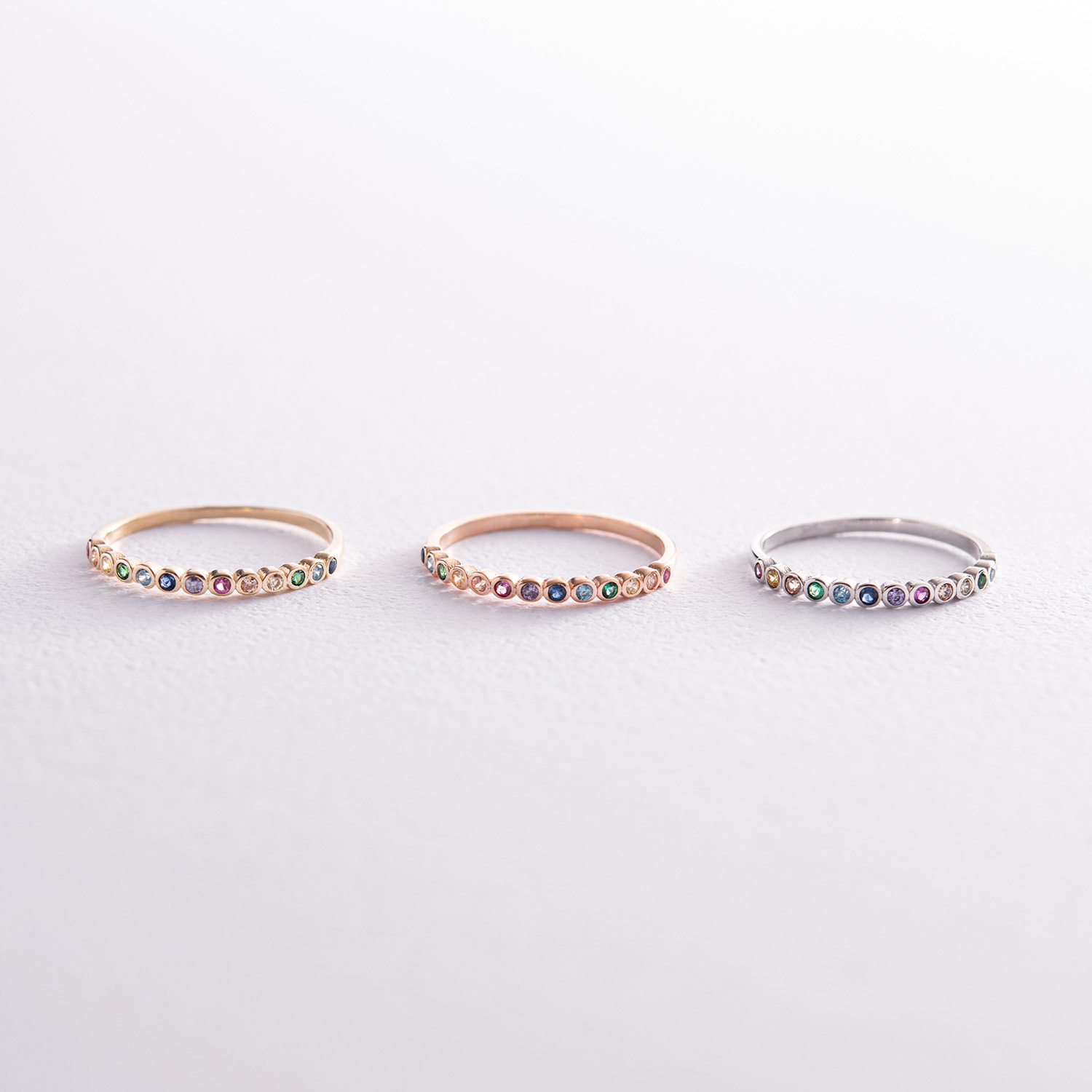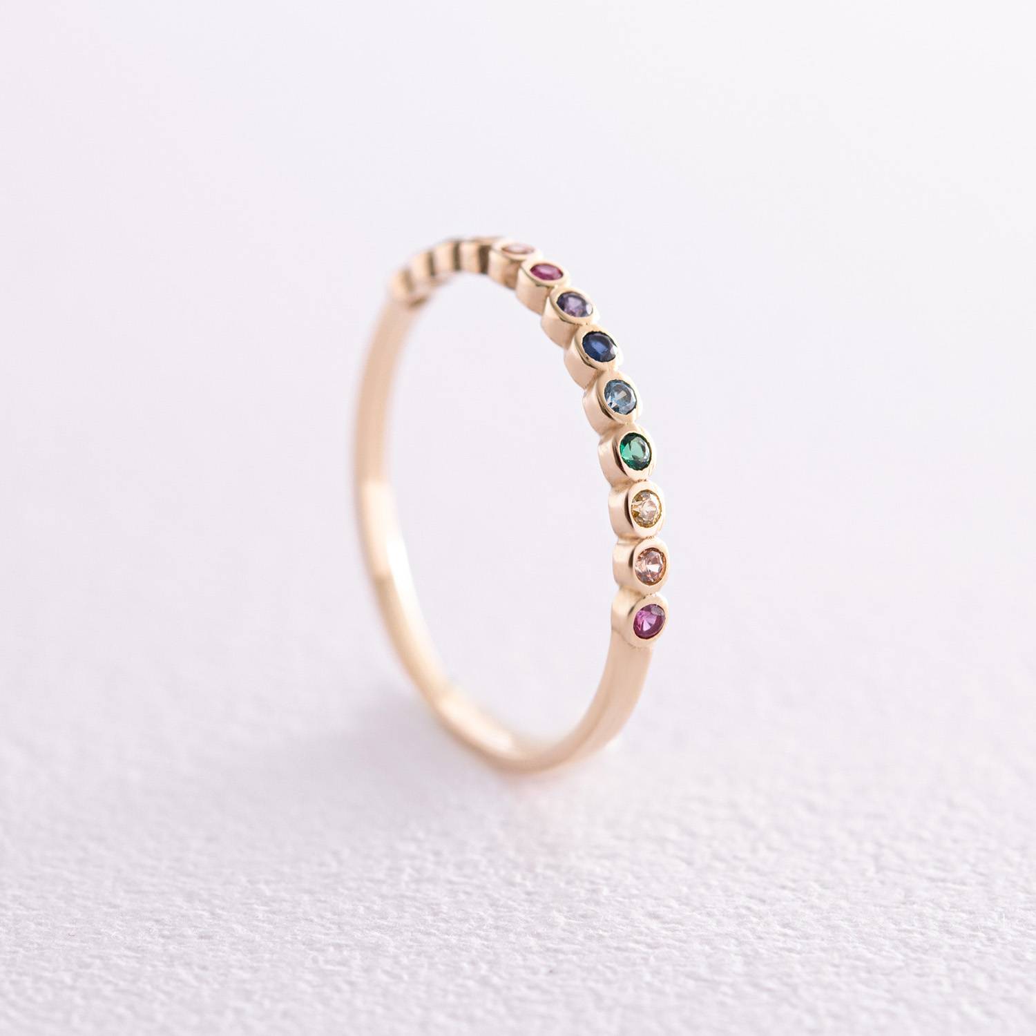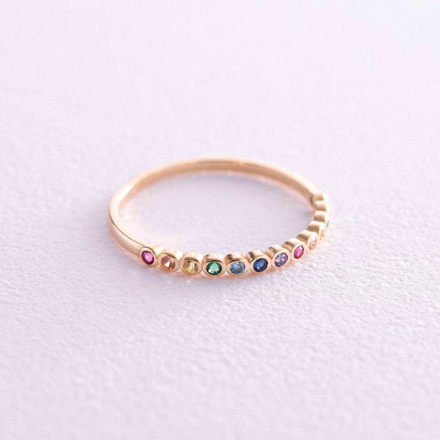 Каблучка з різнокольоровими фіанітами (жовте золото) к07162