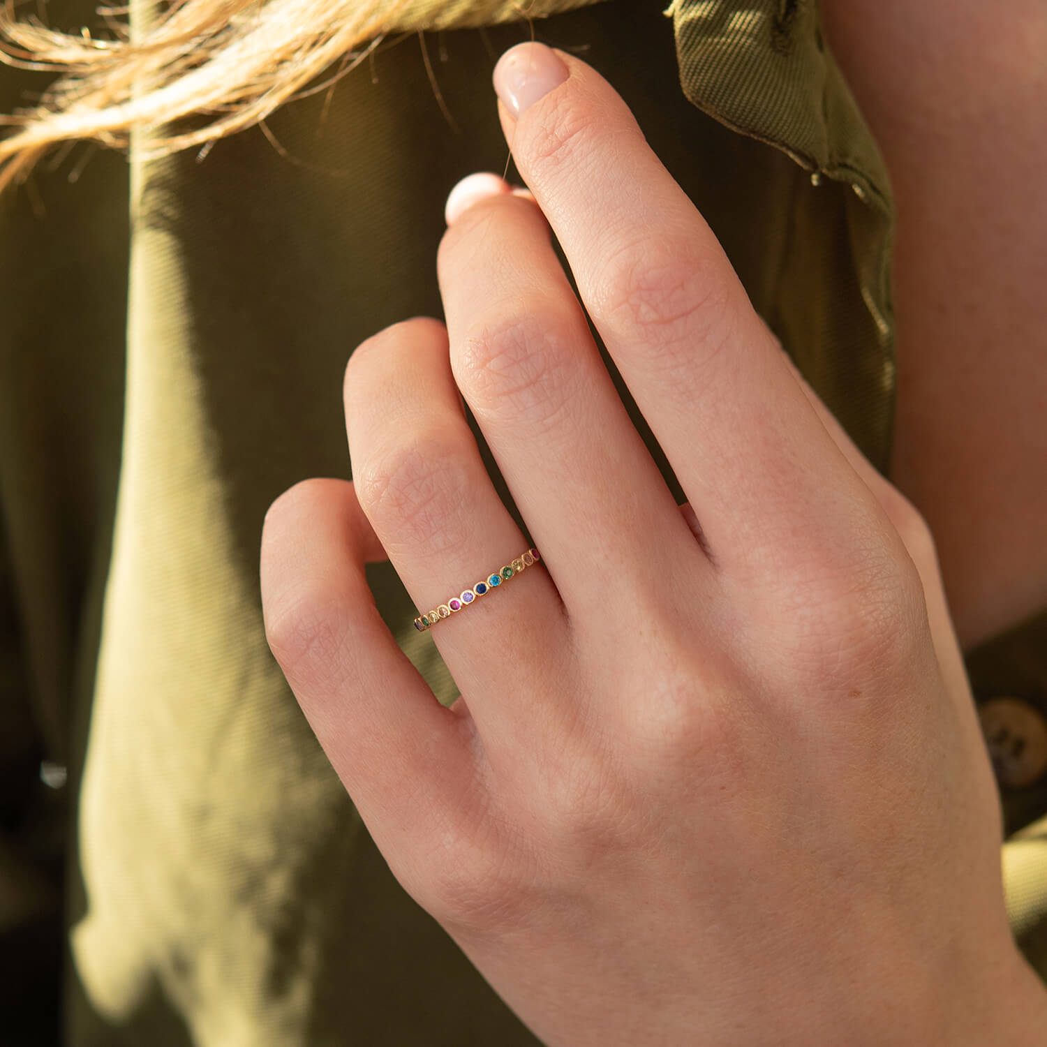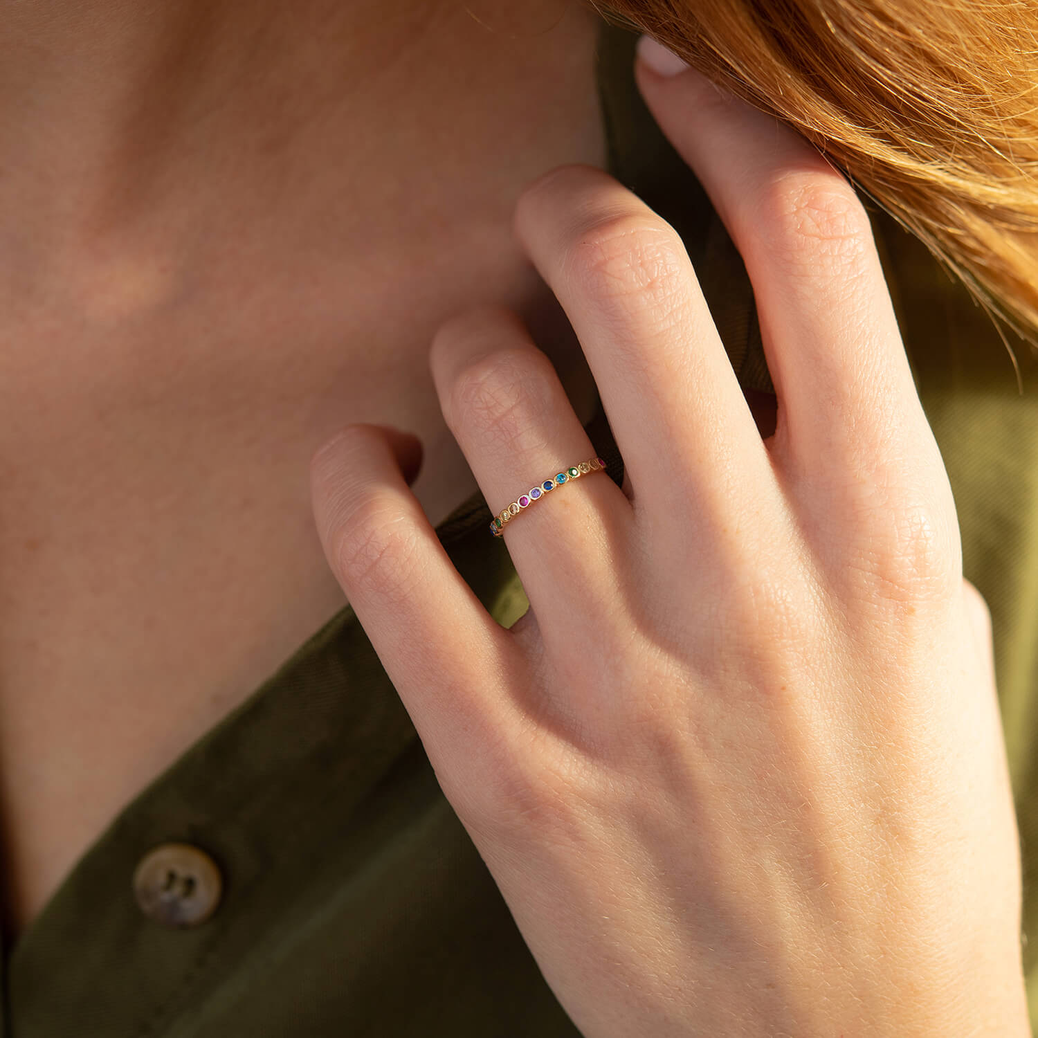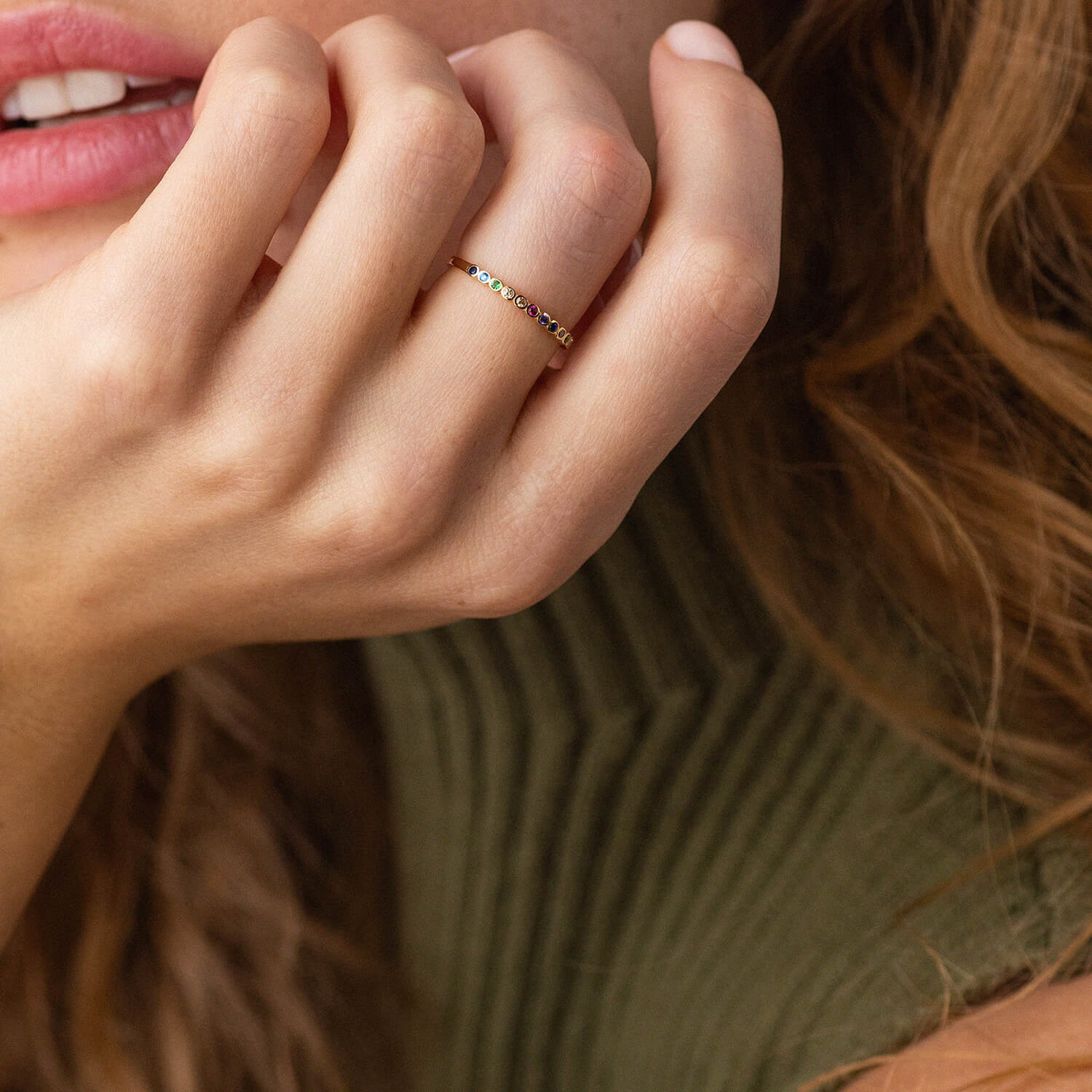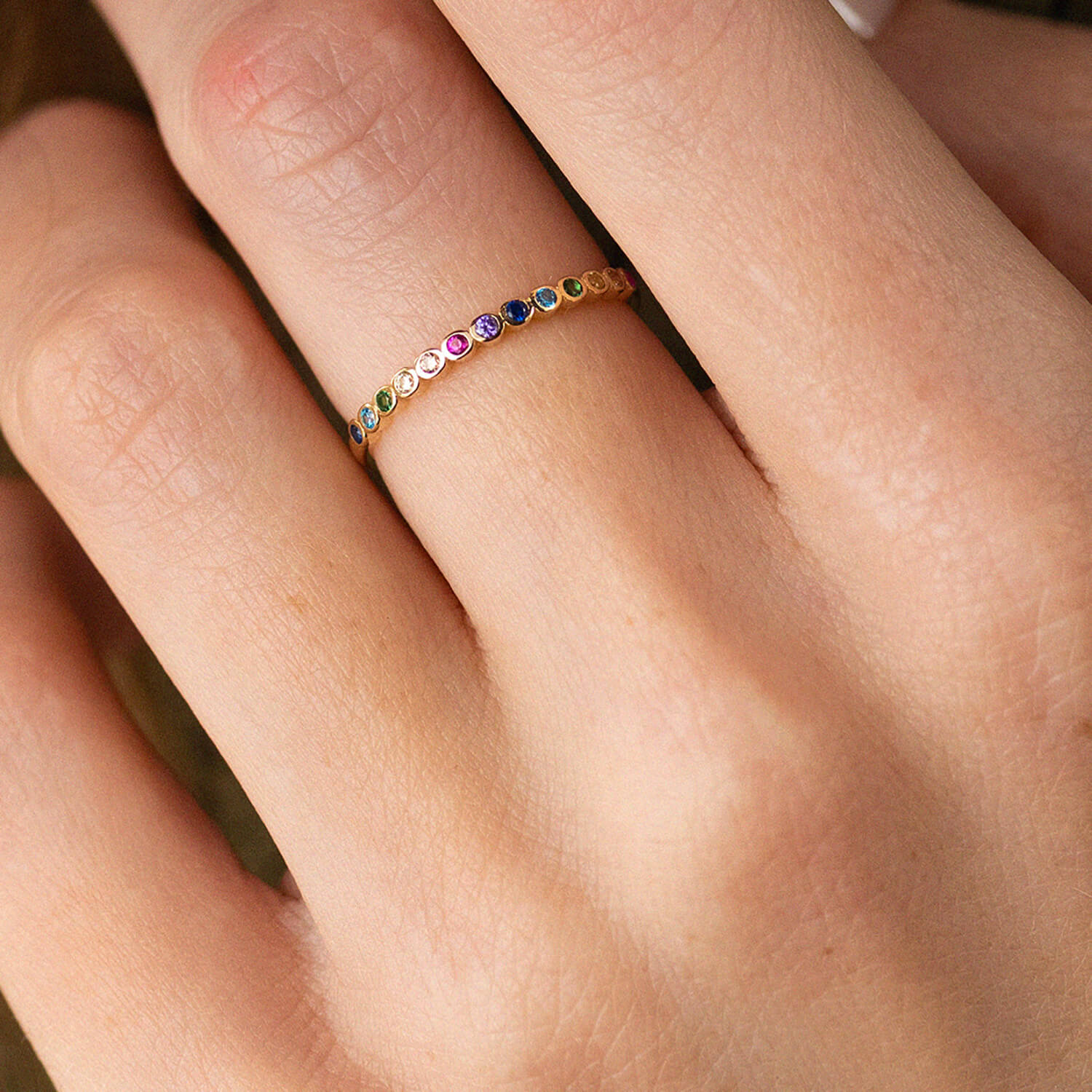 Каблучка з різнокольоровими фіанітами (жовте золото) к07162