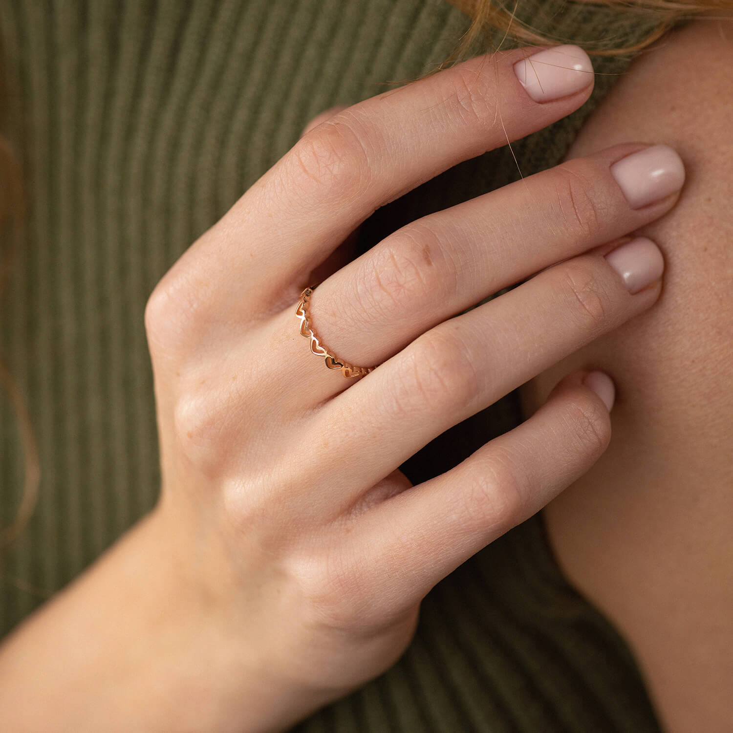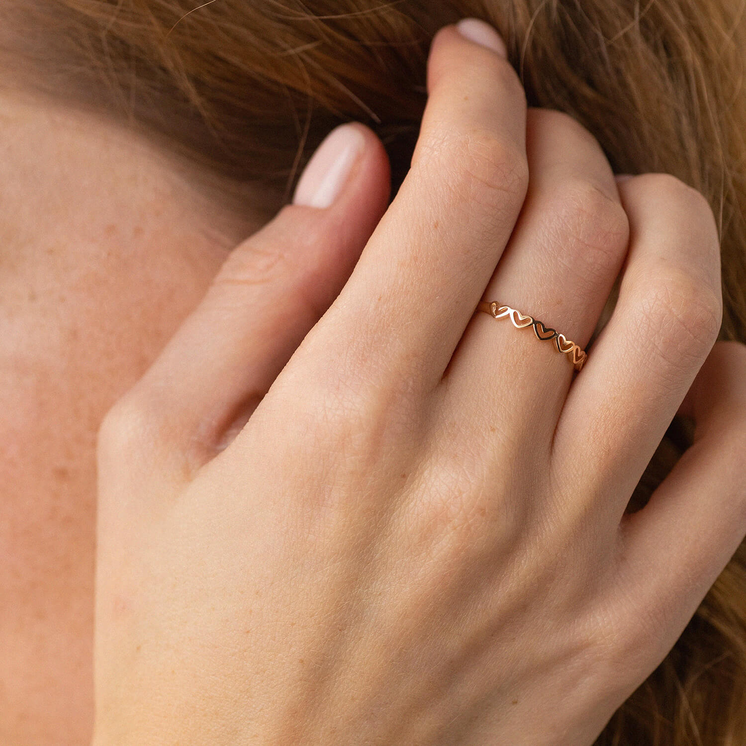 Каблучка "Сердечки" в червоному золоті к07158
