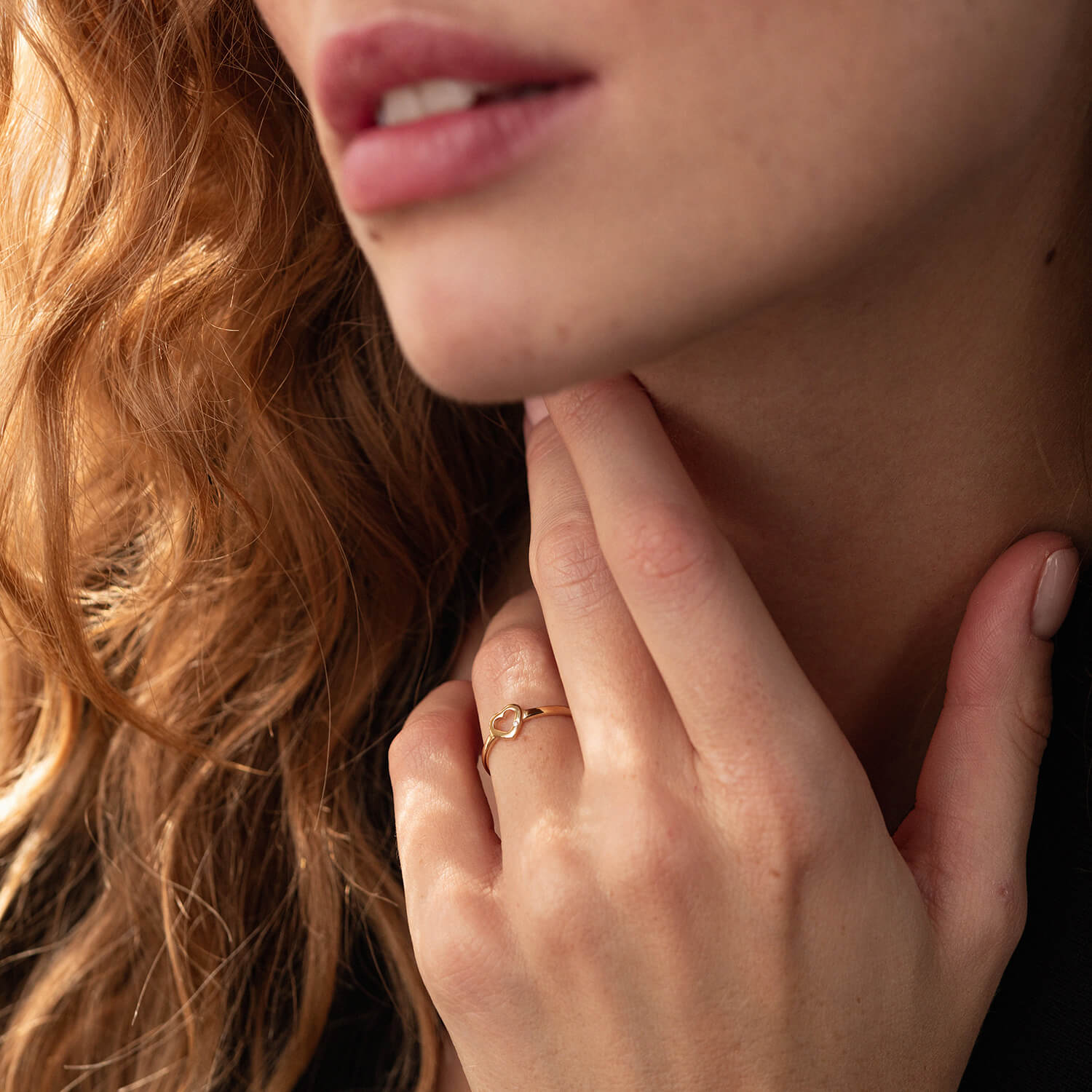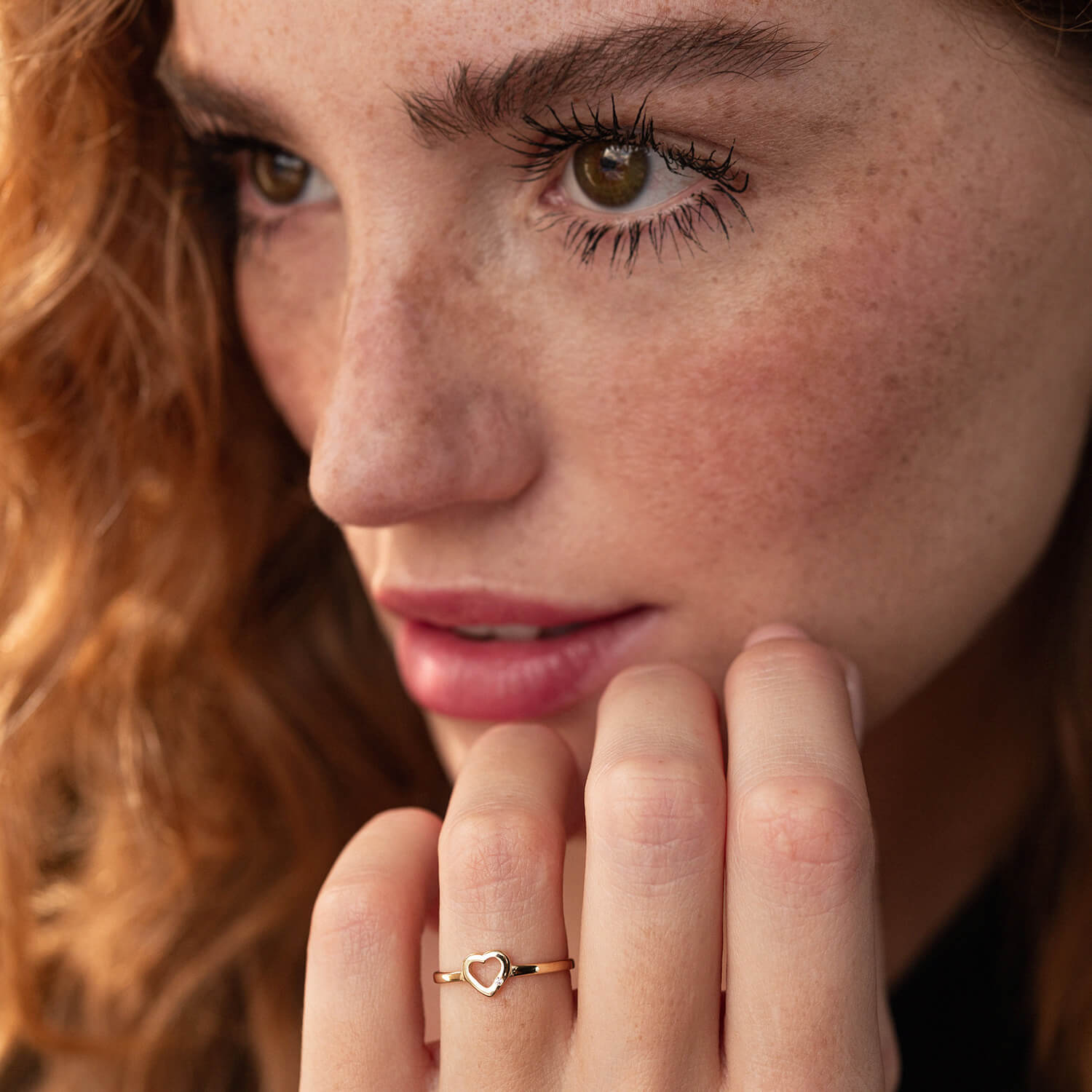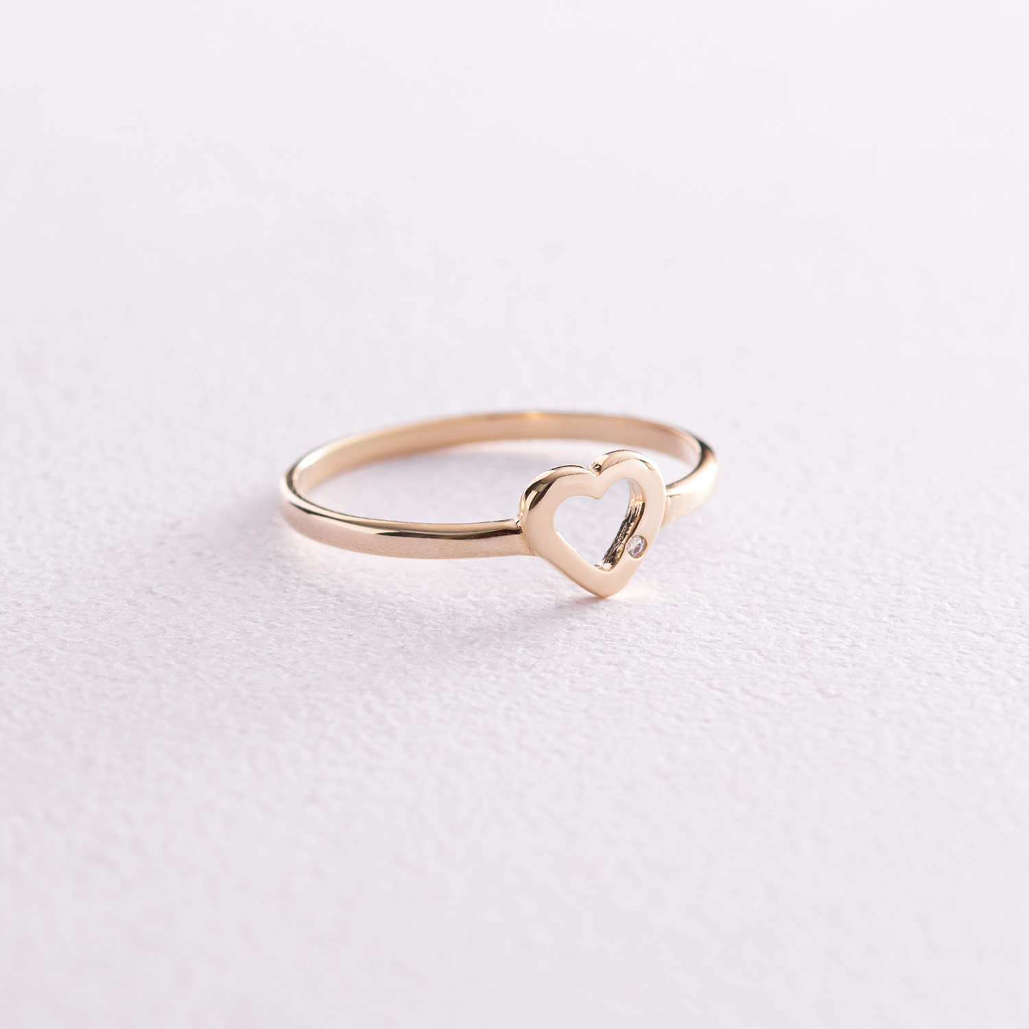 Каблучка "Сердечко з фіанітом" в жовтому золоті к07109