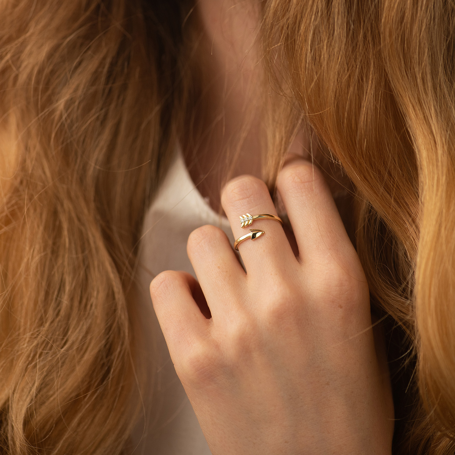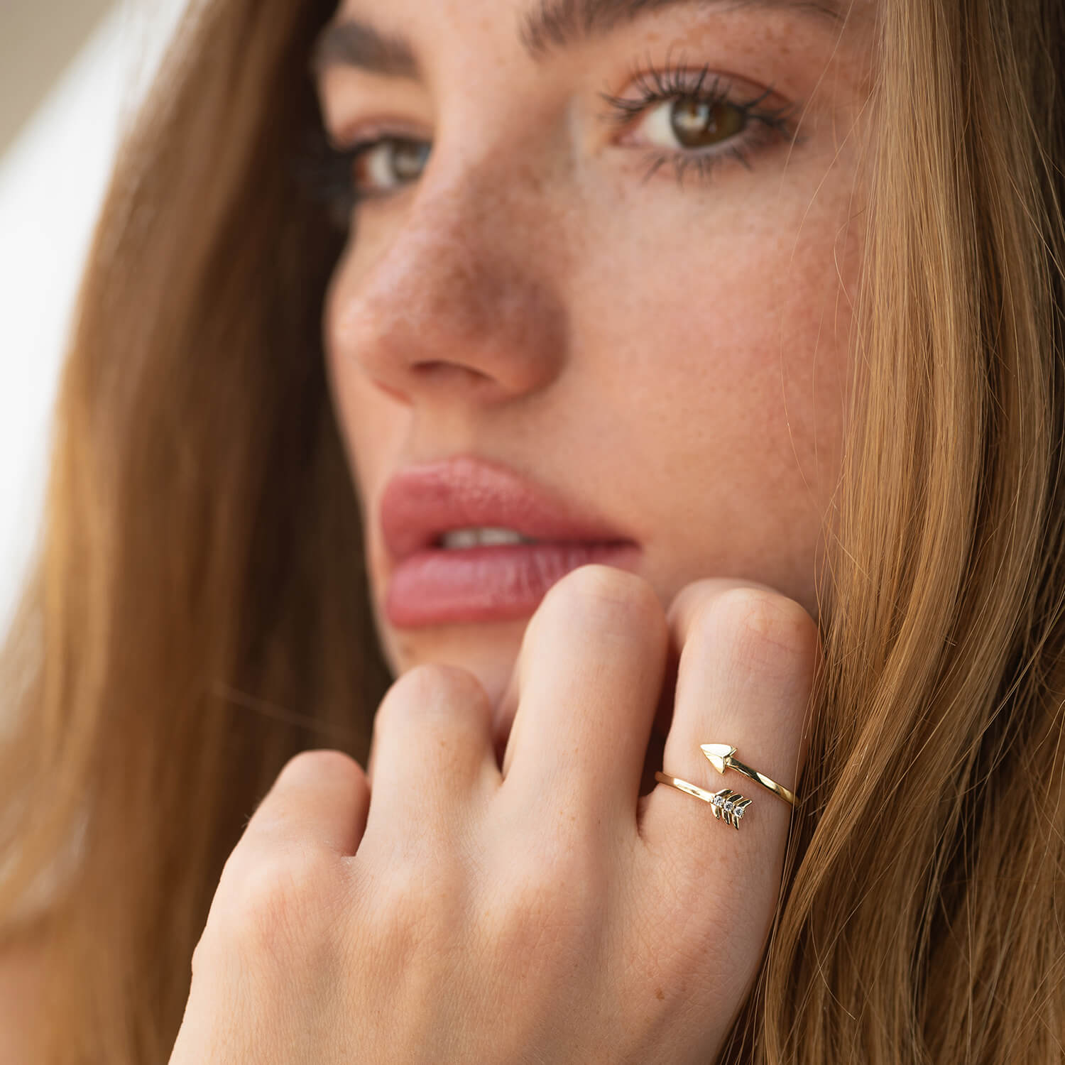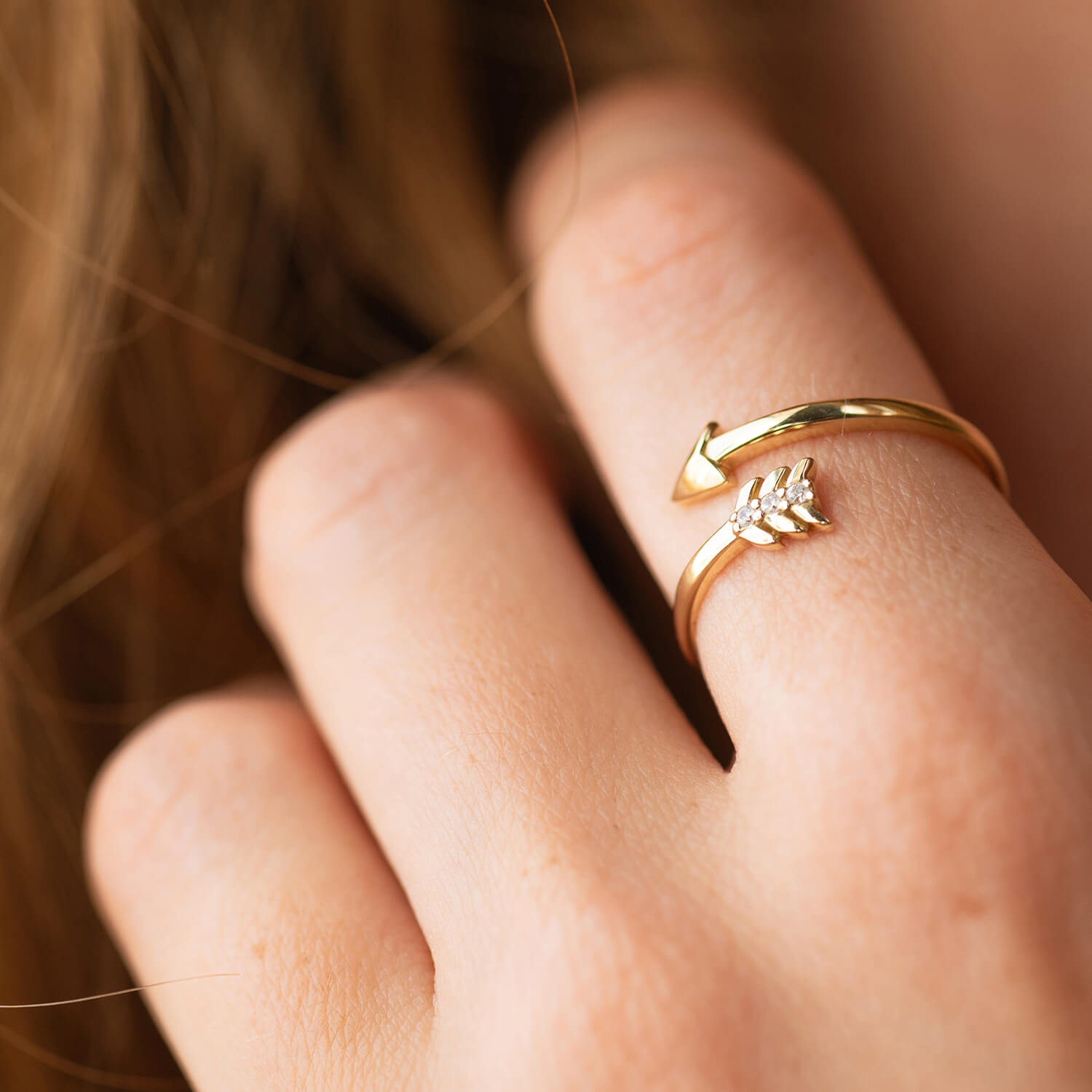 Каблучка "Стріла" у жовтому золоті (фіаніти) к08172