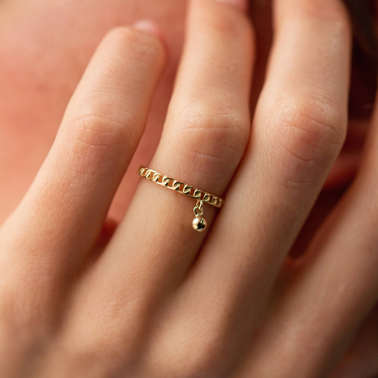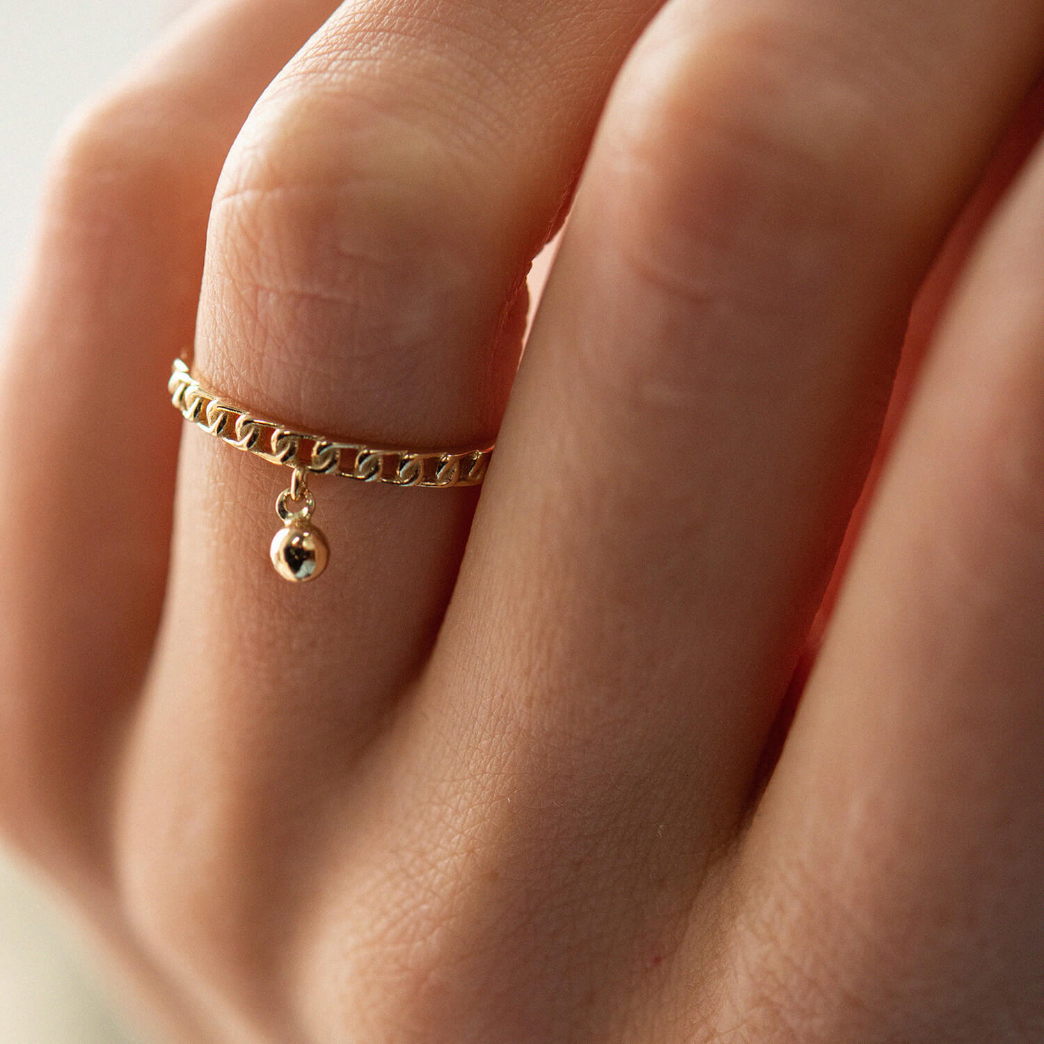 Каблучка "Ланцюжок з кулькою" у жовтому золоті к07185