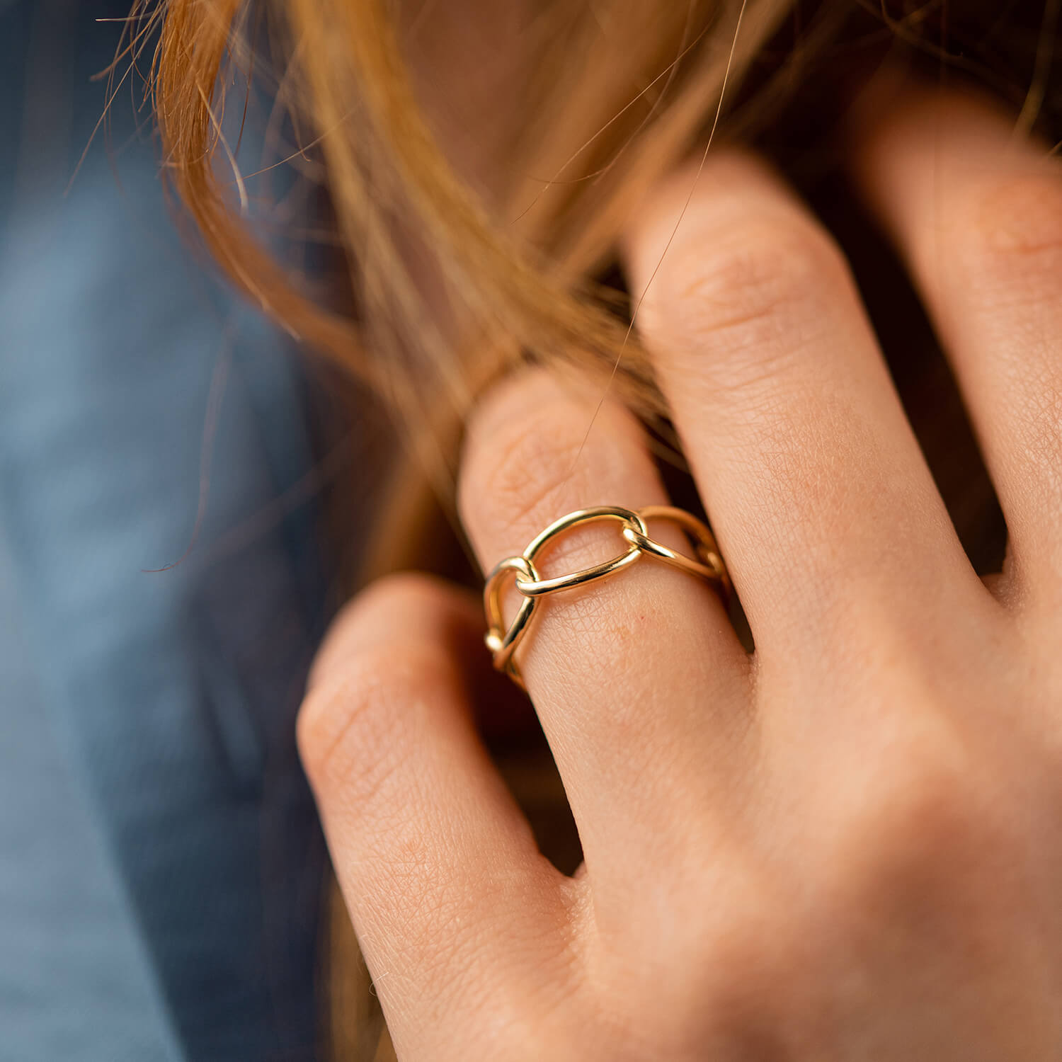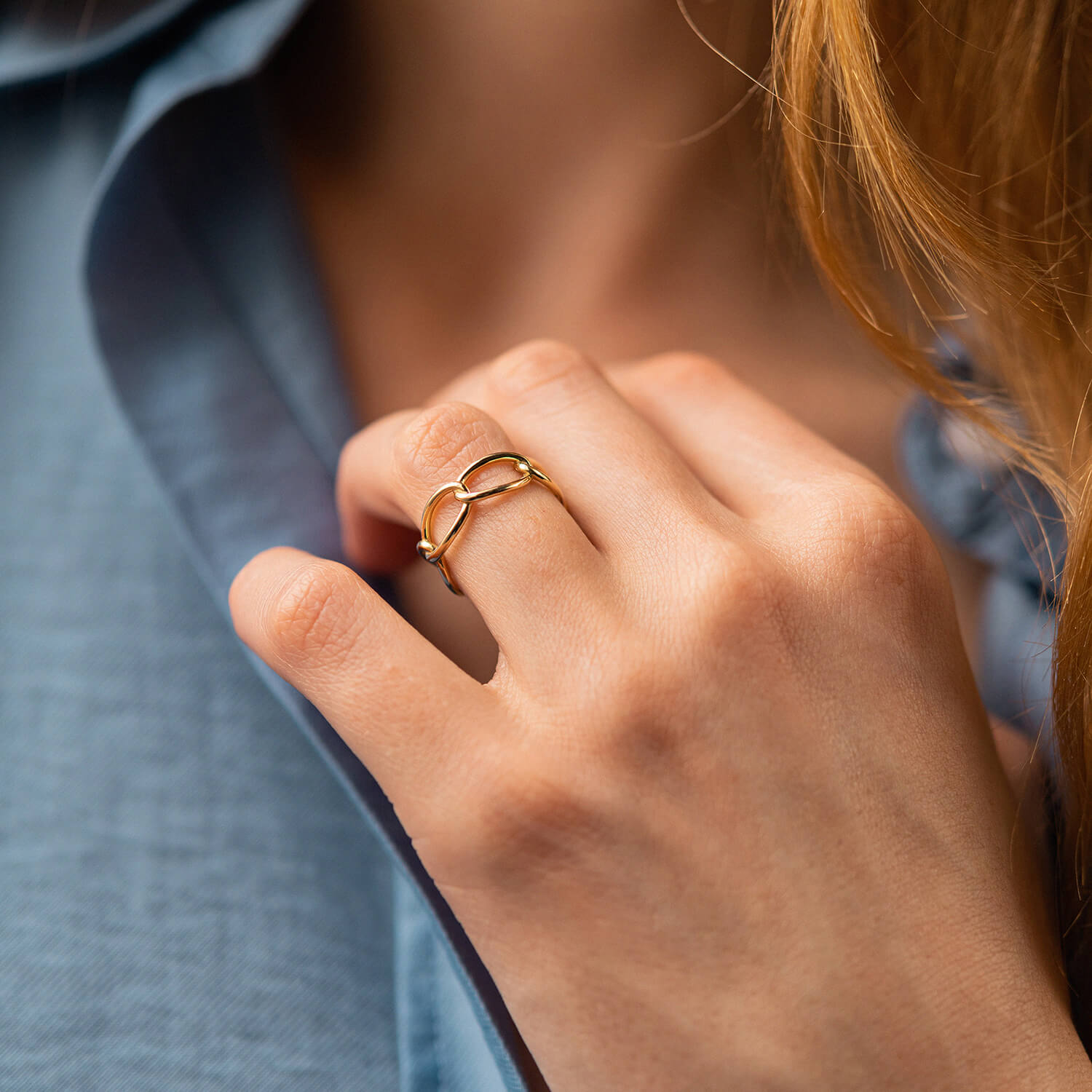 Каблучка "Ланцюжок" у жовтому золоті к07531