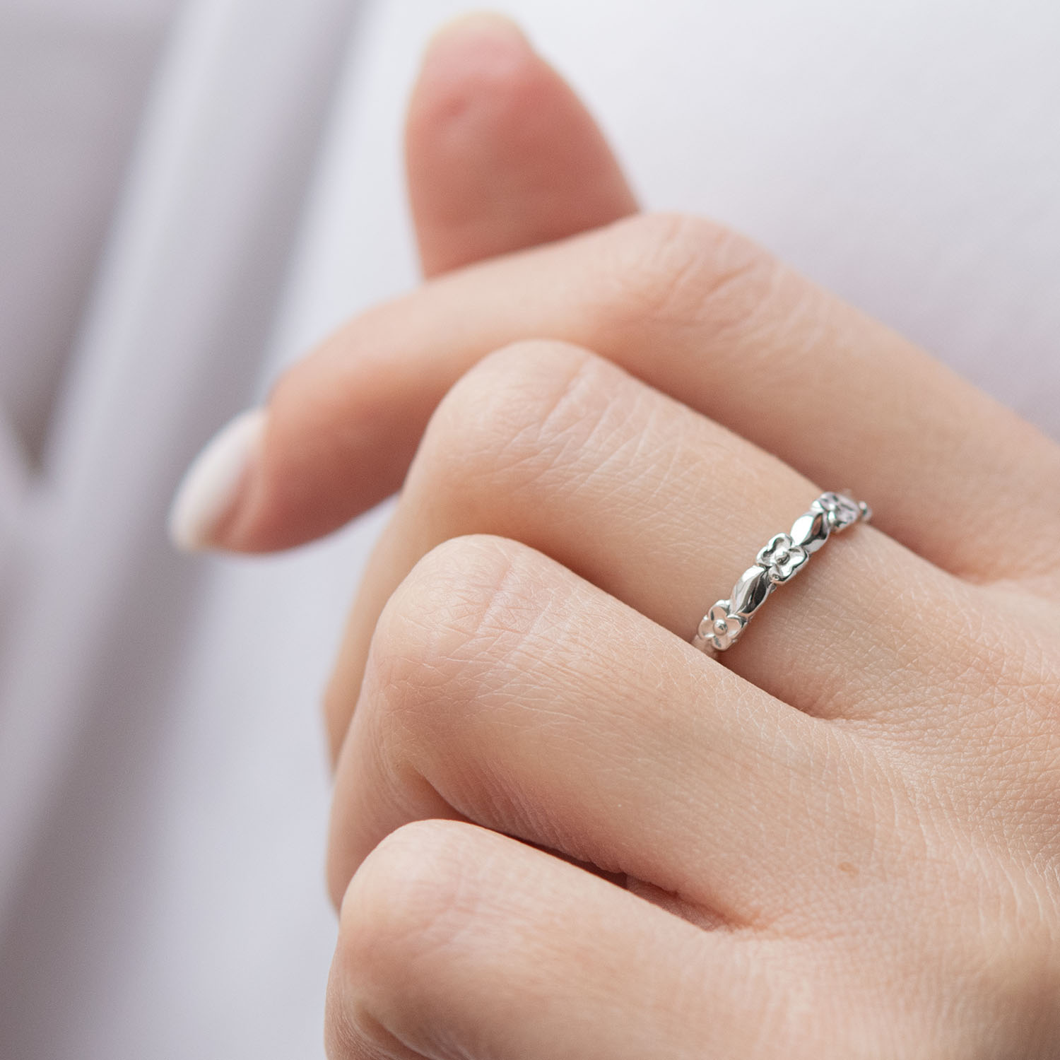 Каблучка "Вінок з квітів" в білому золоті к06729