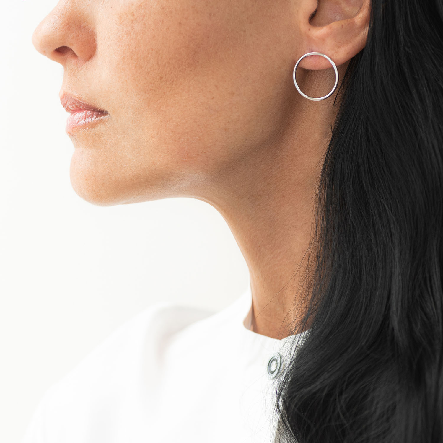 Сережки-пусети "Великий кругообіг" в білому золоті (2.1 см) с07002
