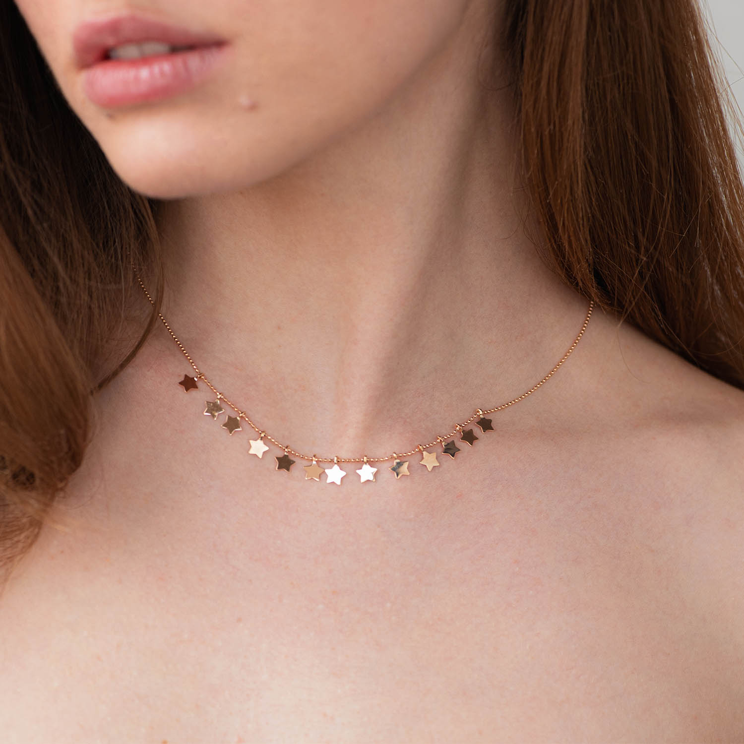 Кулькове кольє "Зірочки" в червоному золоті кол01260