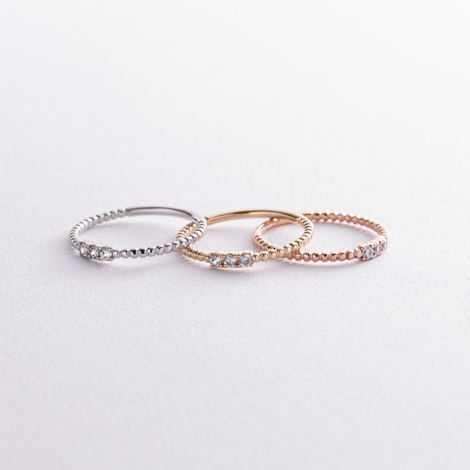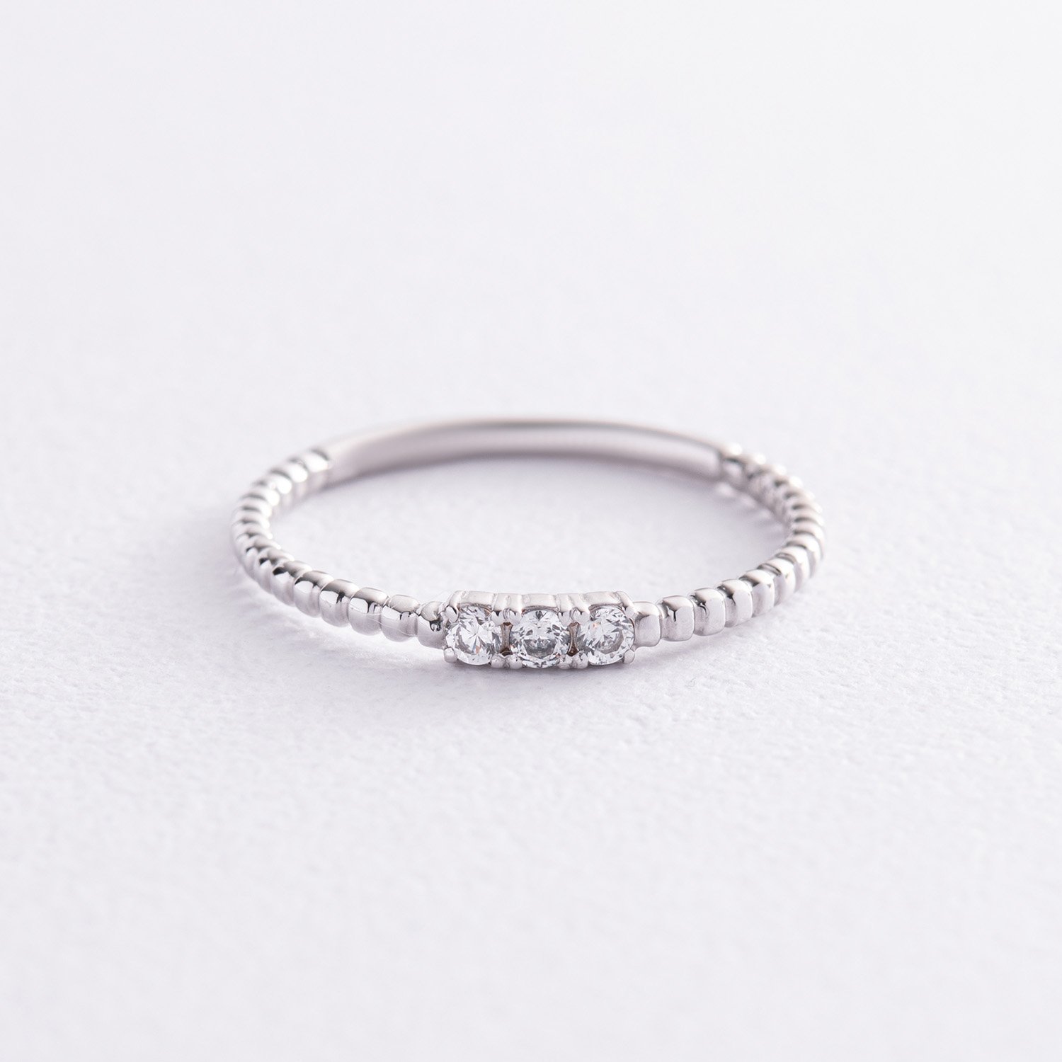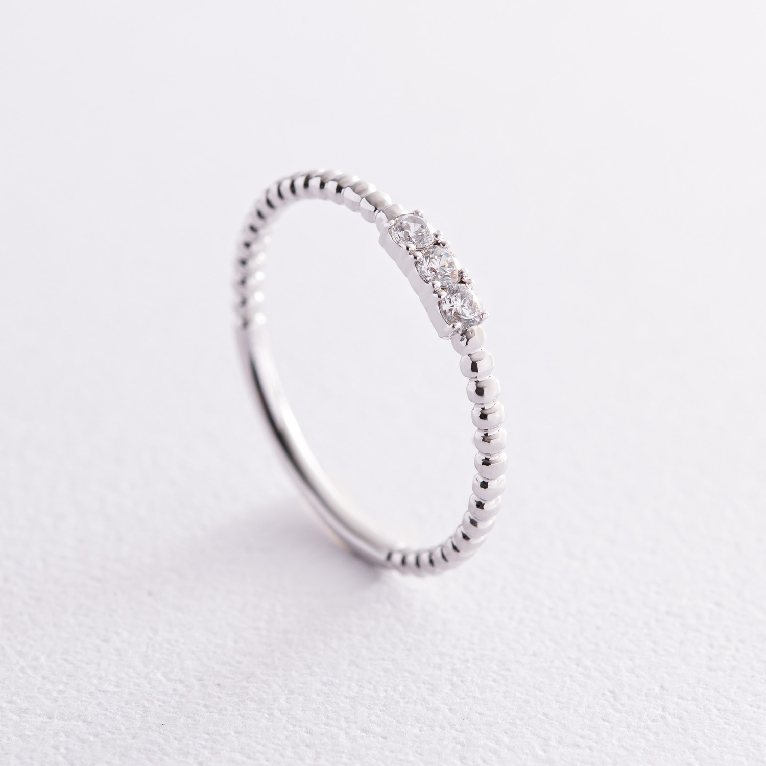 Кулькова каблучка "Мелоді" з фіанітами (біле золото) к07395