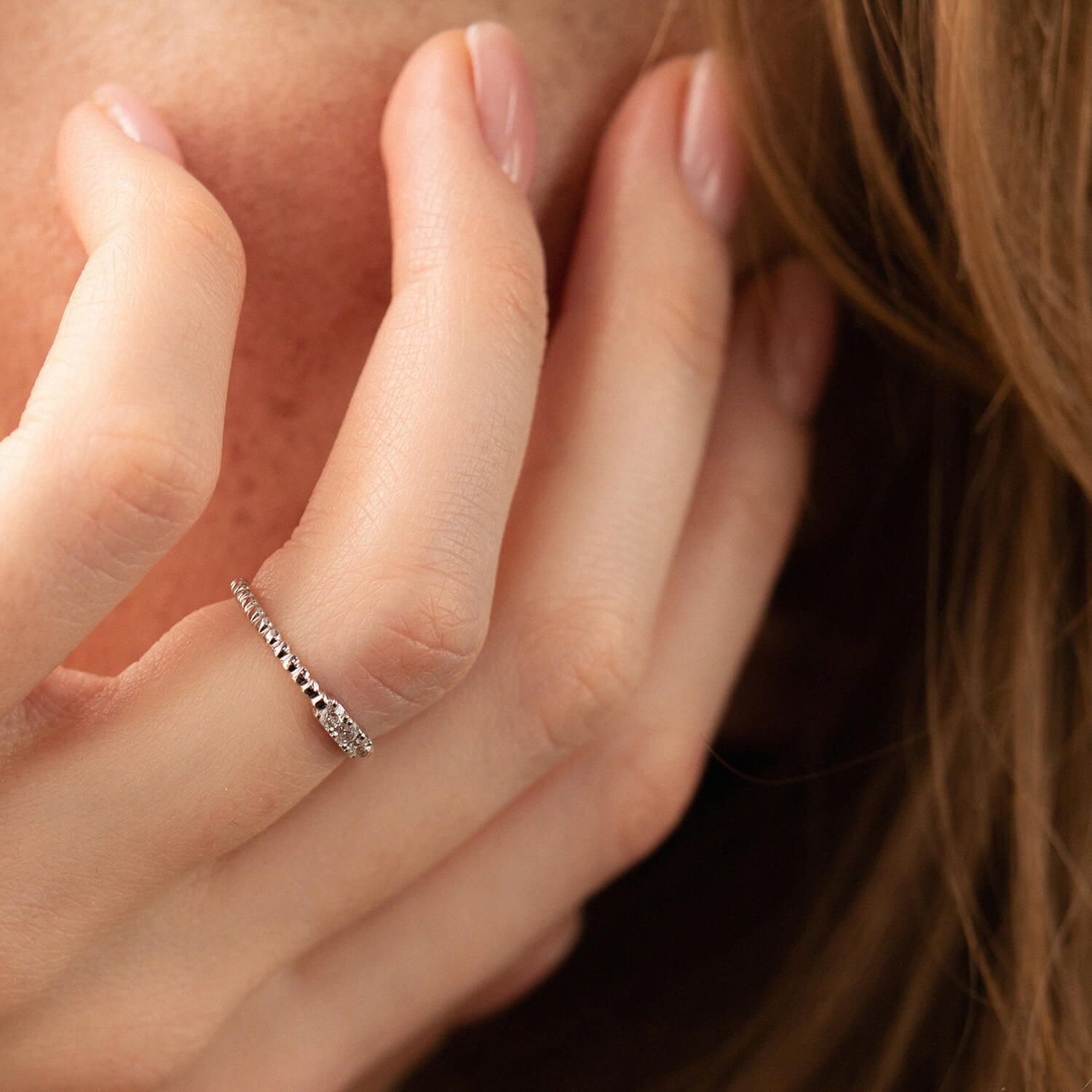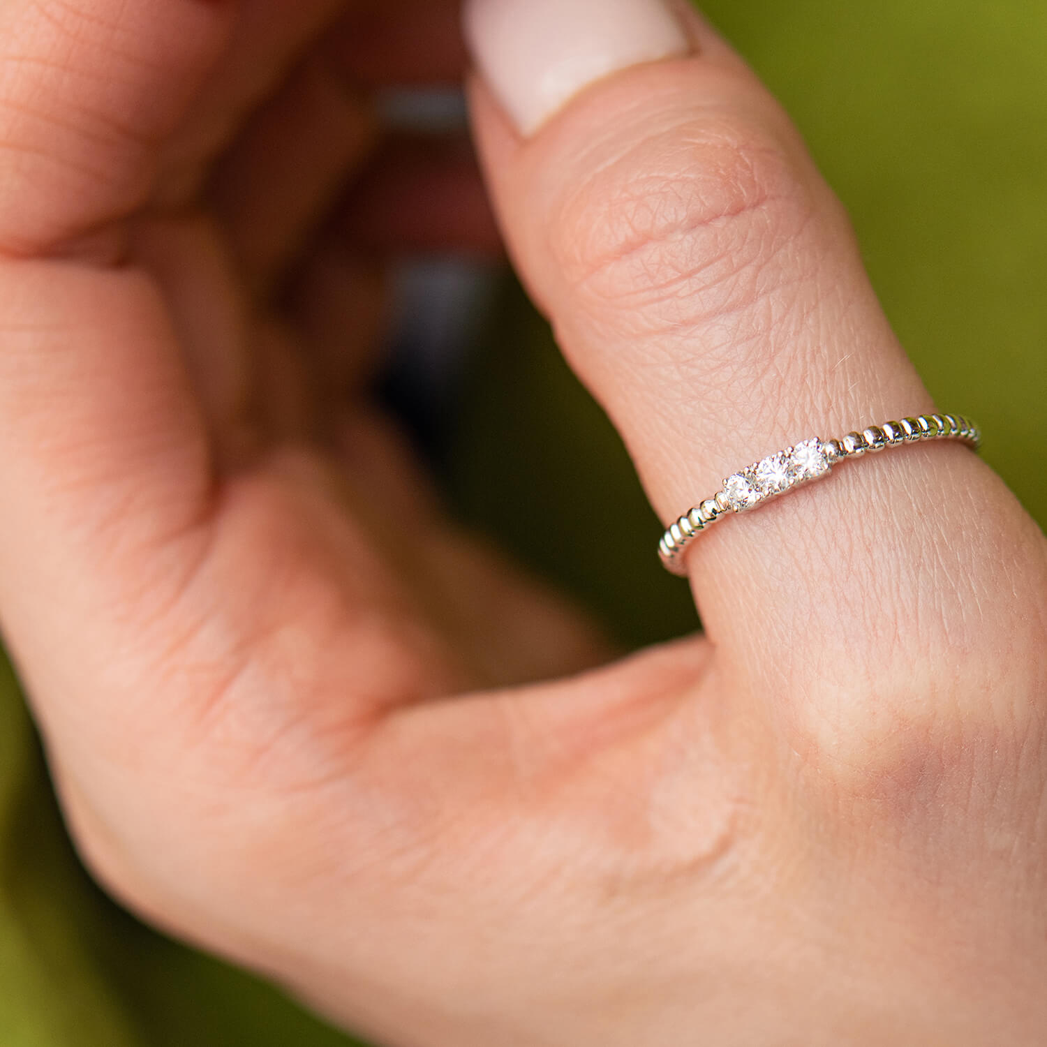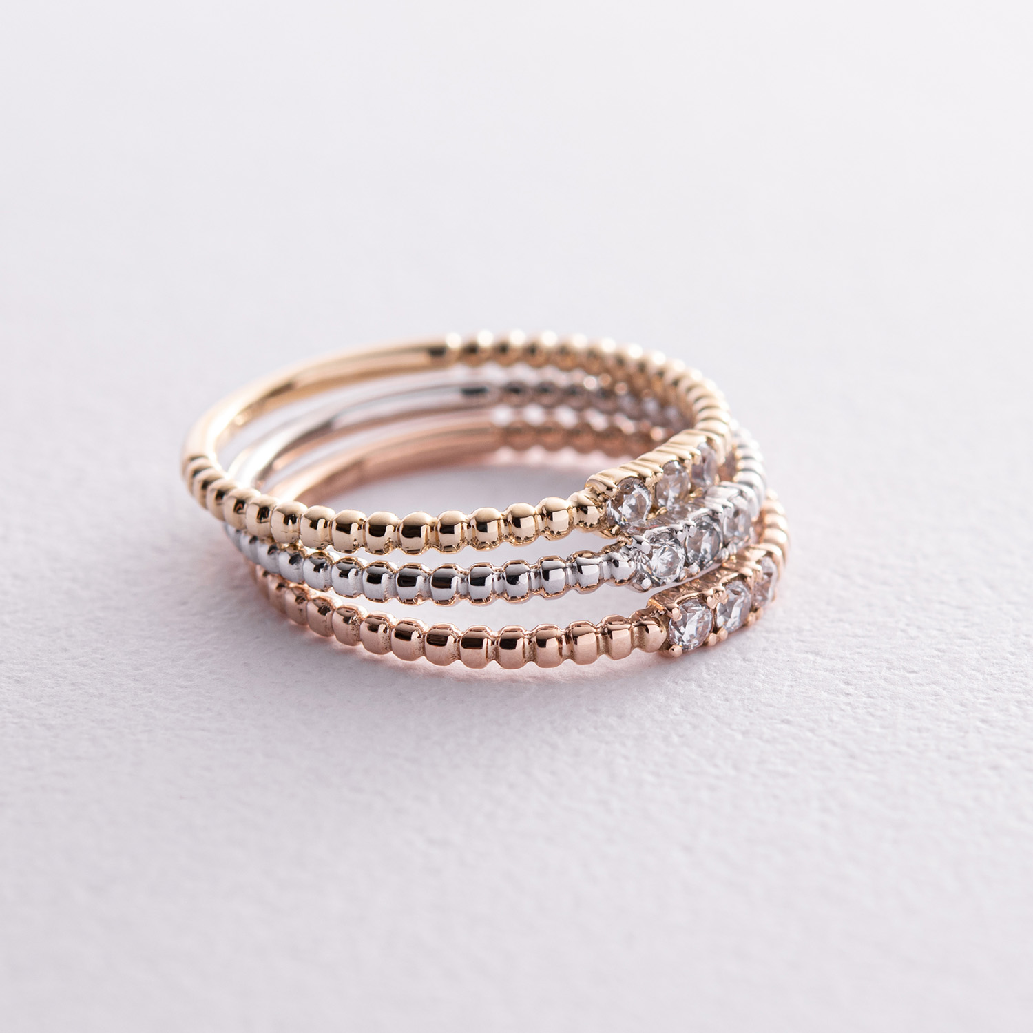 Кулькова каблучка "Мелоді" з фіанітами (біле золото) к07395