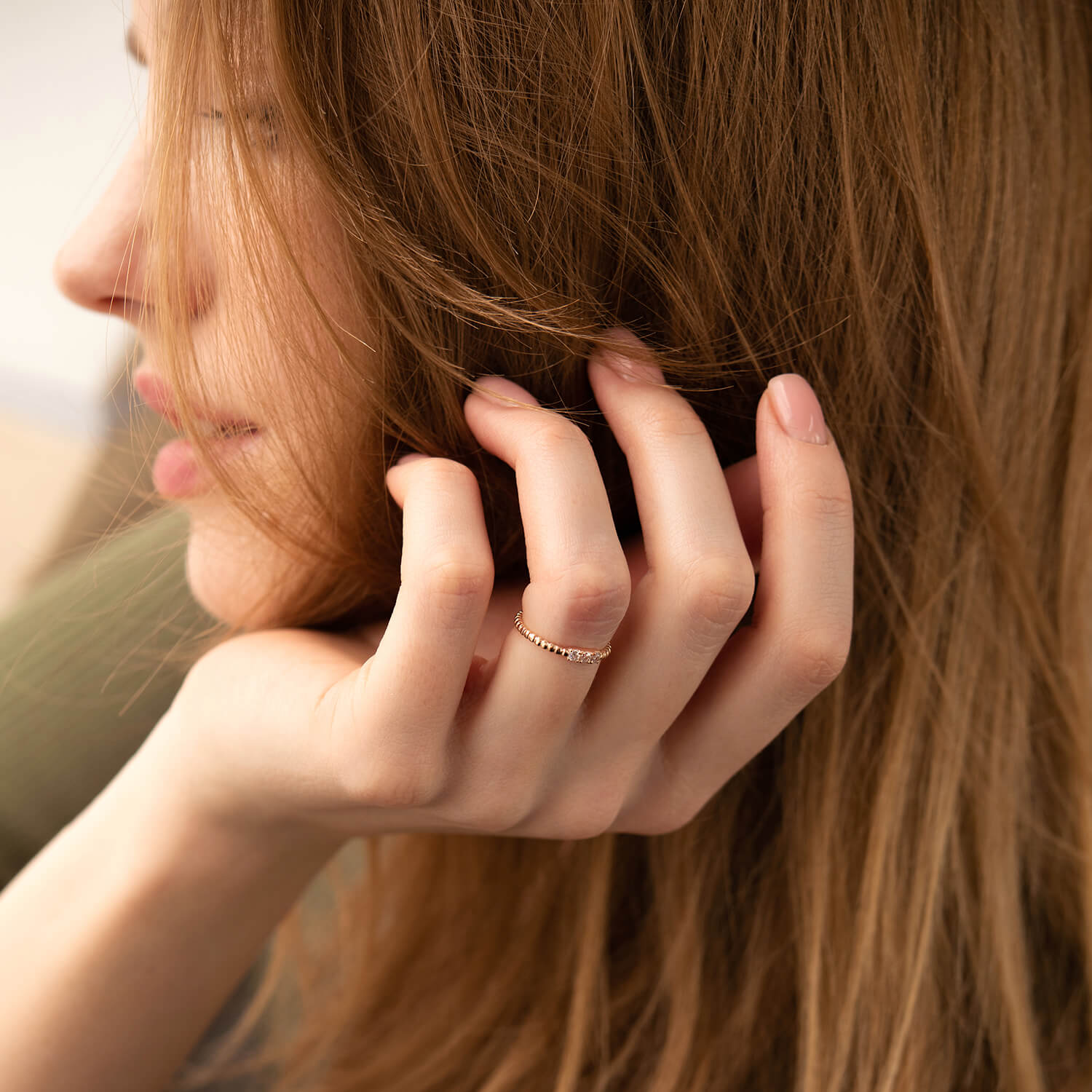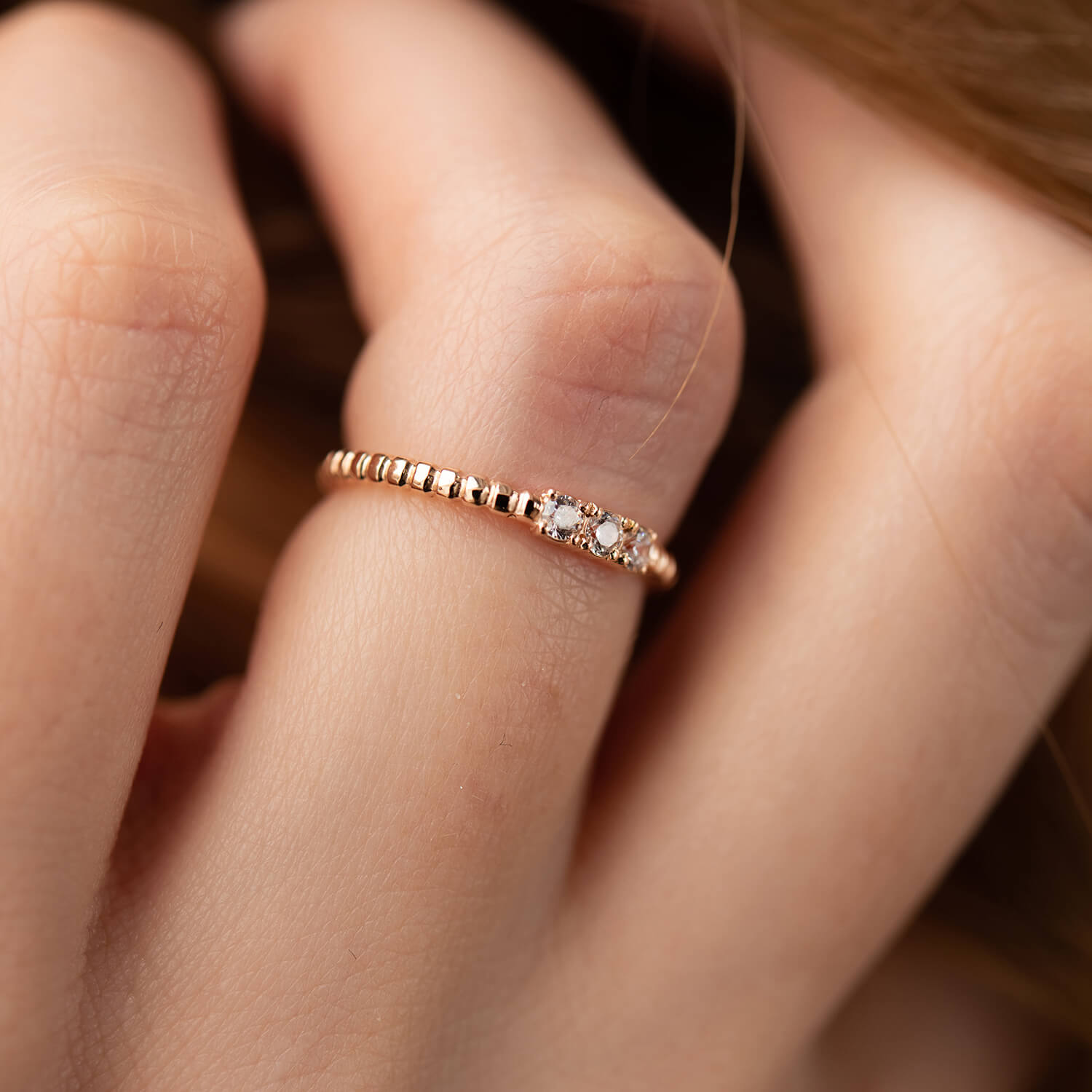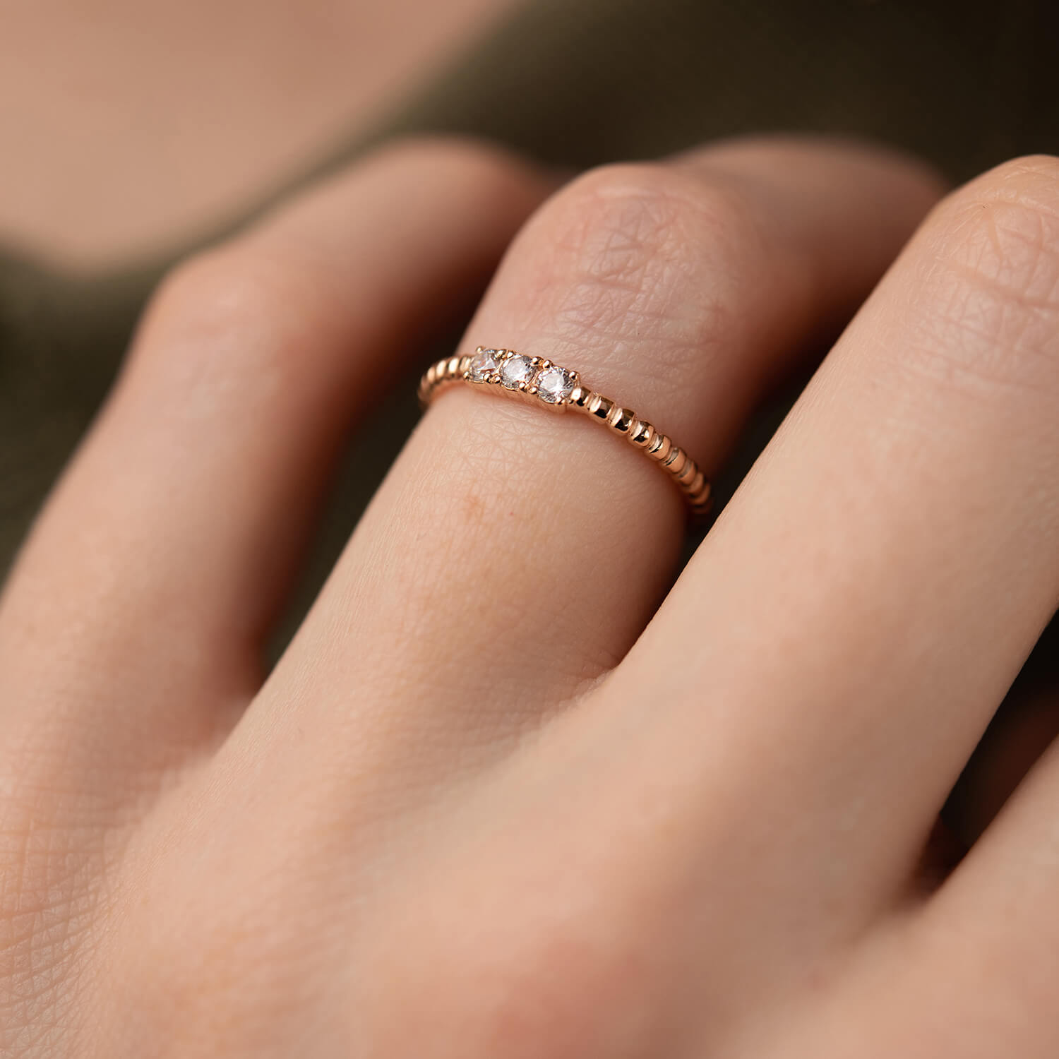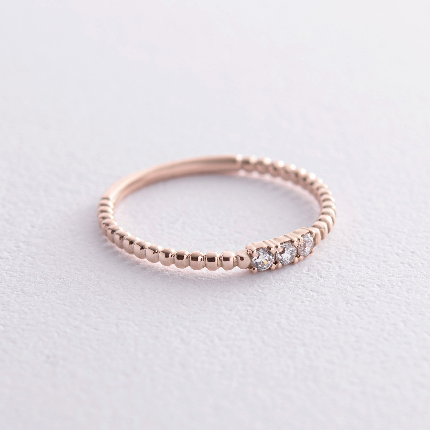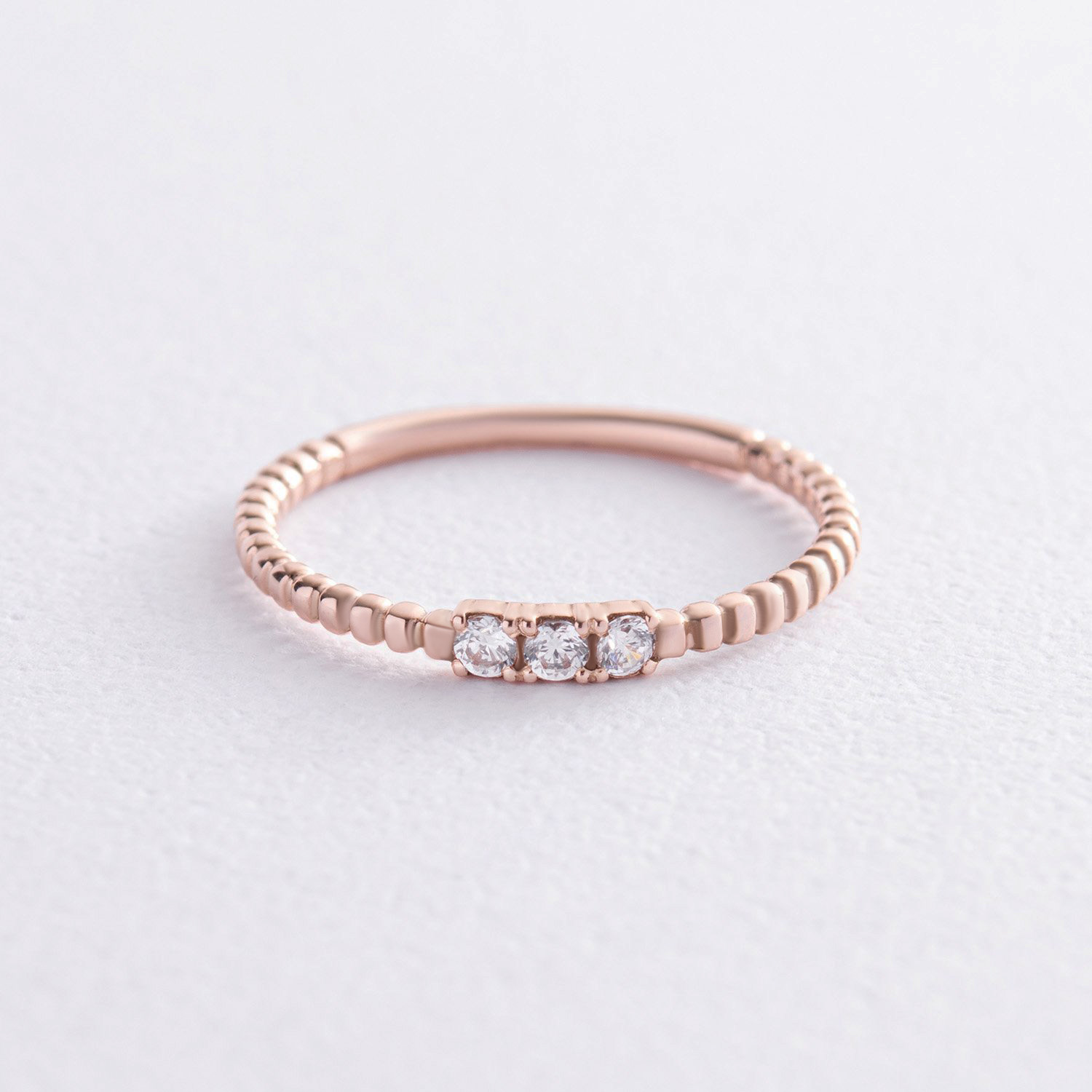 Кулькова каблучка "Мелоді" з фіанітами (червоне золото) к07418
