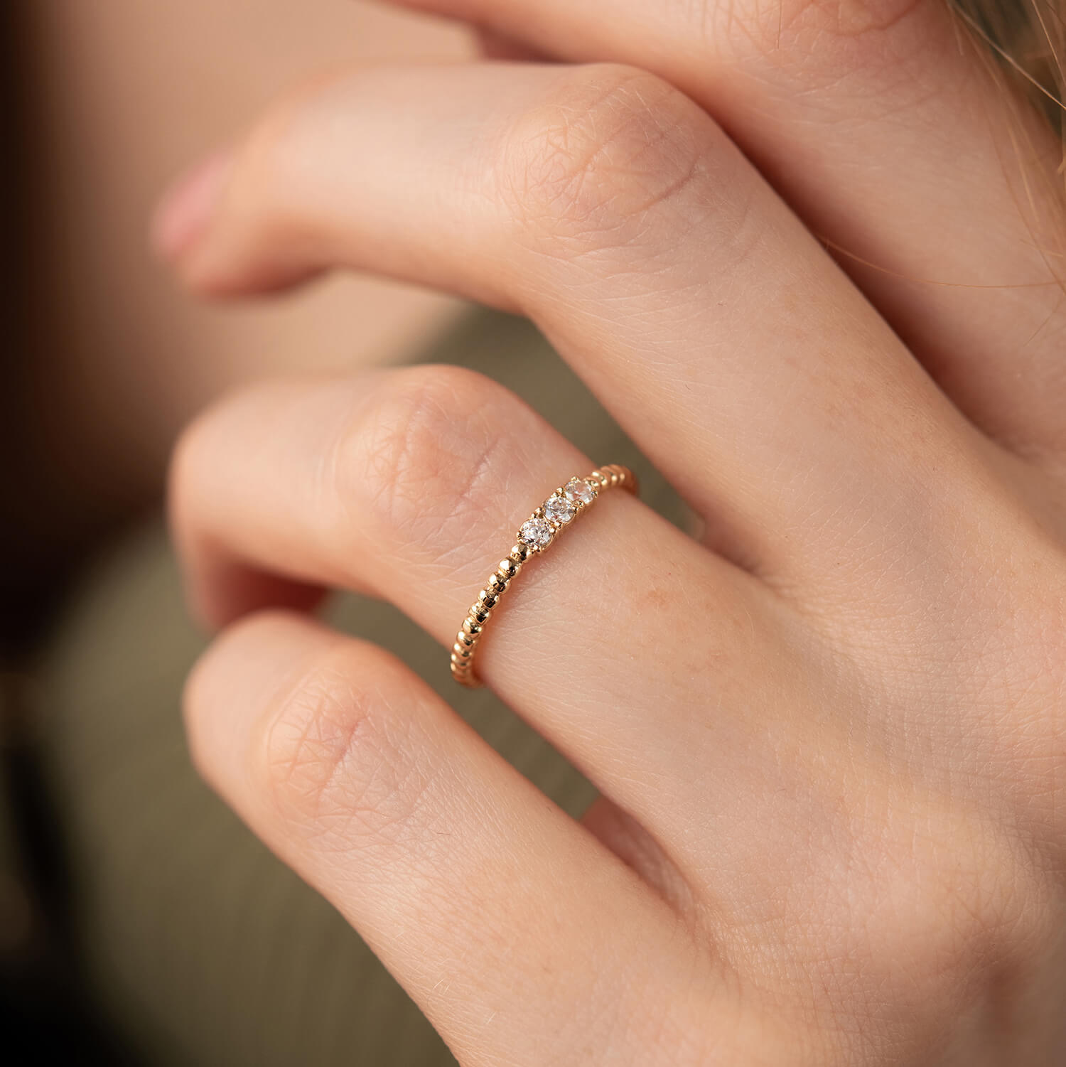 Кулькова каблучка "Мелоді" з фіанітами (жовте золото) к07405