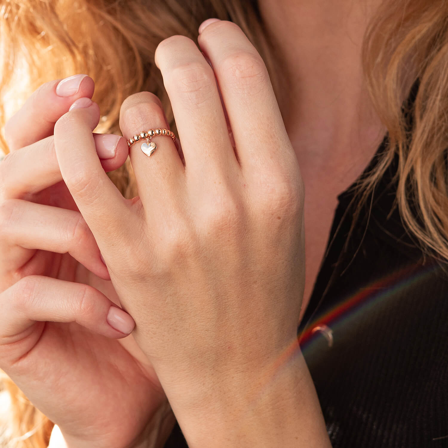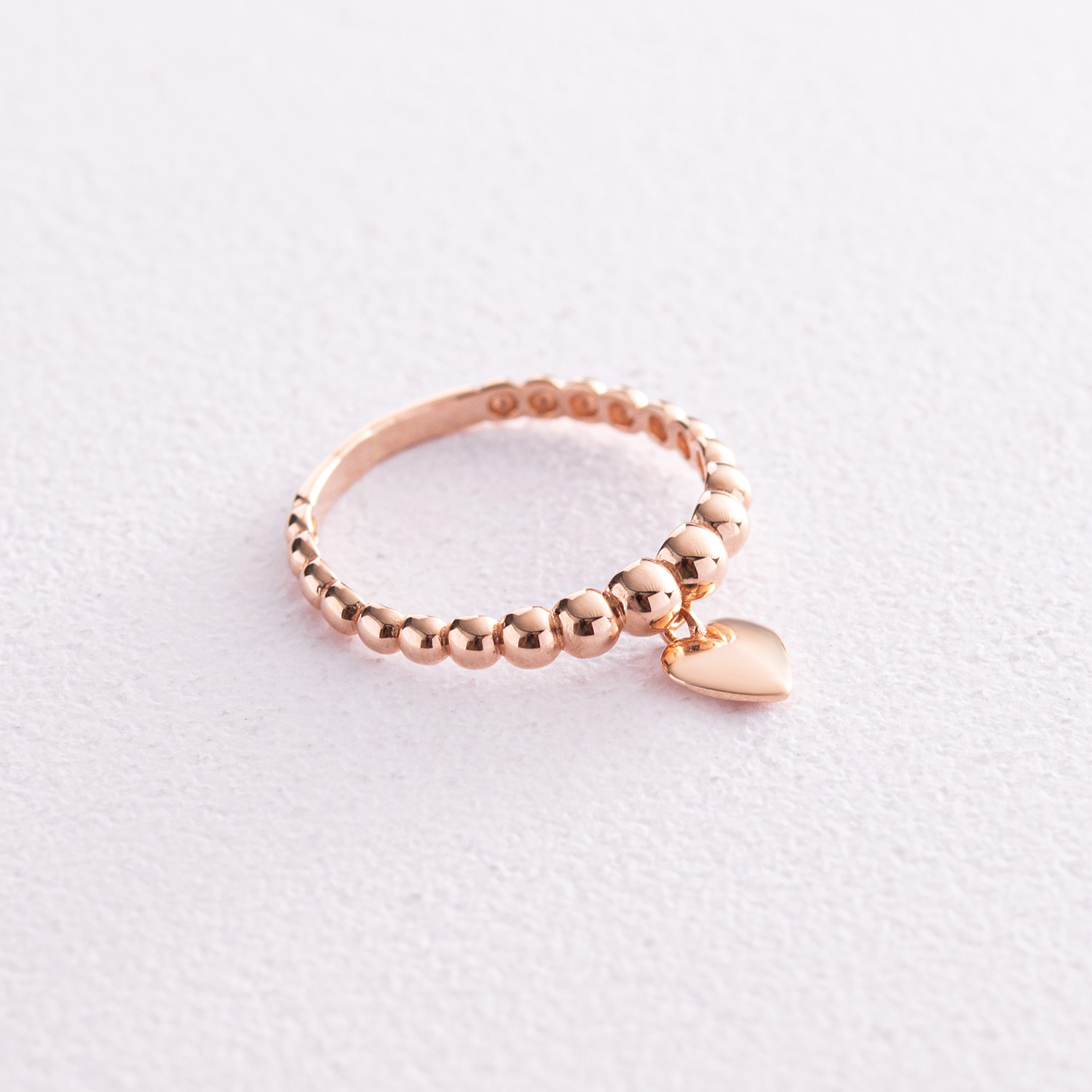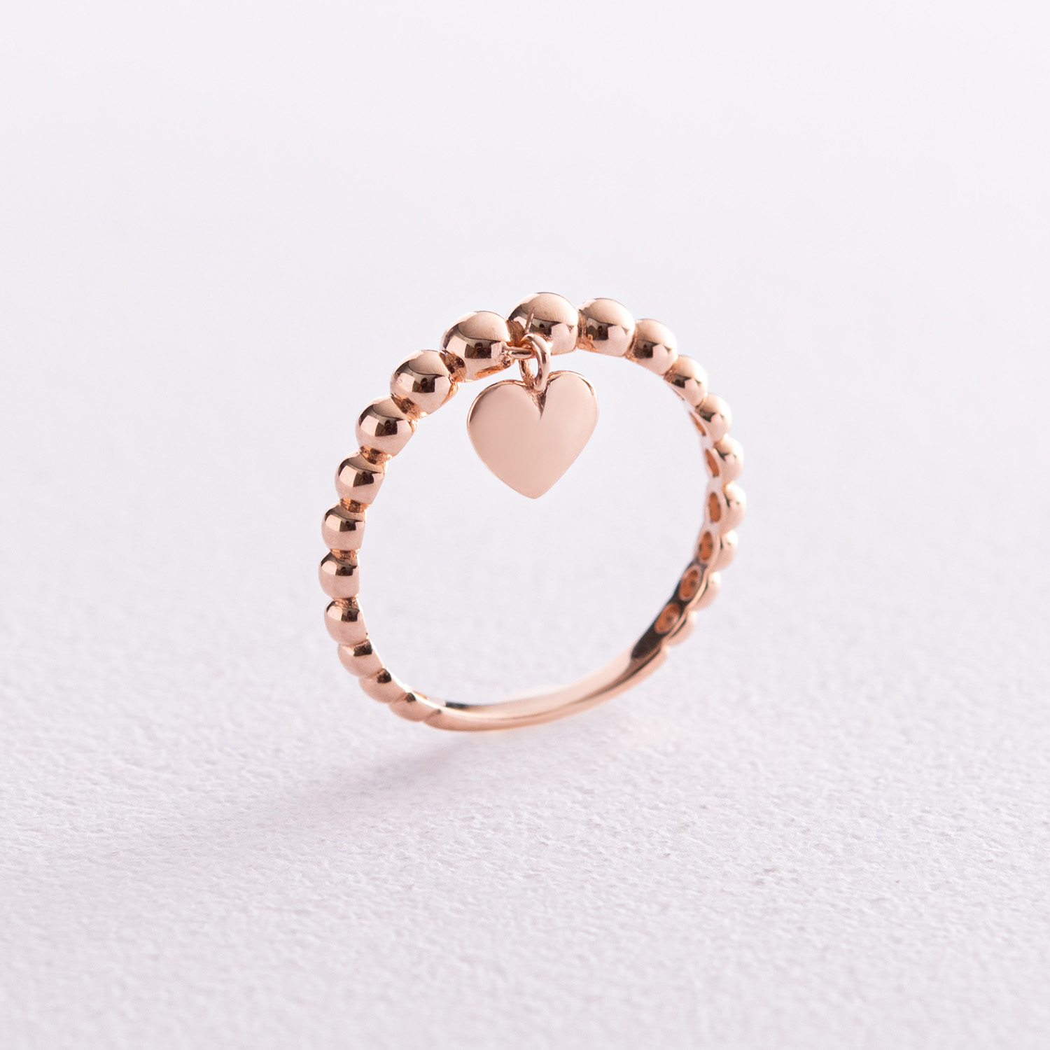 Кулькова каблучка "Сердечко" в червоному золоті к06612