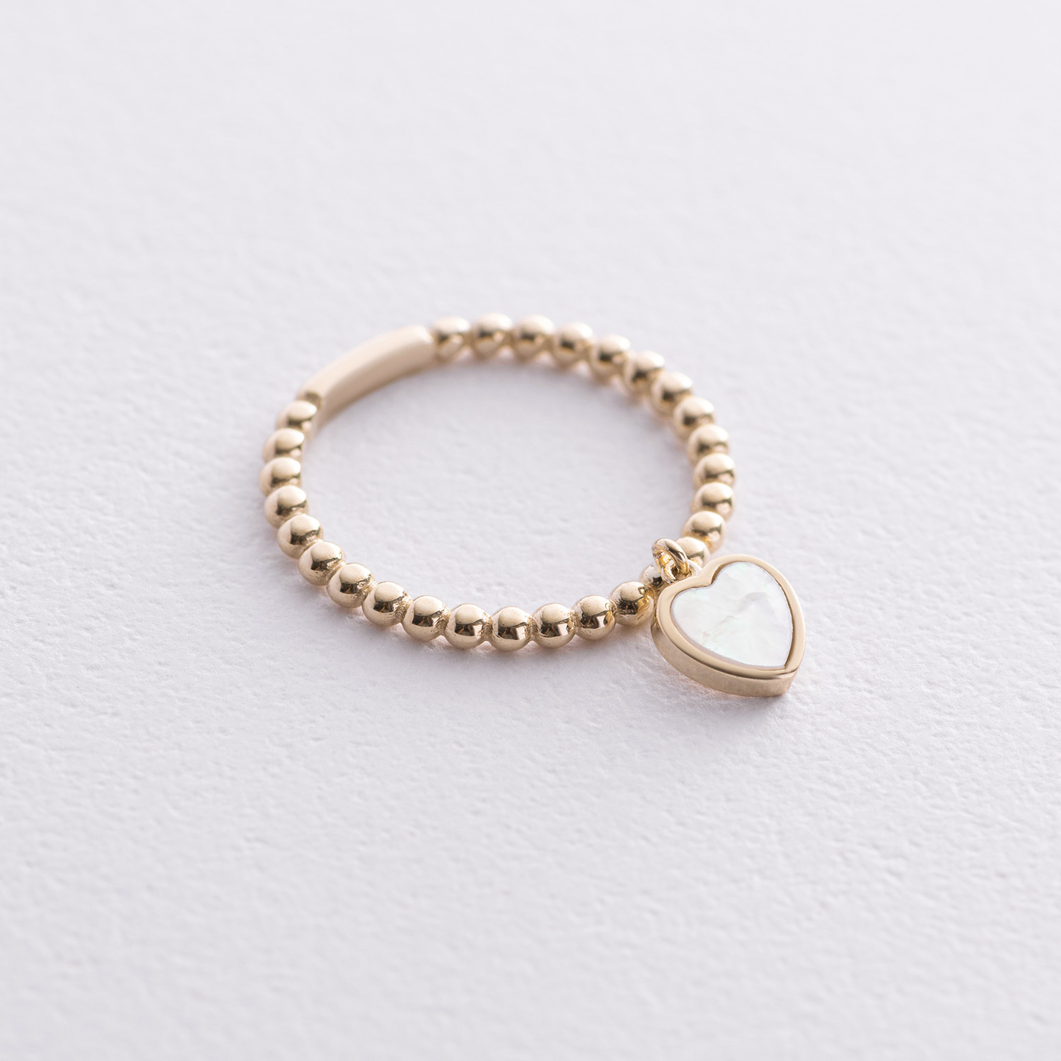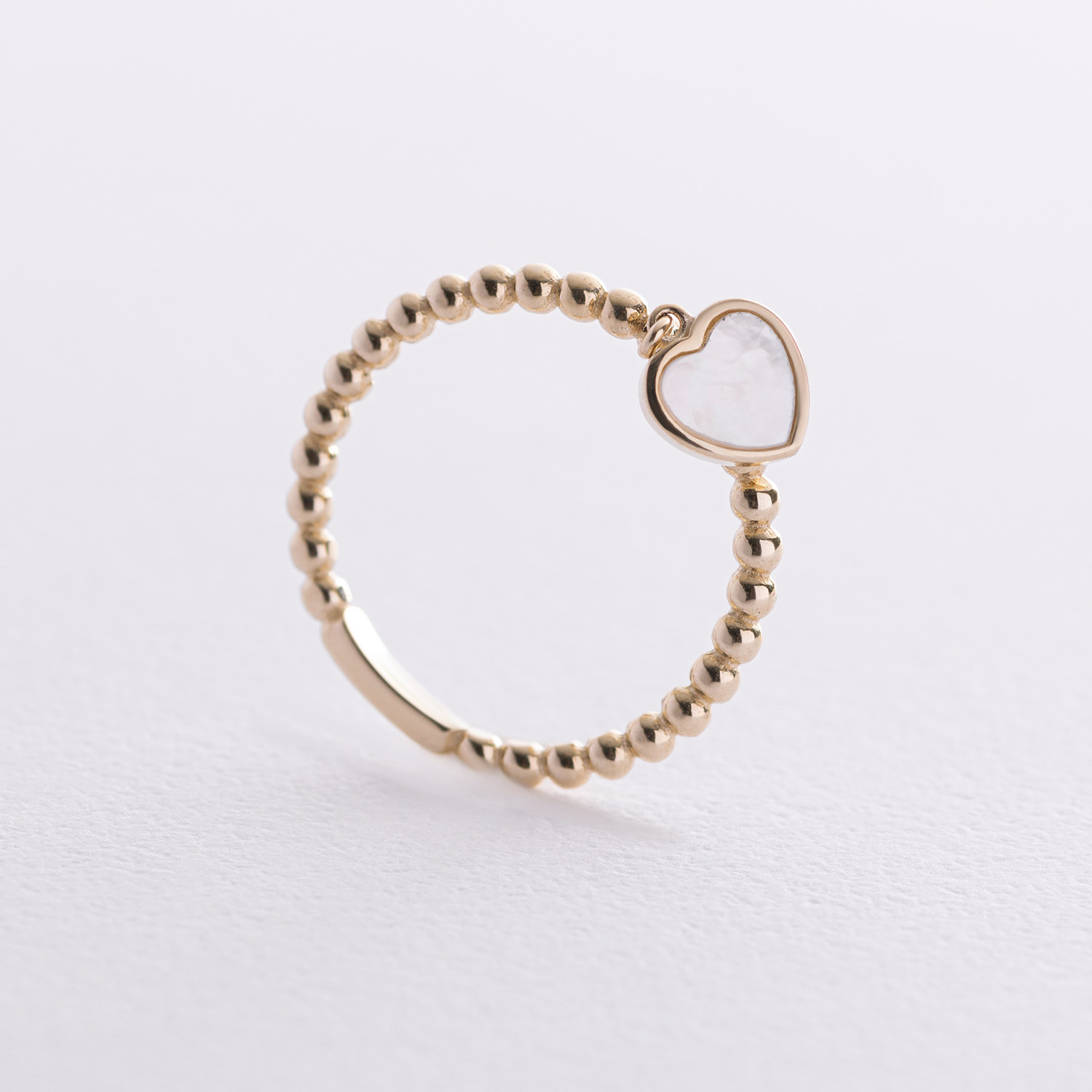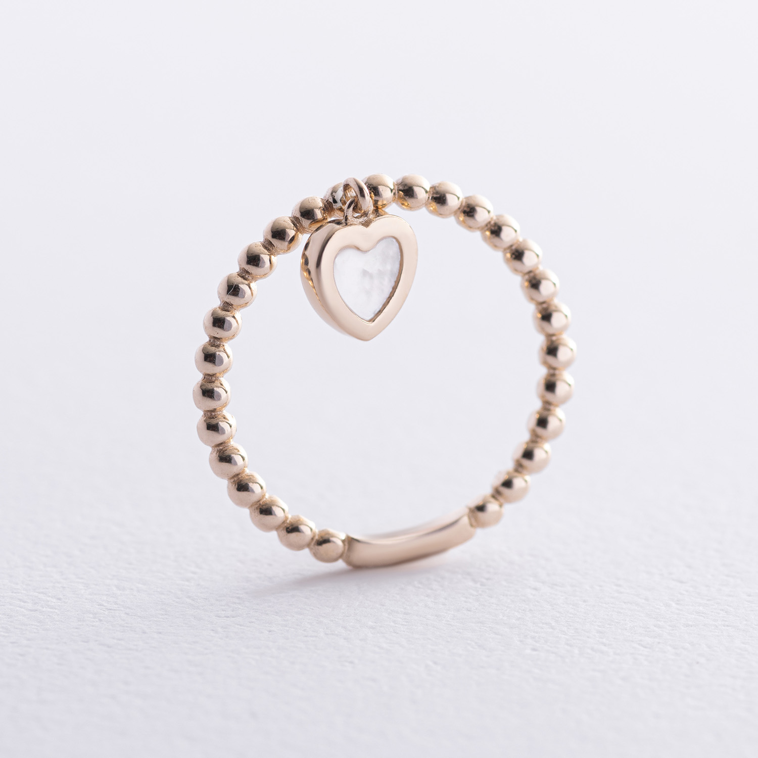 Кулькова золота каблучка "Сердечко" з перламутром к07950