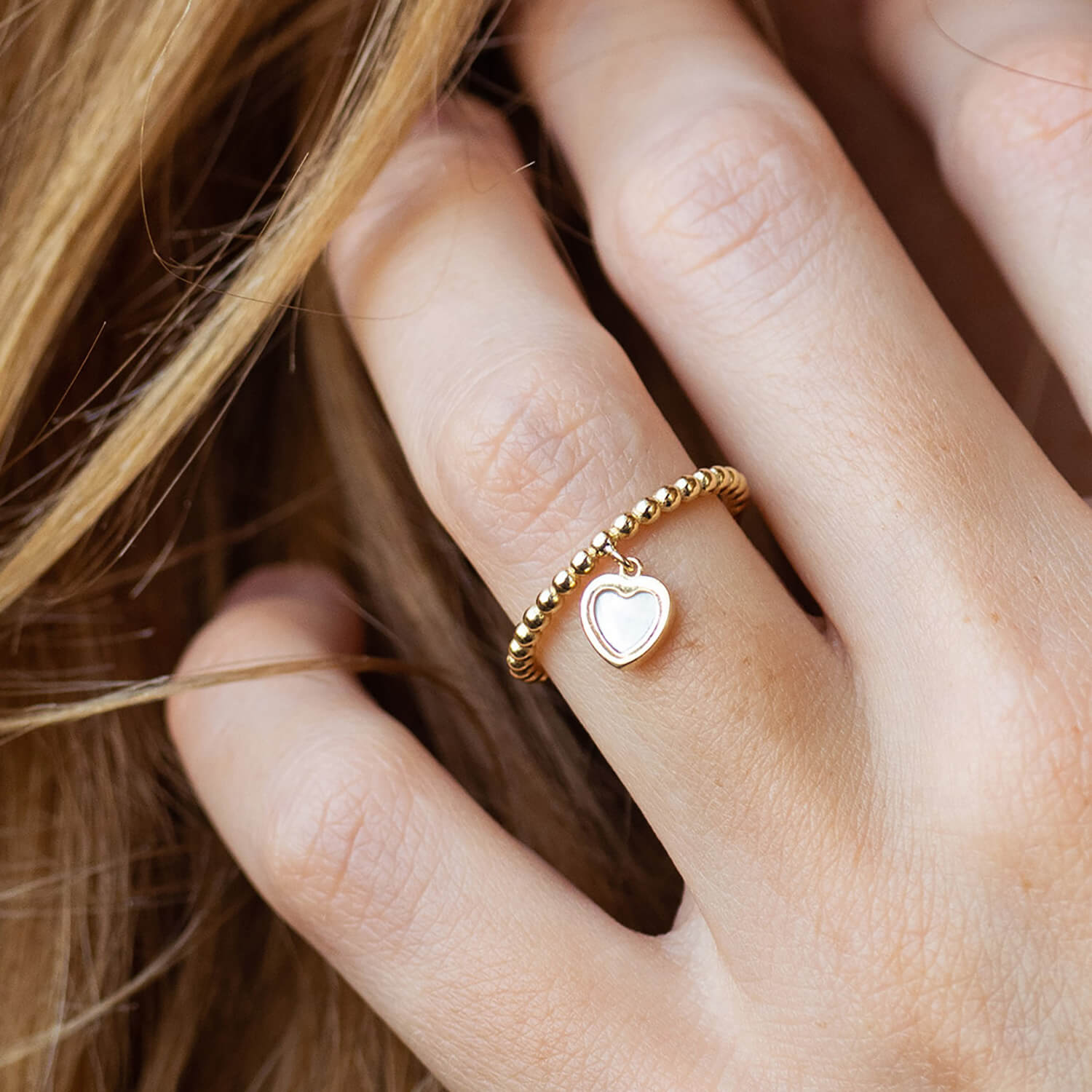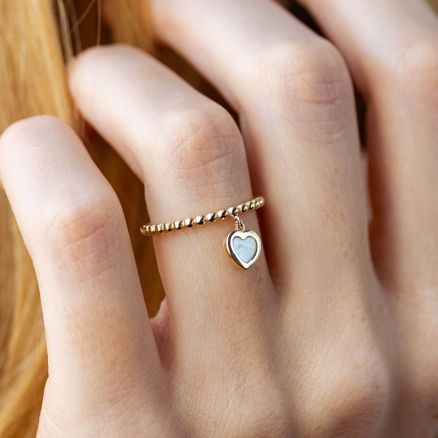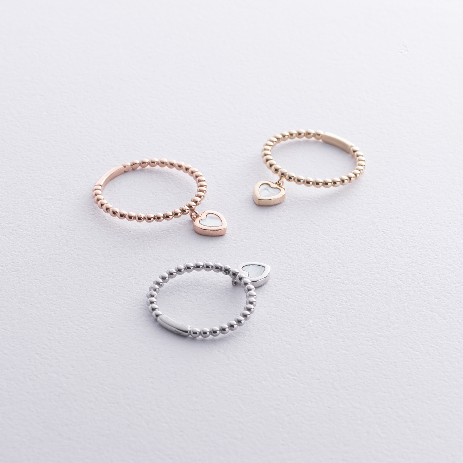 Кулькова золота каблучка "Сердечко" з перламутром к07950