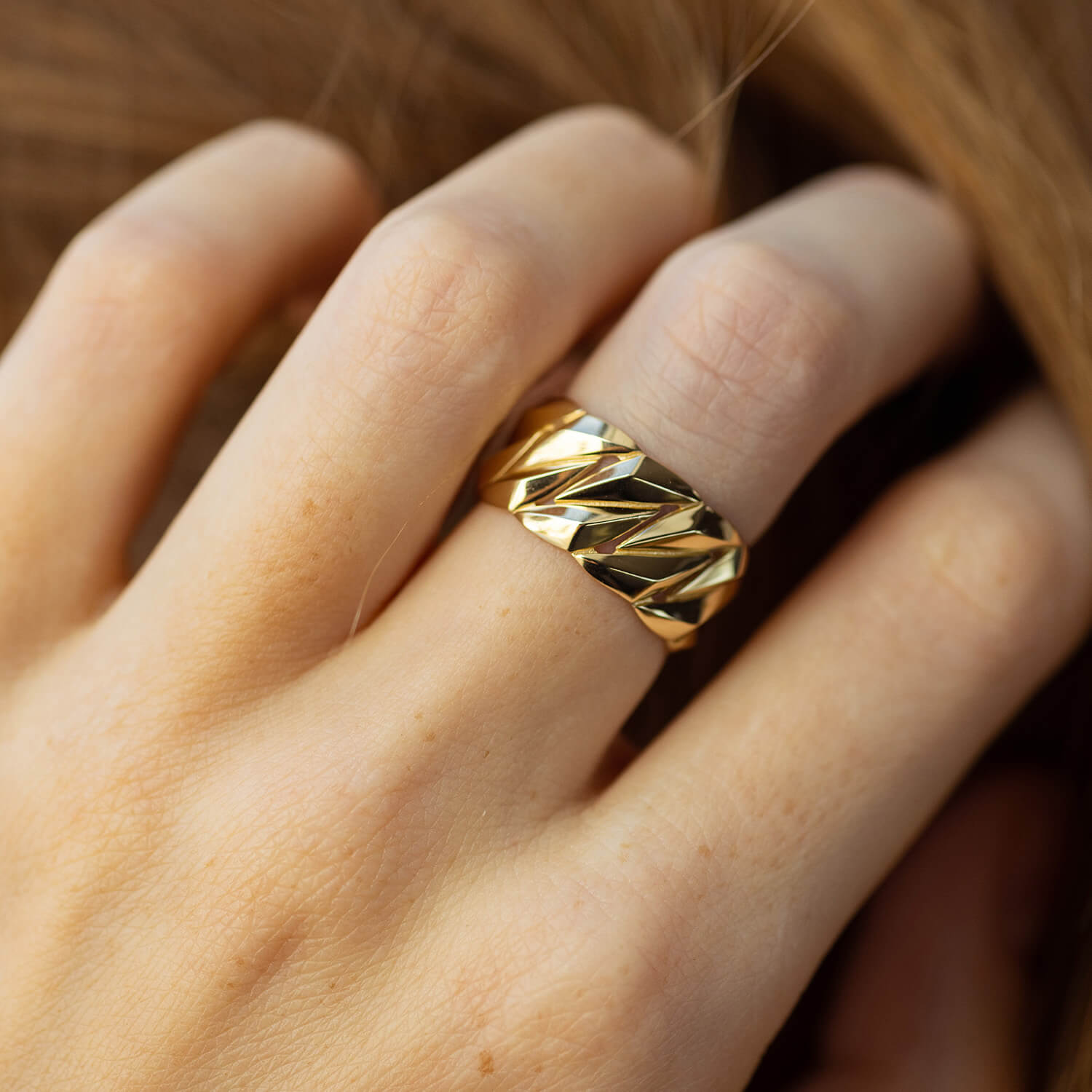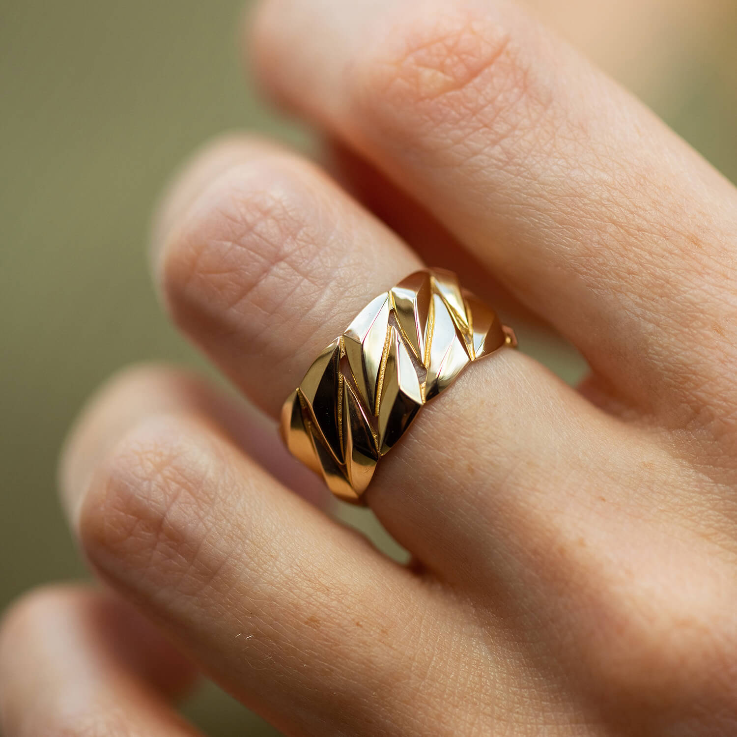 Широка каблучка "Odette" у жовтому золоті к07956