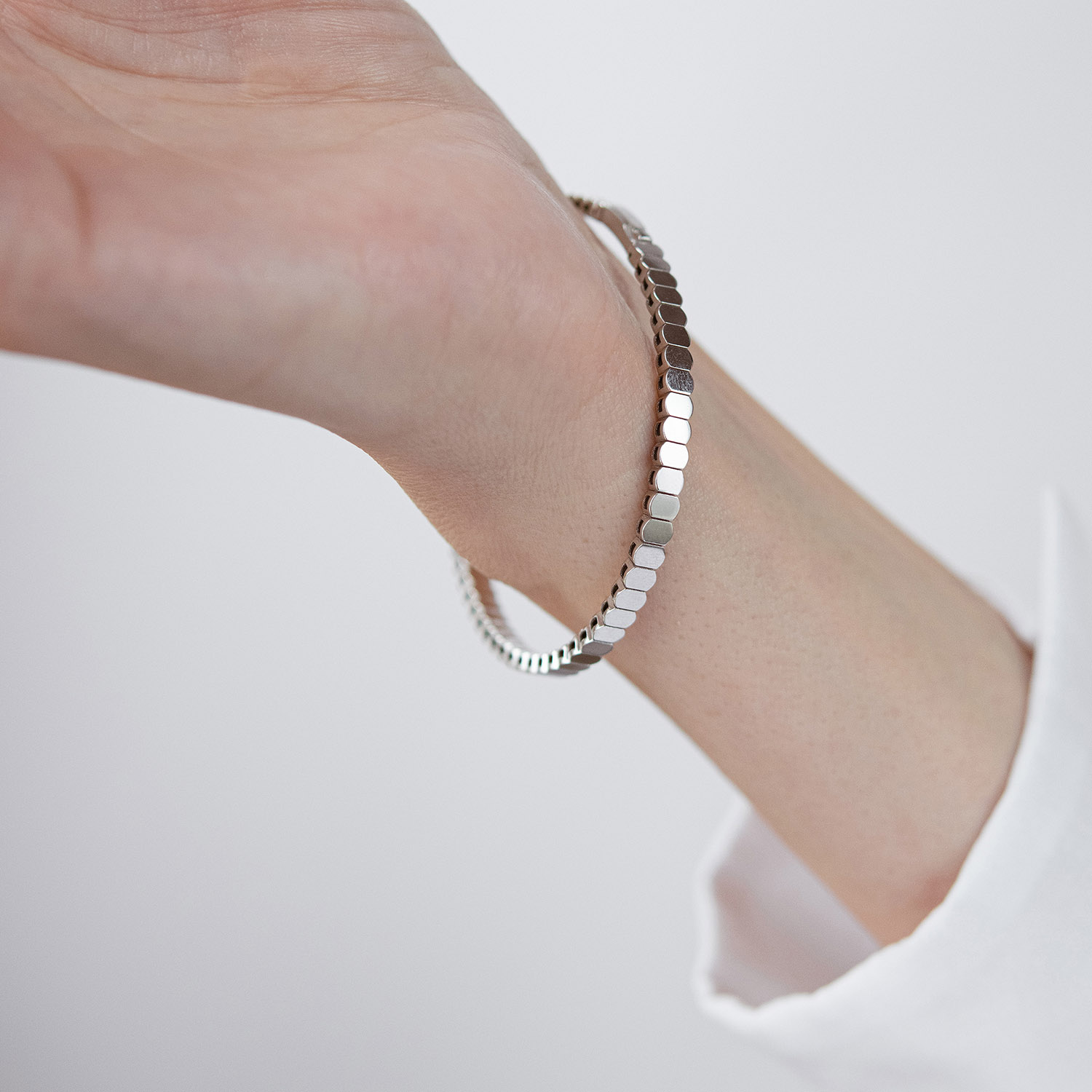 Жорсткий браслет "Kylie" у білому золоті б05826