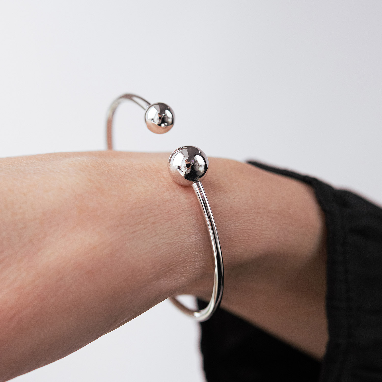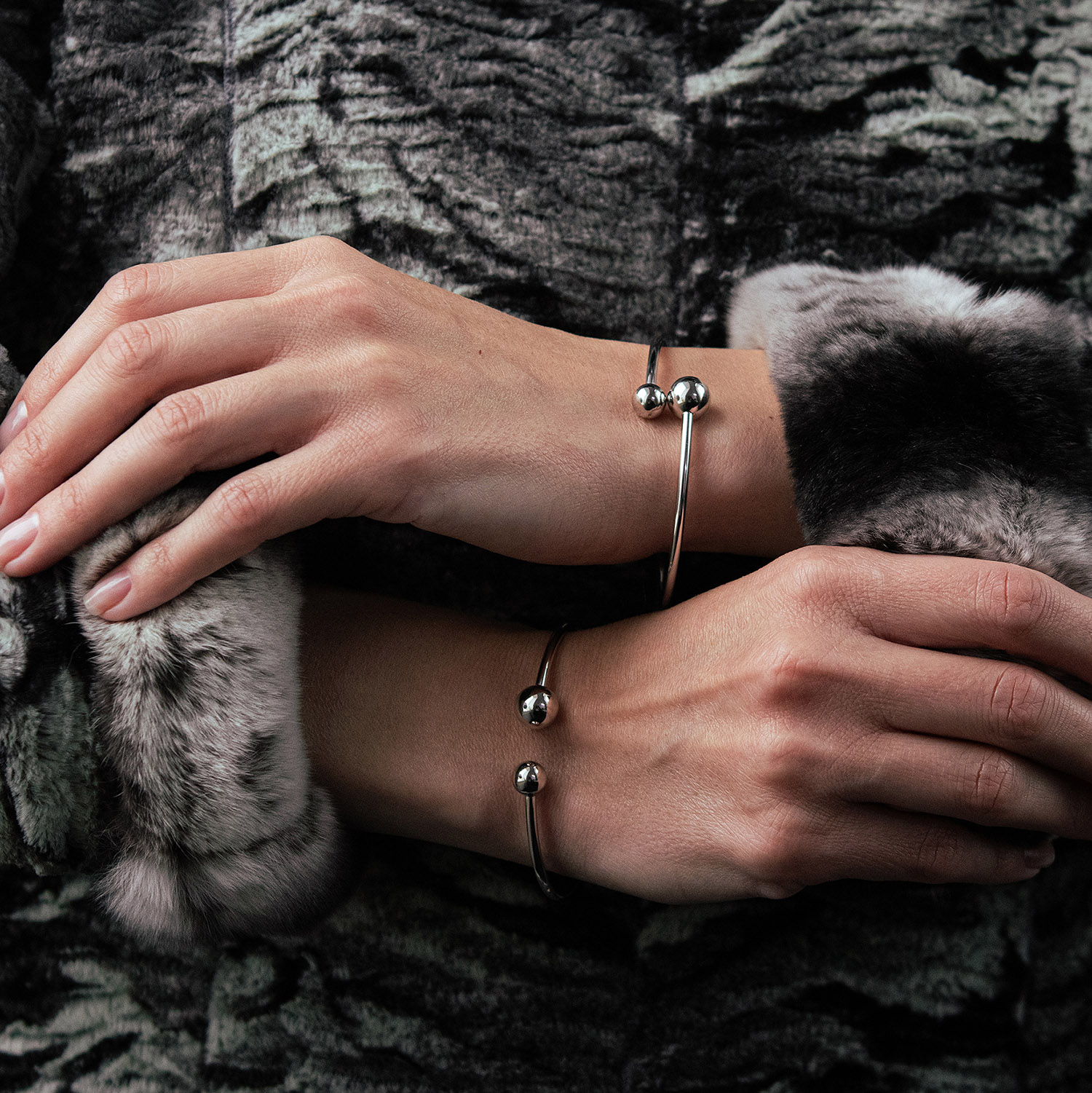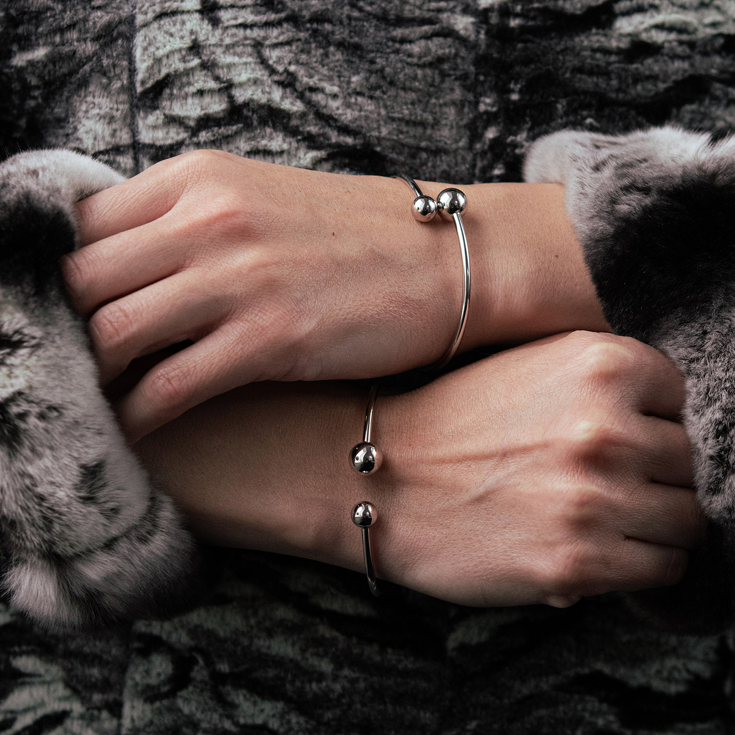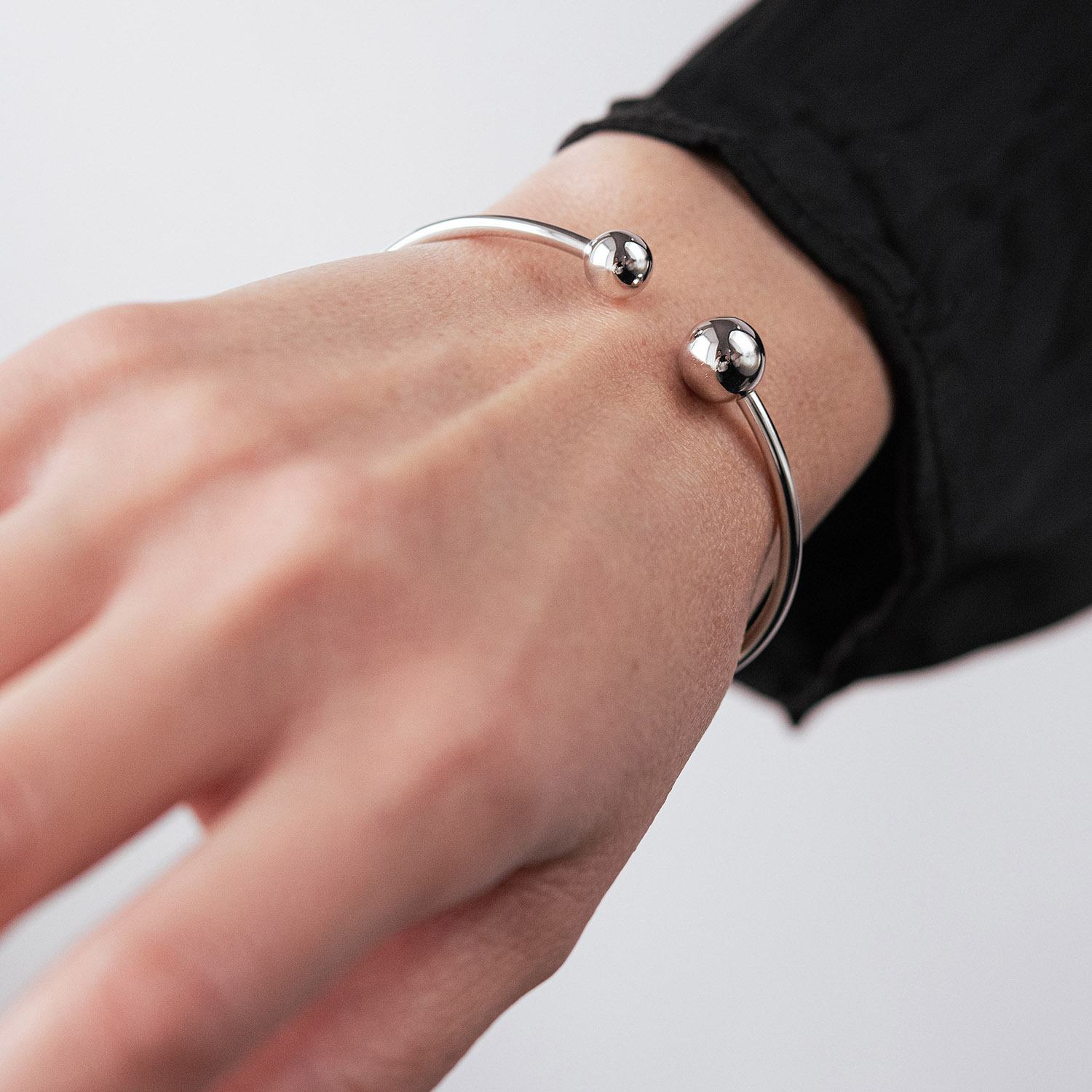 Жорсткий браслет "Кульки" у білому золоті б05509