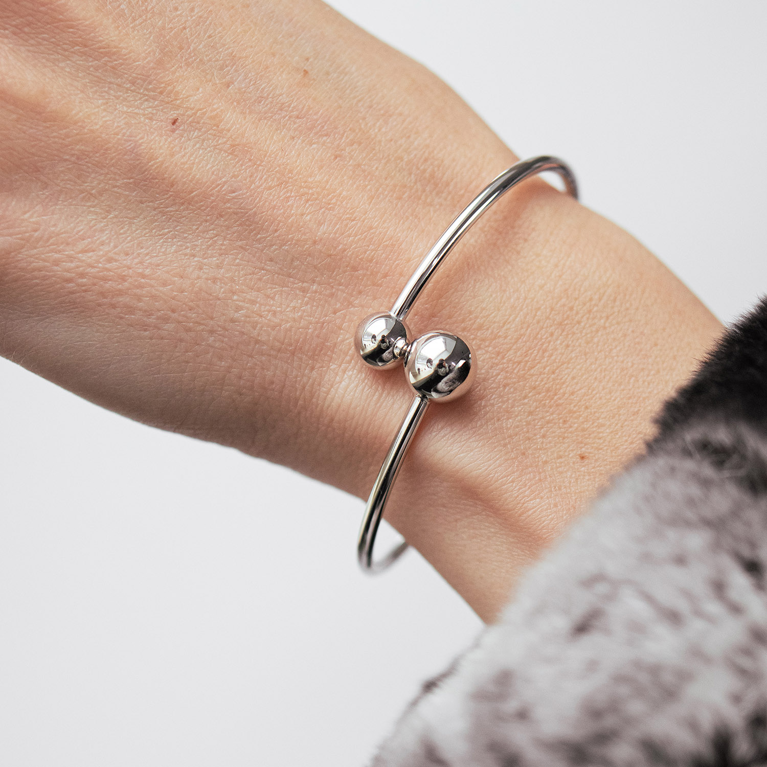 Жорсткий браслет "Кульки" у білому золоті б05817