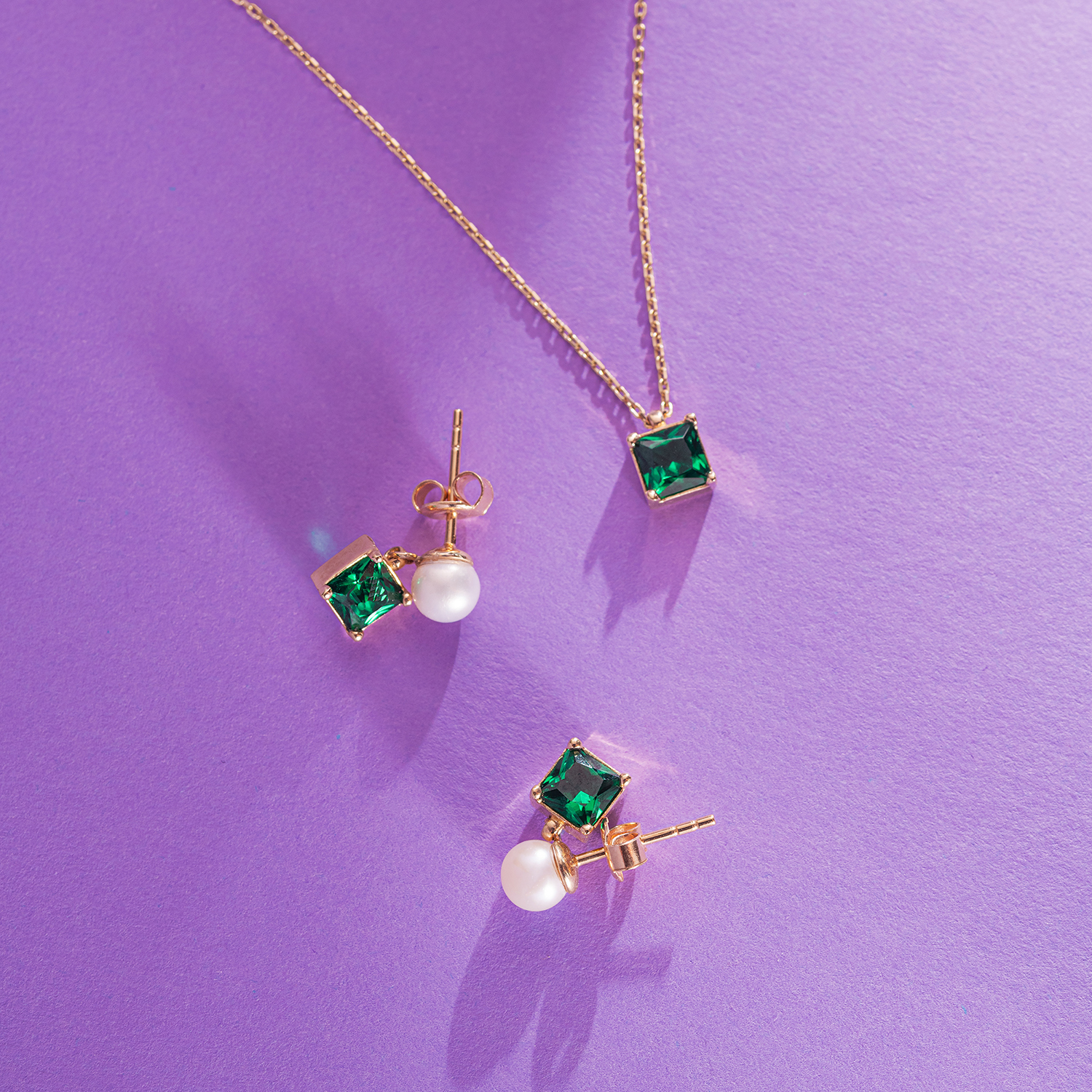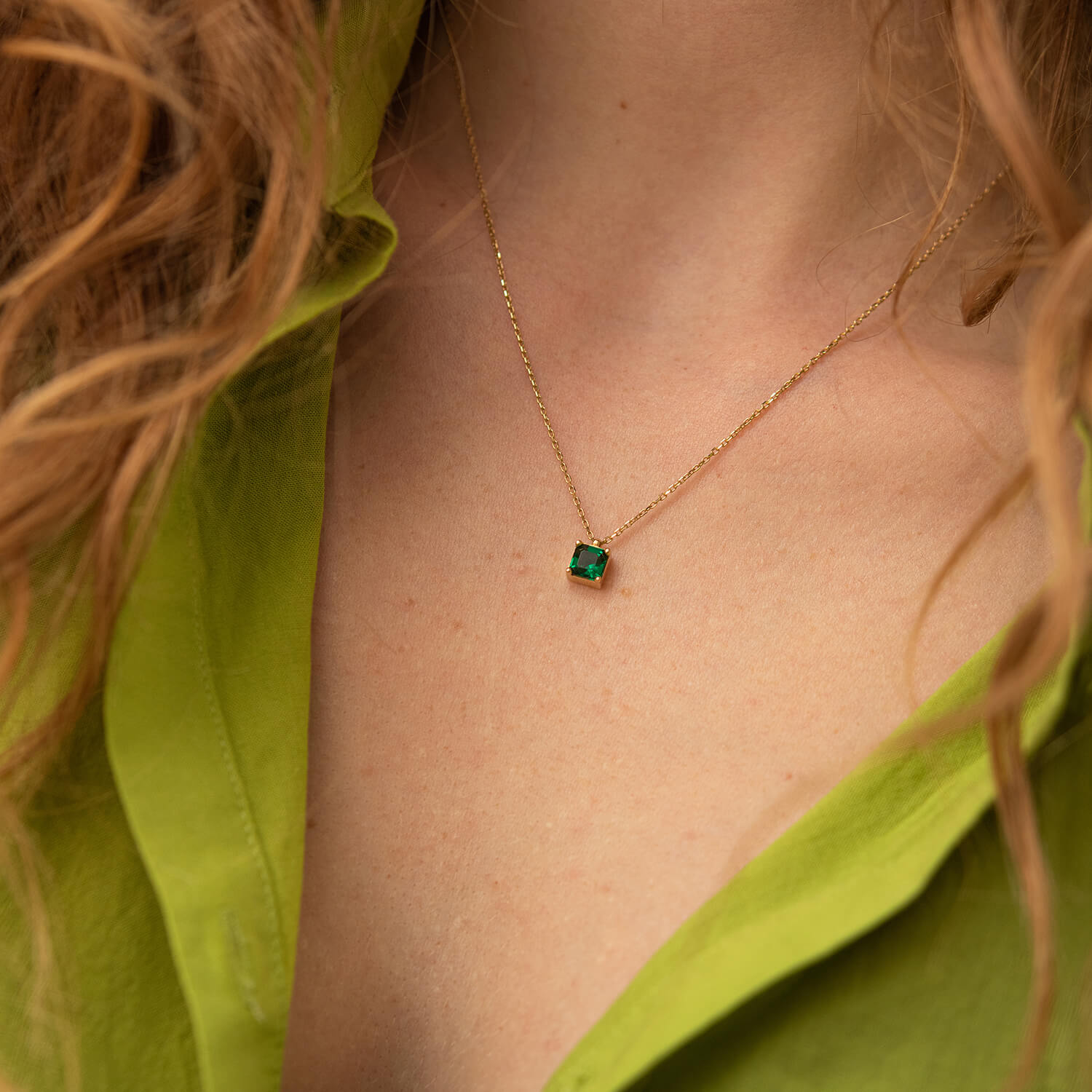 Золоте кольє "Альма" (зелений фіаніт) кол02368