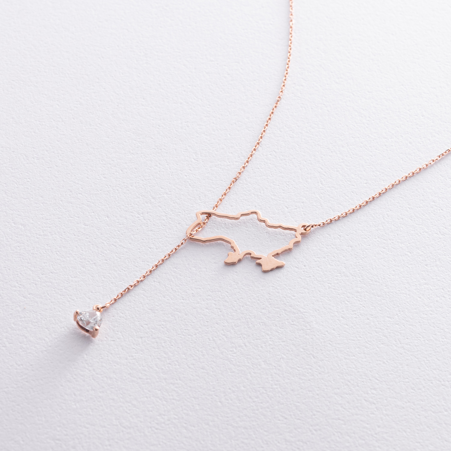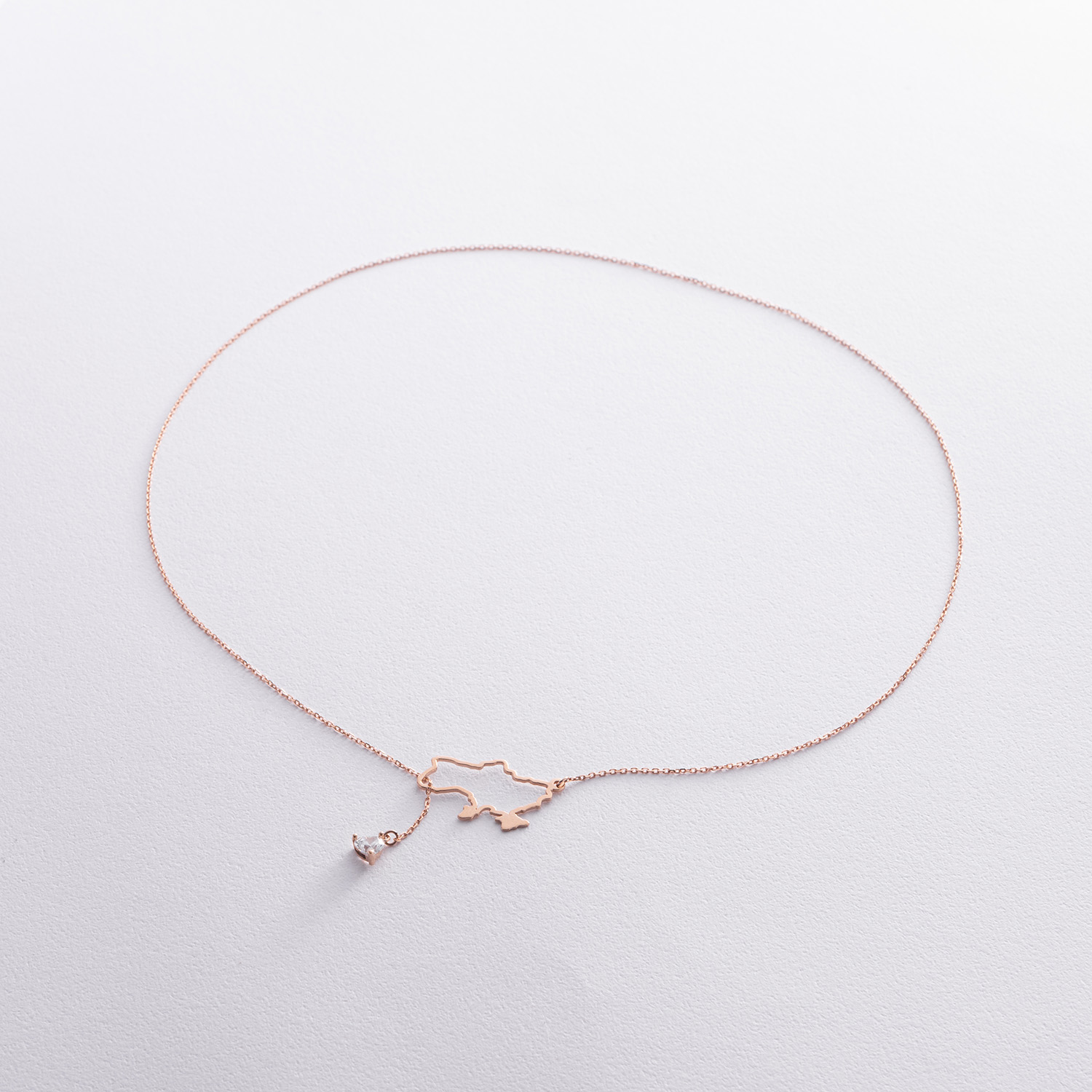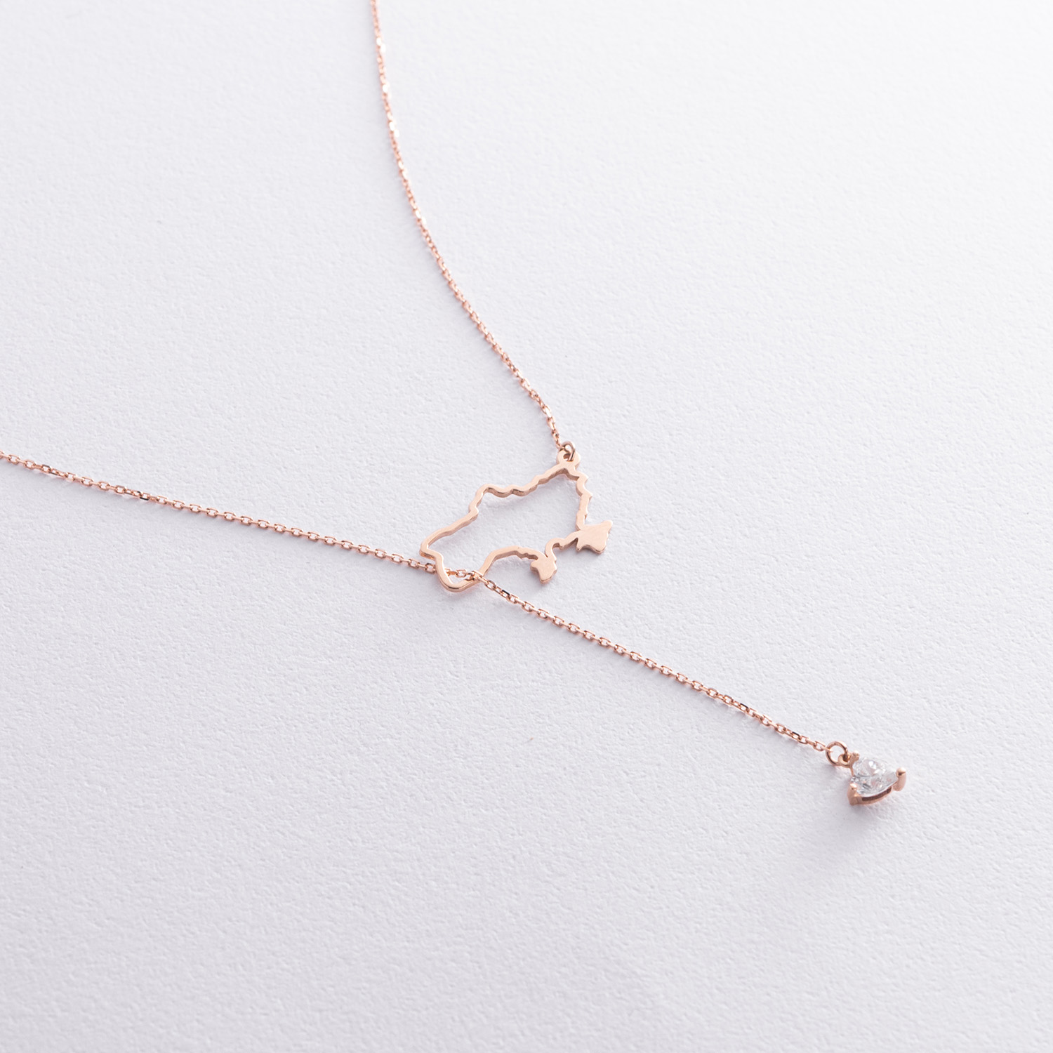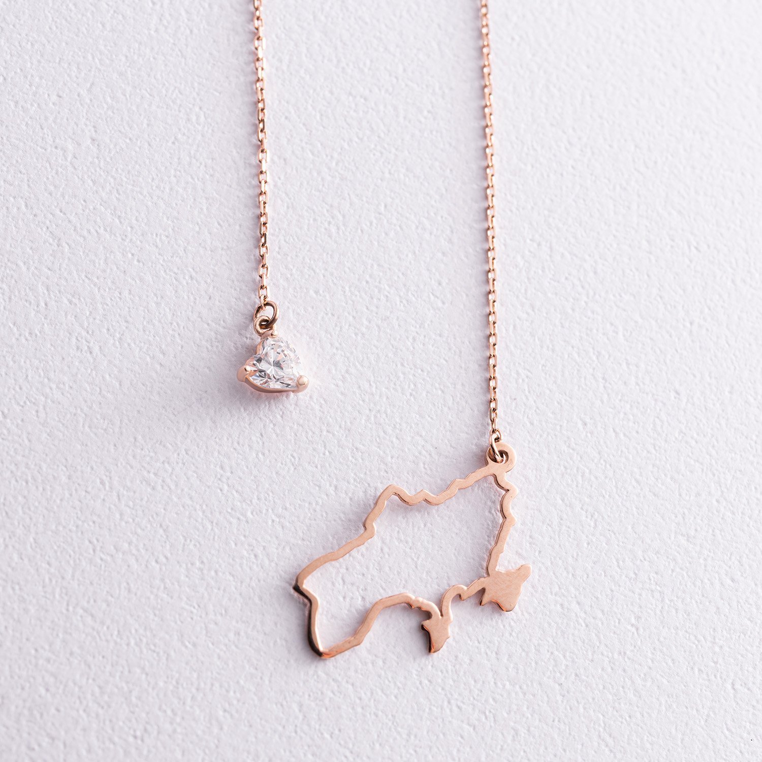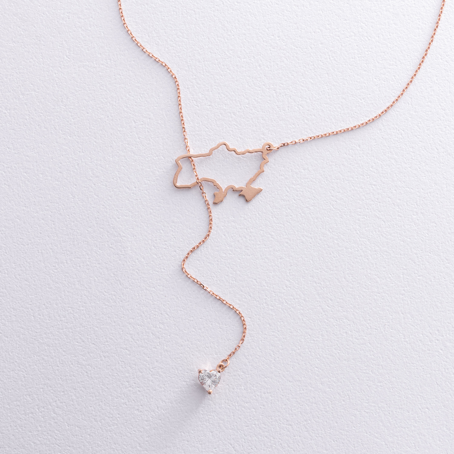 Золоте кольє - краватка "Карта України" (куб. цирконій Swarovski у формі серця) 4050