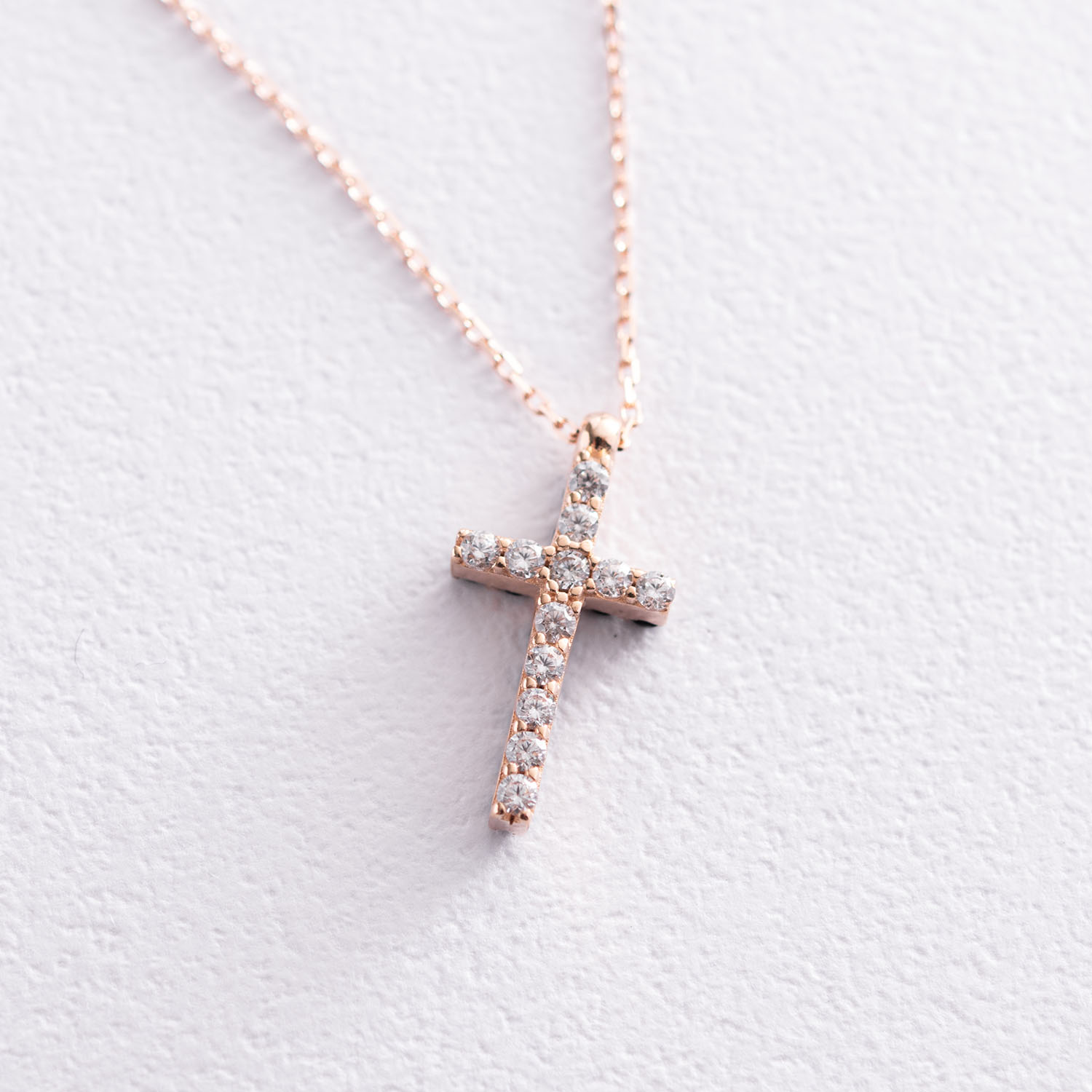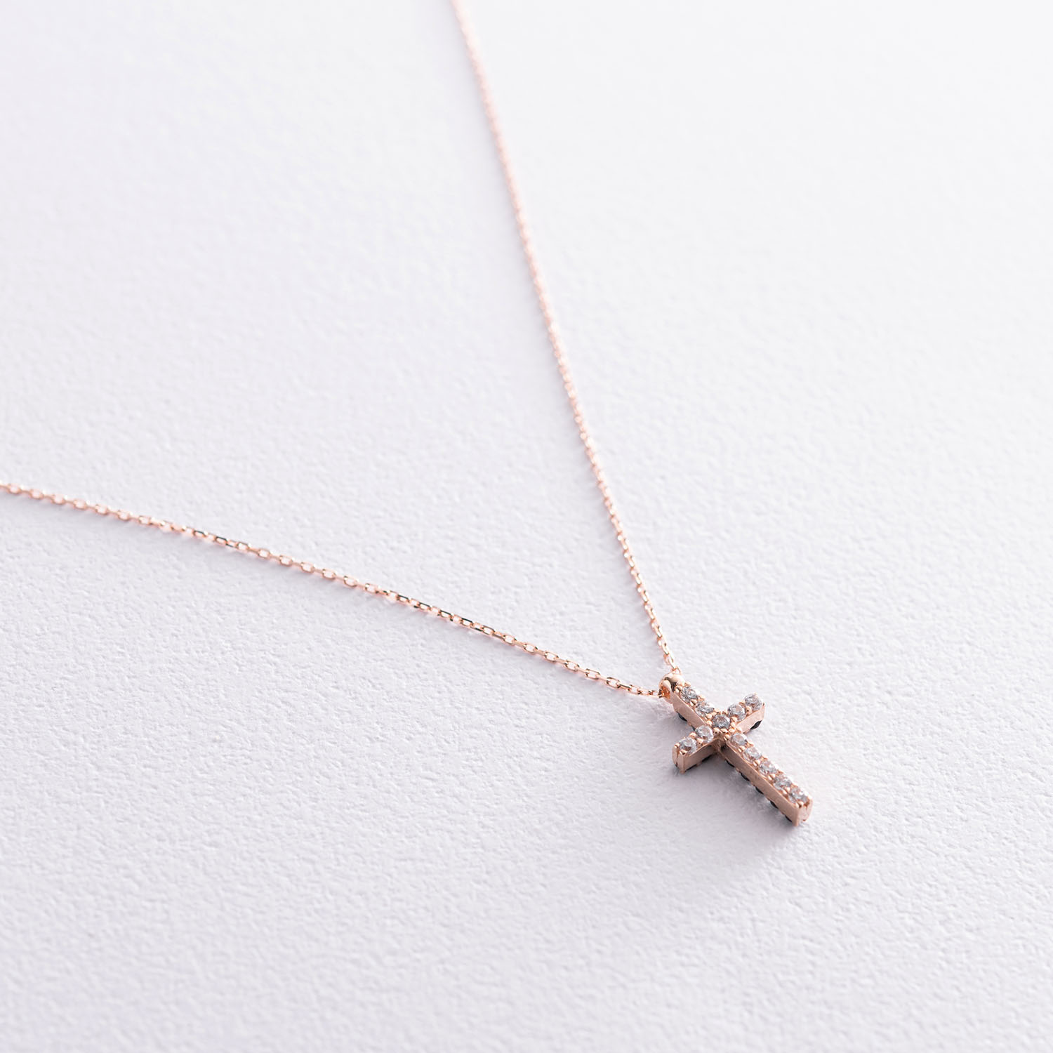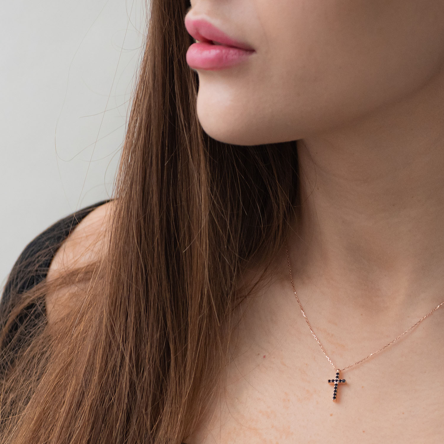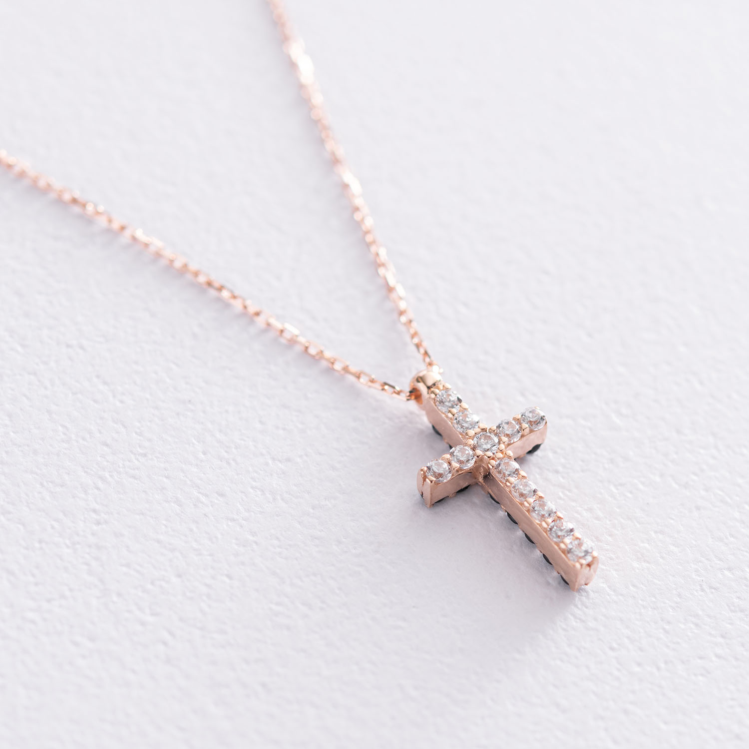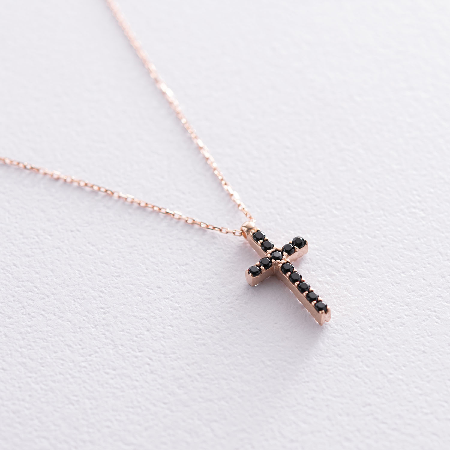 Золоте кольє "Хрестик" з чорними і білими фіанітами кол00808