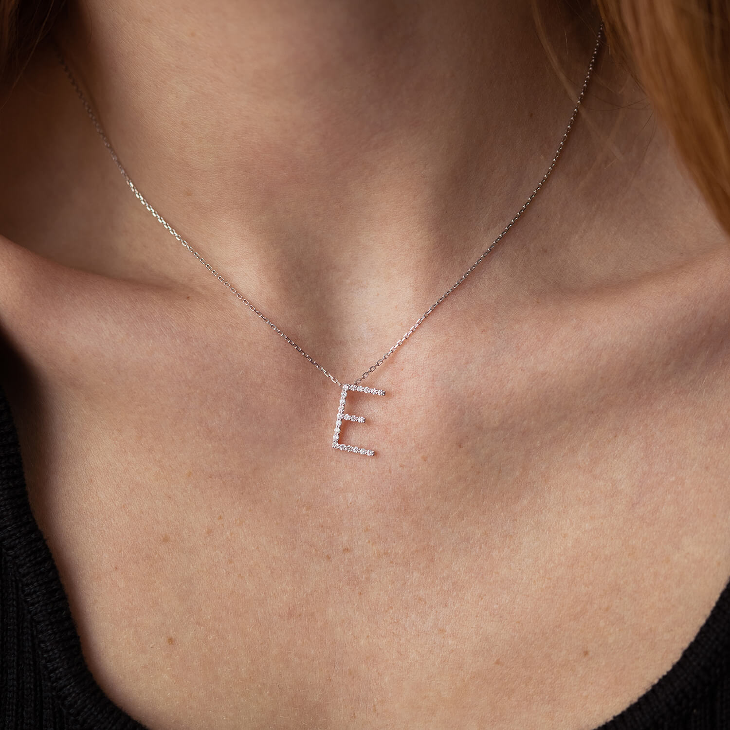 Золоте кольє з літерою "Е" з діамантами 134021121
