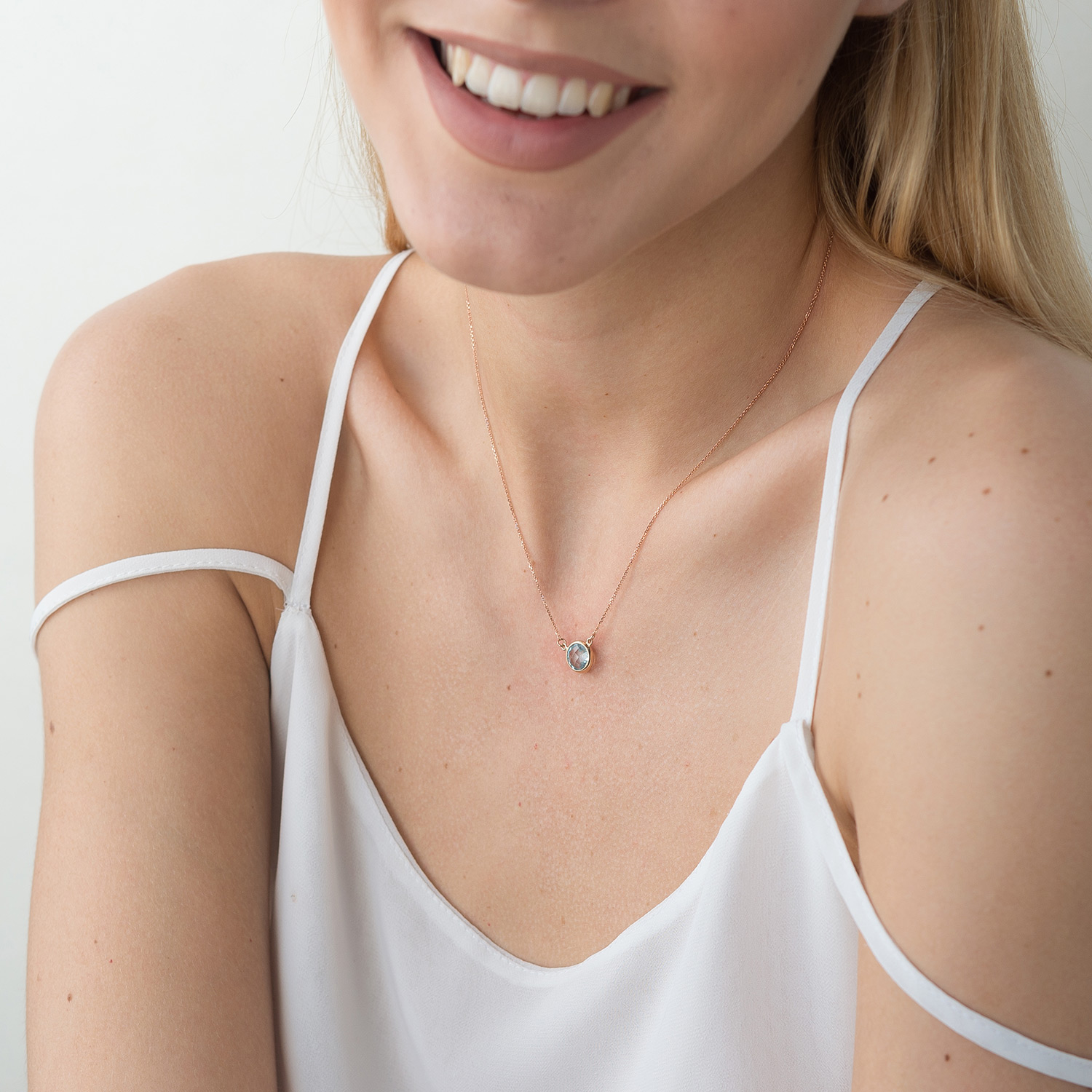 Кольє із блакитним топазом в червоному золоті кол01182